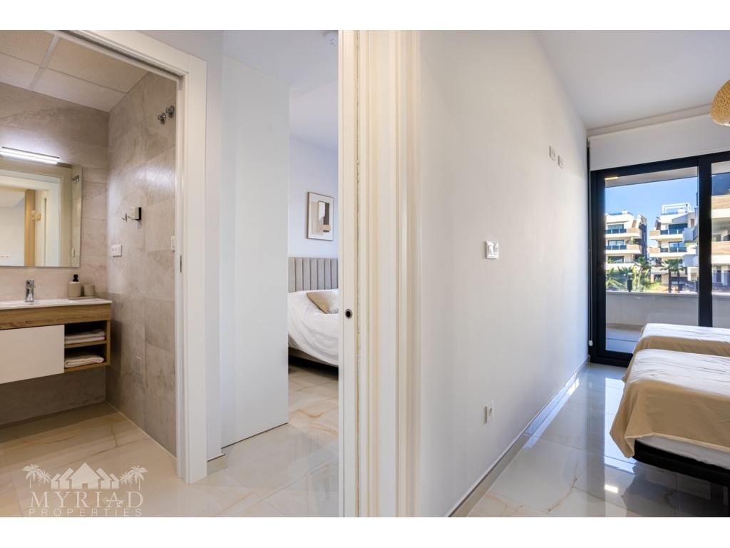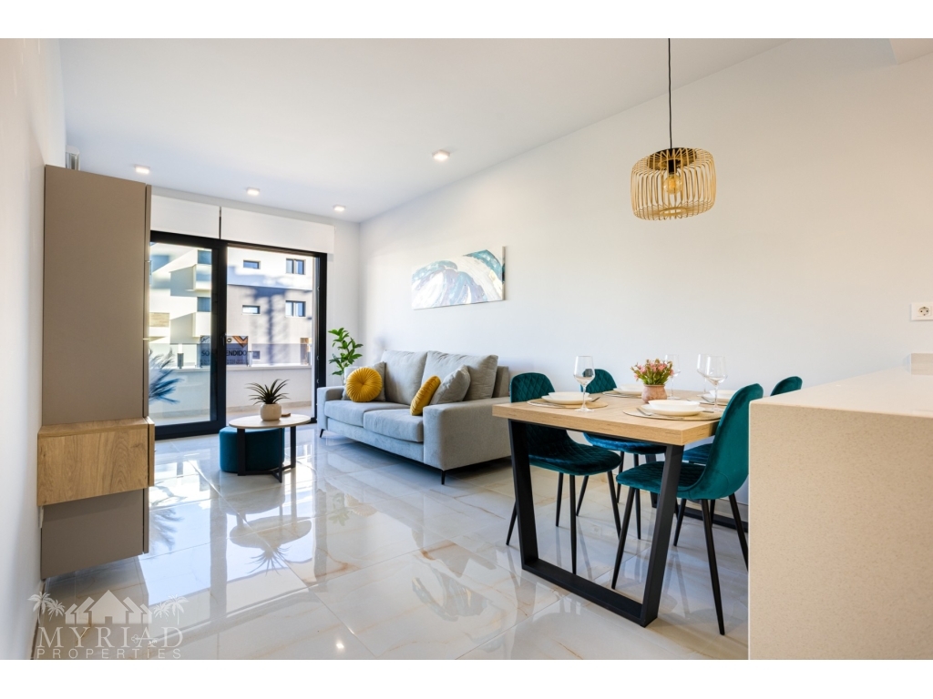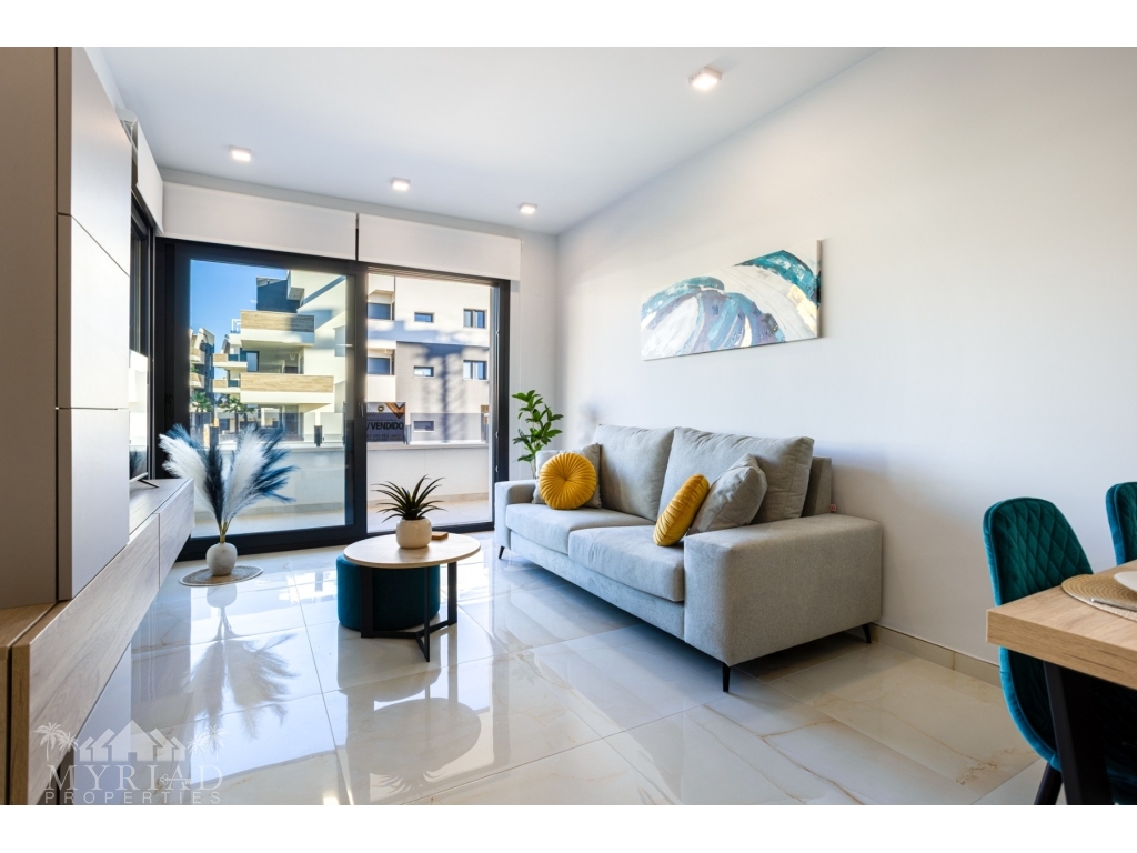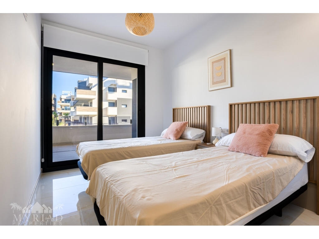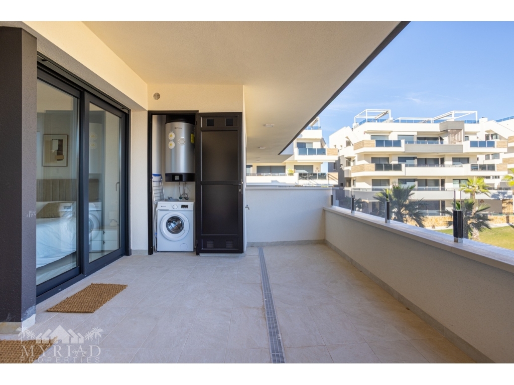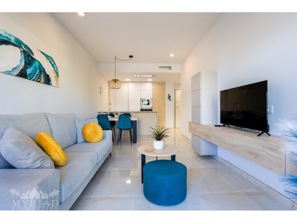 Discover this bright and modern second-floor apartment in a contemporary new-build project in Orihuela Costa, less than six months old! Designed for maximum comfort, it combines clean lines, open spaces, and modern finishes, creating a sense of space and well-being in every corner.