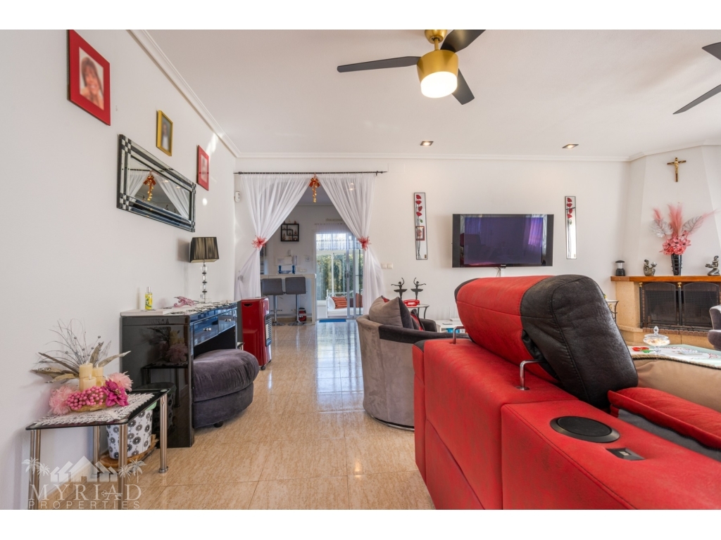 The living room is one of the highlights of the home, featuring a fireplace that adds warmth and character, making it the perfect space for the cooler months. The house is equipped with air conditioning, heating, and central heating, ensuring maximum comfort year-round. Furthermore, it is being sold fully furnished and with all appliances included, ready to move in without the need for renovations.