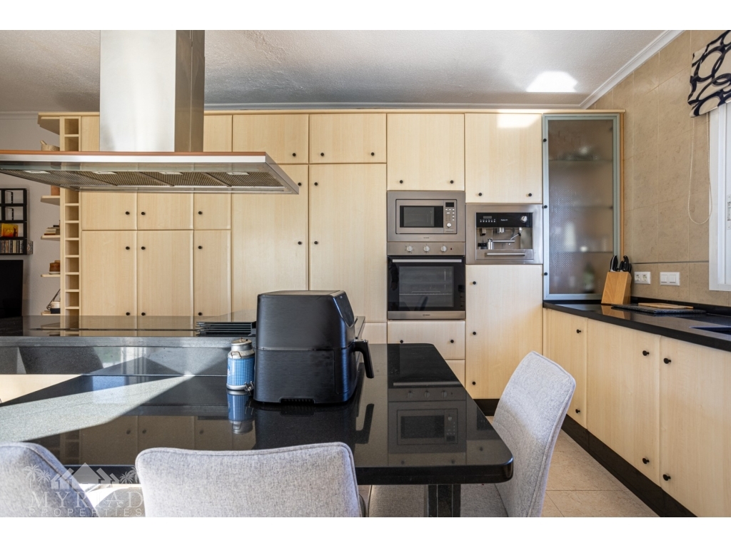 Inside, the villa offers a warm and welcoming atmosphere. The bright lounge serves as the heart of the home, complete with a cozy fireplace for cooler evenings, air conditioning for the summer months, and central heating to ensure year-round comfort.