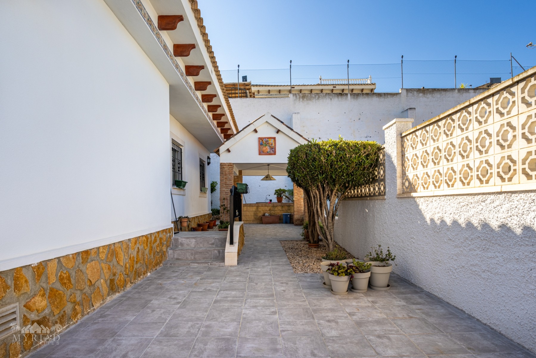 Set on a spacious 400m² plot, the 100m² home is thoughtfully positioned to enjoy both sun and shade throughout the day. From the moment you arrive, the property welcomes you with its private garage, well-proportioned terraces, and inviting outdoor areas designed for relaxation and entertaining.