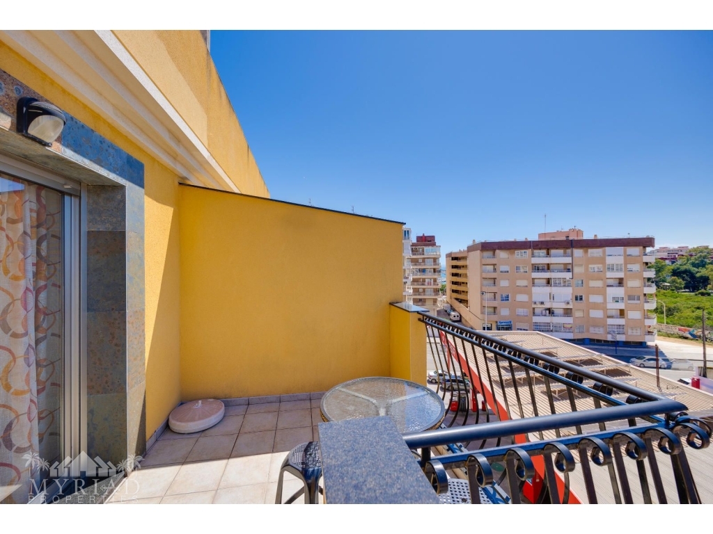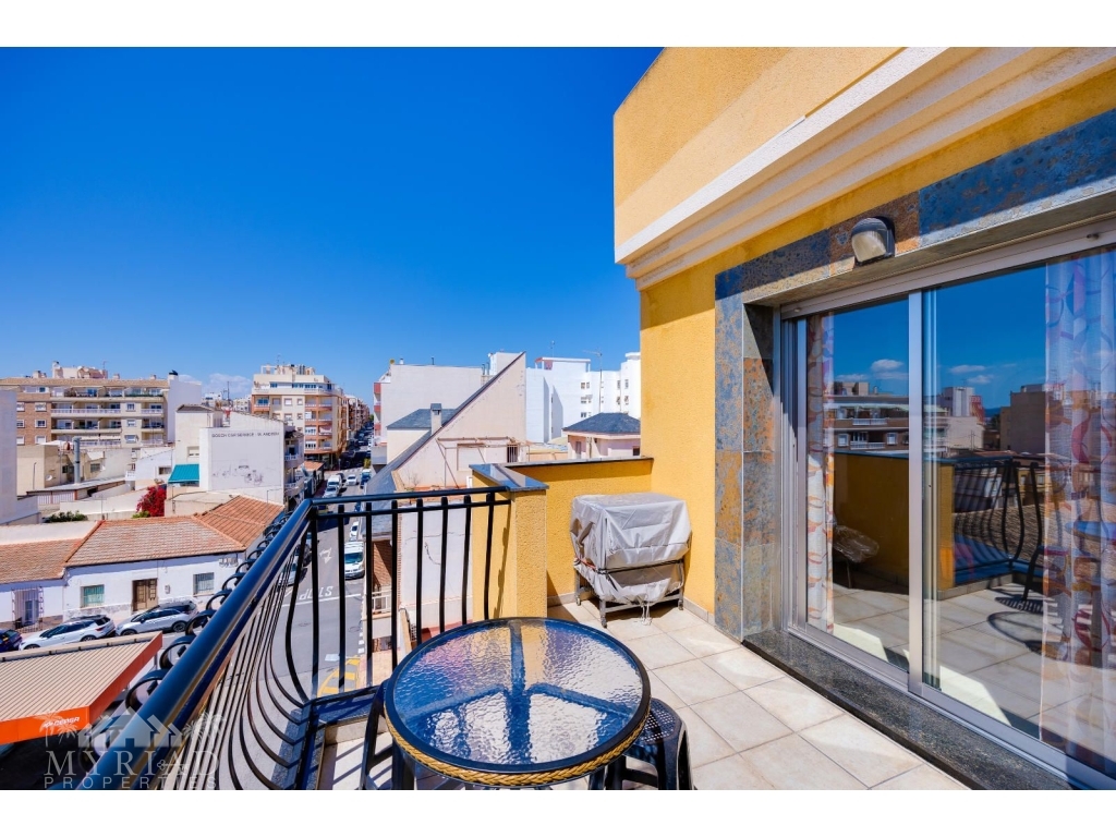 Bright penthouse just 300 meters from the sea in Torrevieja – Enjoy the Mediterranean lifestyleWe present this magnificent penthouse located on the fourth and top floor of a modern building with an elevator, just 300 meters from the crystal-clear waters of the Mediterranean. A real estate gem that combines location, natural light, and comfort, ideal for both permanent residence and vacation rental investment.With a constructed area of 64 m², this cozy home offers a well-distributed space that includes two bedrooms with built-in wardrobes, a full bathroom, and a bright living-dining room with direct access to a large and sunny 8 m² private terrace. From this southeast-facing terrace, you can enjoy the sun practically all day long, making it the perfect spot for having breakfast al fresco, relaxing with a good book, or simply letting the sea breeze carry you away.The penthouse is being sold fully furnished and equipped, ready to move into without the need for any renovations. The kitchen is functionally integrated into the space, and the overall atmosphere of the property conveys a sense of peace, light, and spaciousness thanks to its orientation and its privileged location on the top floor of the building, which guarantees tranquility, natural ventilation, and privacy.Built in 2005, the building boasts high-quality finishes, including a security entrance door and air conditioning with a heat pump, ensuring comfort year-round.This penthouse represents a unique opportunity for those looking for a home by the sea, with all amenities within easy reach (supermarkets, public transportation, restaurants, leisure areas) and the charm of living just steps from the beach in one of the most beloved towns on the Costa Blanca.