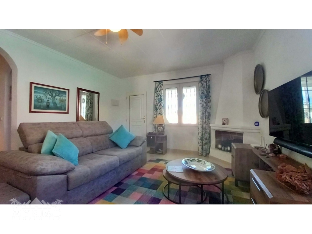 This extended and remodelled semi-detached villa offers a comfortable living space with three bedrooms and two bathrooms, ideally located close to amenities and a bus stop for convenience.
