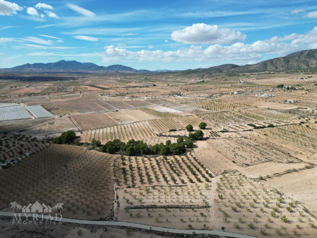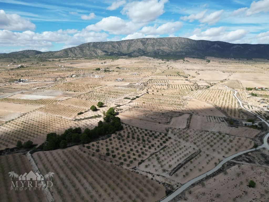 Rustic plot for sale in the municipality of Pinoso (Alicante region) Beautiful rural plot of 10,000 m², planted with almond trees, located in a quiet area with open views of the mountains and surrounding landscape. According to the cadastral registration (Catastro), the plot appears slightly smaller than 10,000 m², but this must be corrected, as the official Land Registry (Registro de la Propiedad) lists the correct surface area of 10,000 m². The Land Registry is leading, so this is the valid measurement used for building purposes. With its 10,000 m², this plot meets the minimum requirement to build a house on rural land. The plot is located within the so-called “Patricova zone,” an area designated by the authorities as potentially flood-prone. In practice, however, almost all plots in the area have the same classification, and several houses have been built. The Patricova designation does not automatically mean that the entire plot is at real risk of flooding. To obtain a building licence, an architect can carry out an “estudio de inundabilidad” (flood risk study). This study determines where any water drainage or mild run-off could occur, allowing proof to be presented to the municipality of which parts of the plot are safe for construction. Thanks to such studies, other new-build houses in the area have been authorised and constructed. Water and electricity connections are available near the plot, although it is advisable to verify this beforehand with the relevant providers.