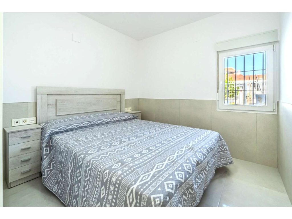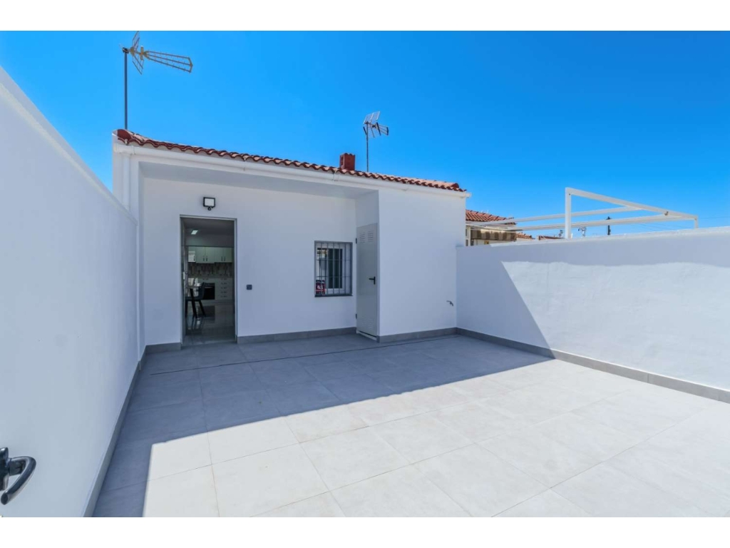 Se vende bungalow en esquina totalmente reformado y amueblado, de 2 dormitorios, 1 baño, cocina-salón, trastero y una terraza grande, ideal para aparcar tu coche. Para entrar a vivir, cocina totalmente equipada con electrodomésticos Balay y Teka. Aire acondicionado instalado por conducto. Todo a estrenar.