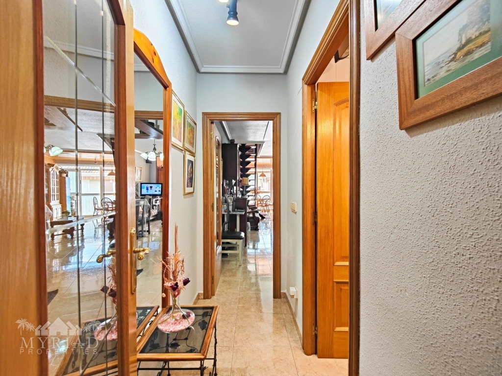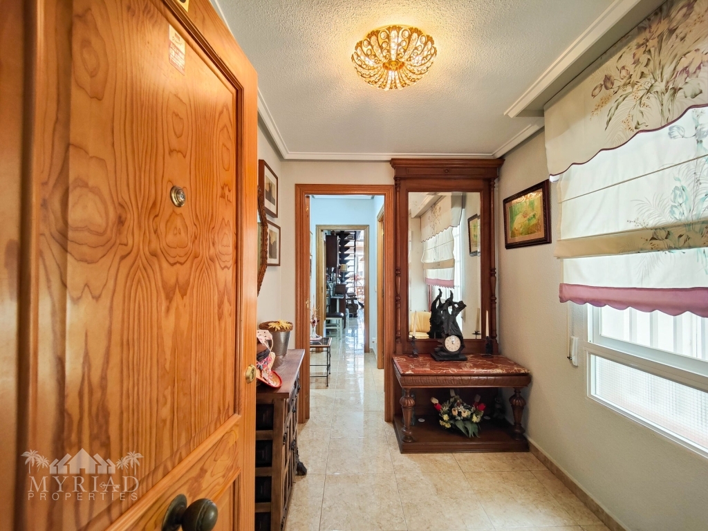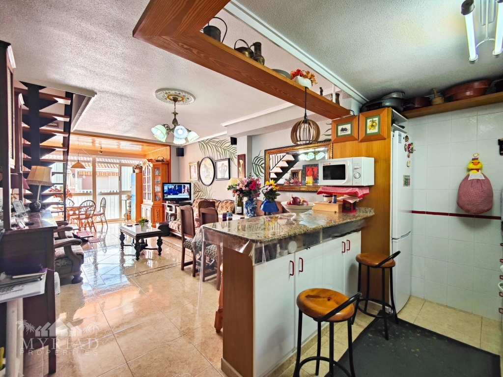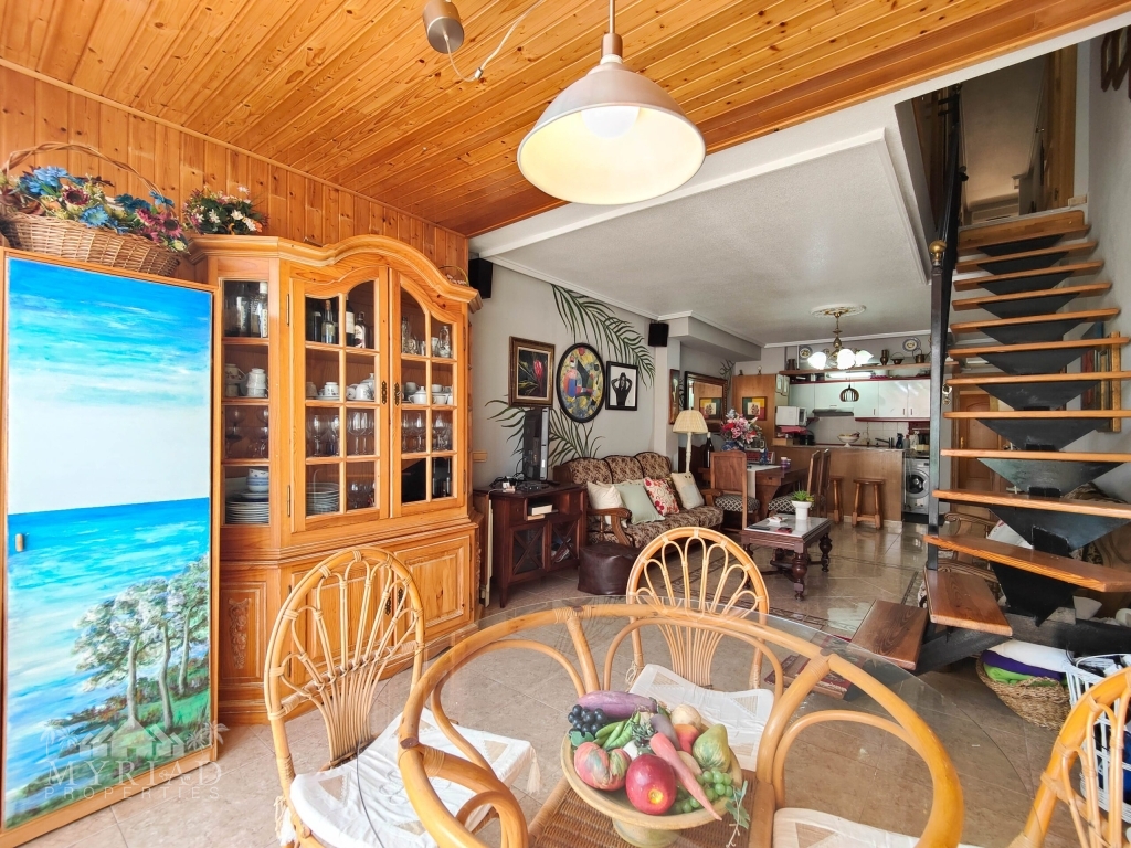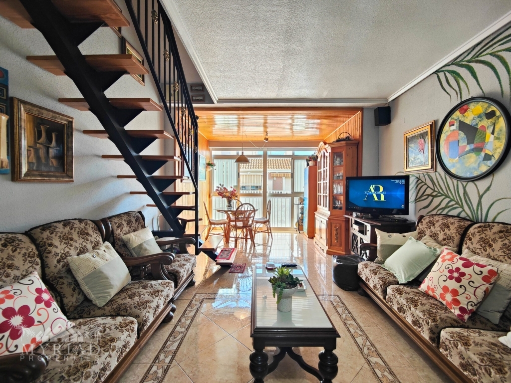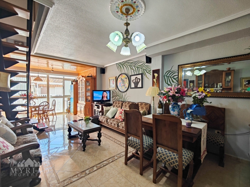 Spacious 3-Bedroom 2-Bathroom Penthouse for Sale in Playa del Cura, Torrevieja – 250 m from the "Playa de los Locos" beach and 600 m from the "Playa del Cura" Beach and the Promenade.Beautiful duplex penthouse for sale in Playa del Cura, Torrevieja, just 250 meters from "Playa de los Locos" Beach and 600 meters from "Playa del Cura" Beach and the promenade. Located on the fifth floor with an elevator, this east-facing property enjoys plenty of natural light throughout the day.The apartment is spread over two floors and offers a bright and spacious living room with dining area, a fully equipped open-plan kitchen, and an integrated glazed terrace perfect for year-round enjoyment. On this level, there is also a full bathroom with shower and window, plus an entrance hall.Upstairs you will find 3 bedrooms, one with a private terrace, and a second full bathroom.The penthouse is sold fully furnished and equipped with appliances, ready to move in.A parking space in the underground garage is included in the price.Ideal as a holiday home, permanent residence, or investment property on the Costa Blanca.Do not miss the chance to buy this 3 bedroom 2 bathroom penthouse just a few minutes from the beaches in Torrevieja.