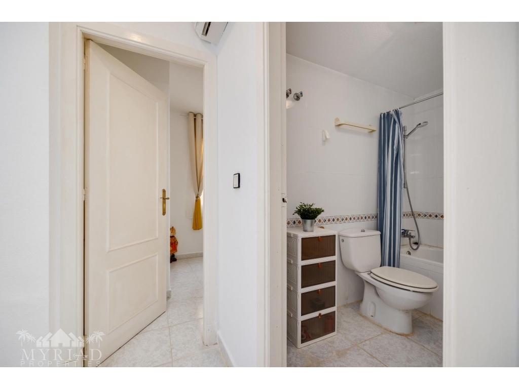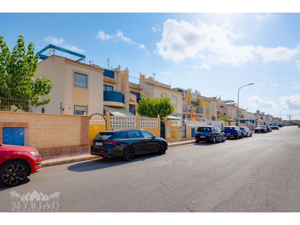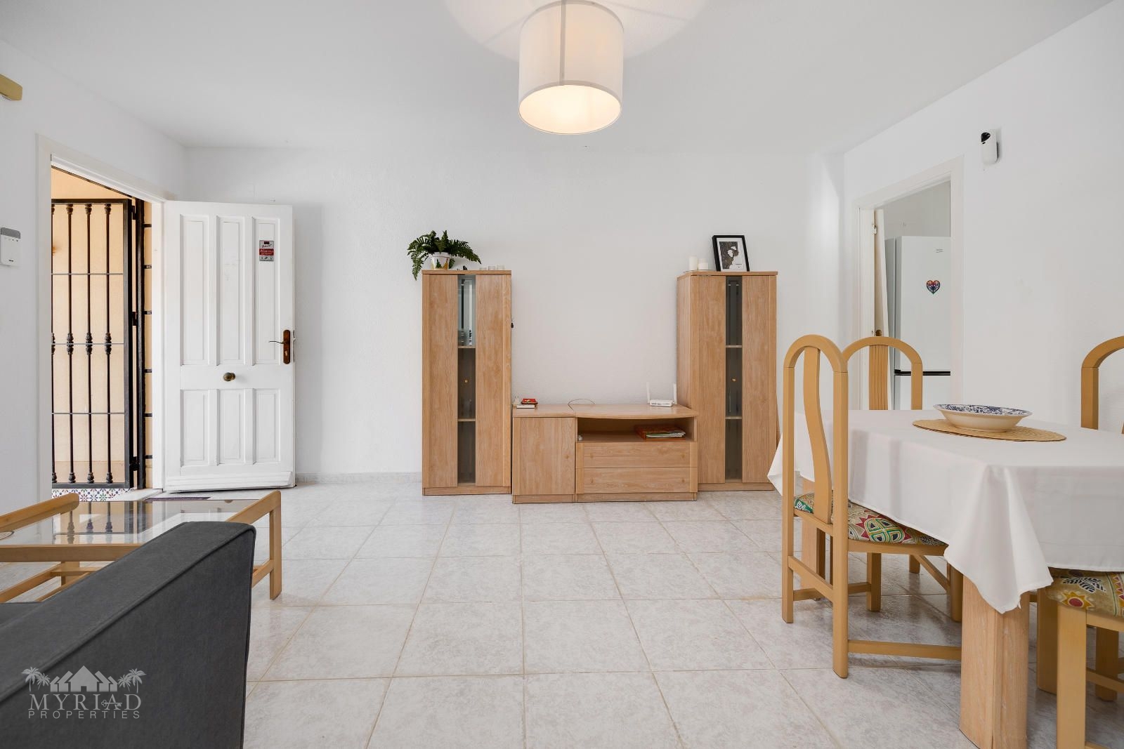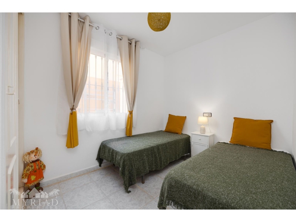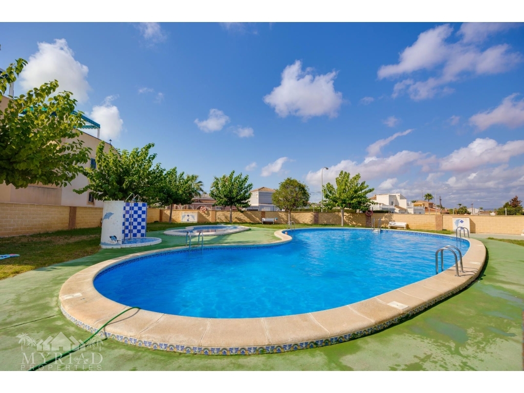 Ground-floor spanish bungalow for sale in the quiet area of El Chaparral, Torrevieja. The home features two bedrooms, a full bathroom, a living room with air conditioning, and a fully equipped kitchen. Outside, there's a pleasant terrace ideal for enjoying the year-round good weather. It's also part of a residential complex with a communal pool and green areas, perfect for relaxing and enjoying time with the family. Located in an established residential area, this bungalow is surrounded by amenities such as supermarkets, pharmacies, public transportation, cafes, and restaurants. Just a ten-minute drive from the center of Torrevieja and its beaches, the location offers a peaceful setting while still being close to the coast and major road connections. An ideal choice both as a permanent residence and for those looking for a second home on the Costa Blanca.