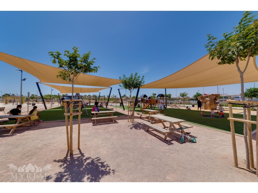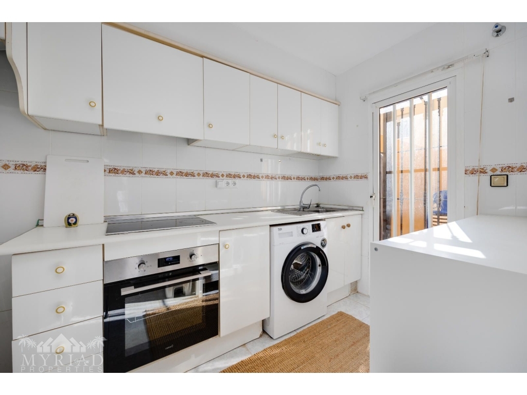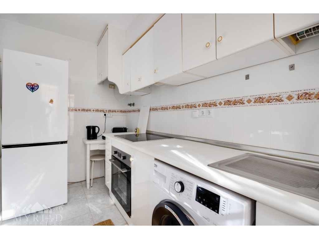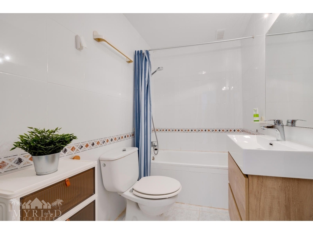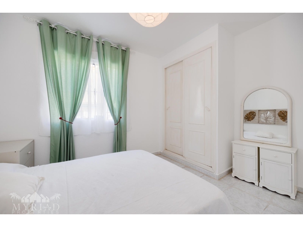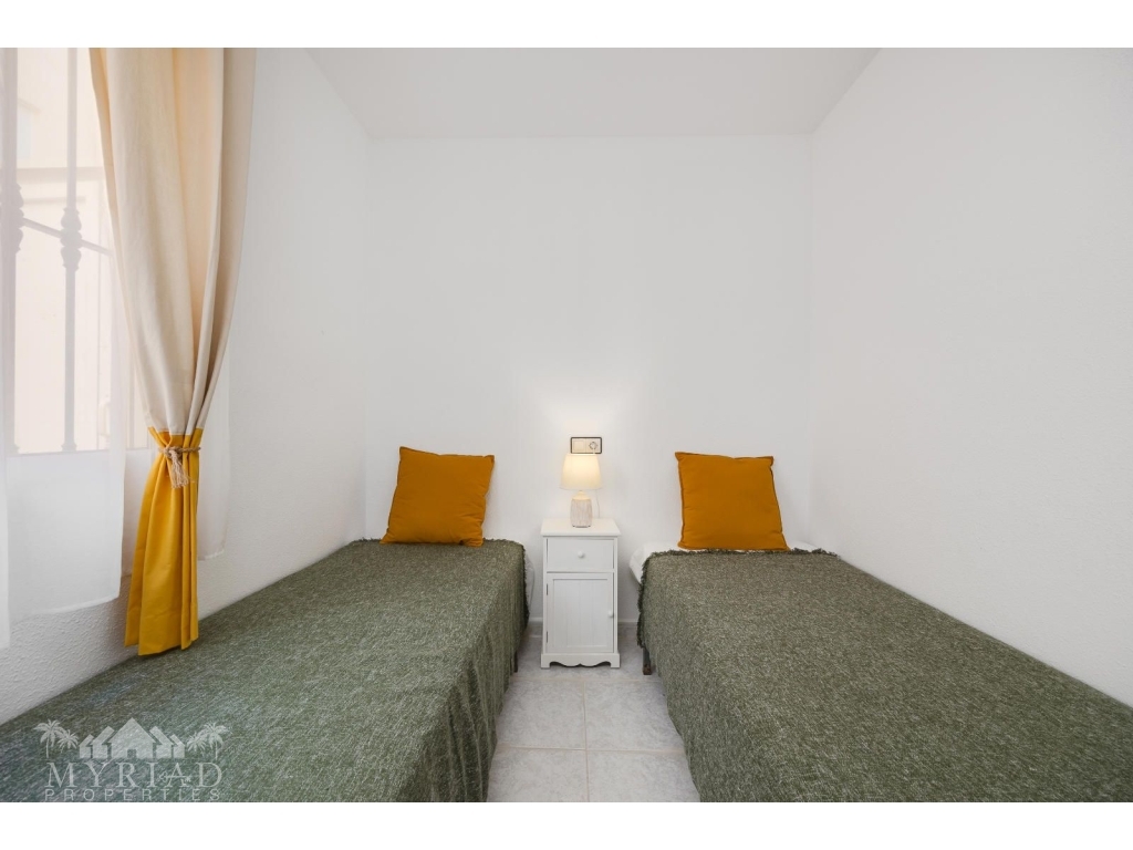 Ground-floor spanish bungalow for sale in the quiet area of El Chaparral, Torrevieja. The home features two bedrooms, a full bathroom, a living room with air conditioning, and a fully equipped kitchen. Outside, there's a pleasant terrace ideal for enjoying the year-round good weather. It's also part of a residential complex with a communal pool and green areas, perfect for relaxing and enjoying time with the family. Located in an established residential area, this bungalow is surrounded by amenities such as supermarkets, pharmacies, public transportation, cafes, and restaurants. Just a ten-minute drive from the center of Torrevieja and its beaches, the location offers a peaceful setting while still being close to the coast and major road connections. An ideal choice both as a permanent residence and for those looking for a second home on the Costa Blanca.