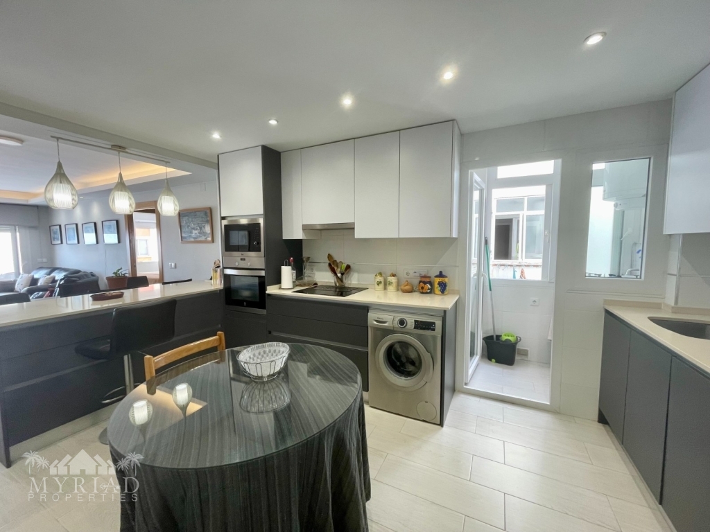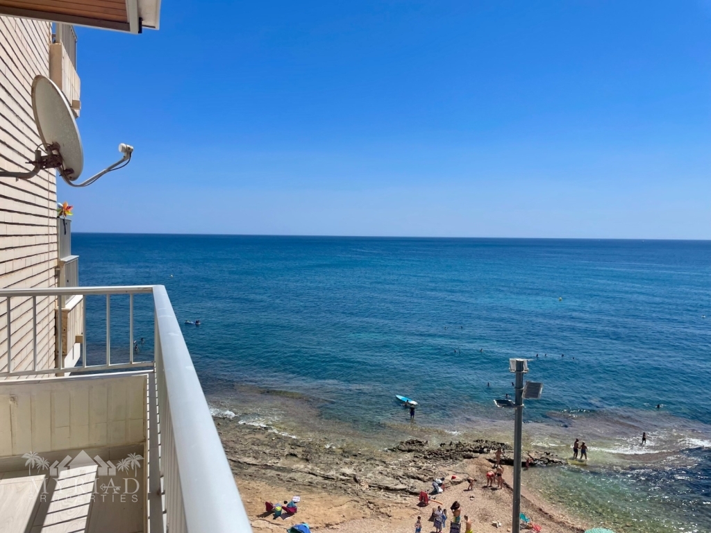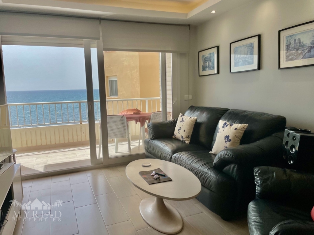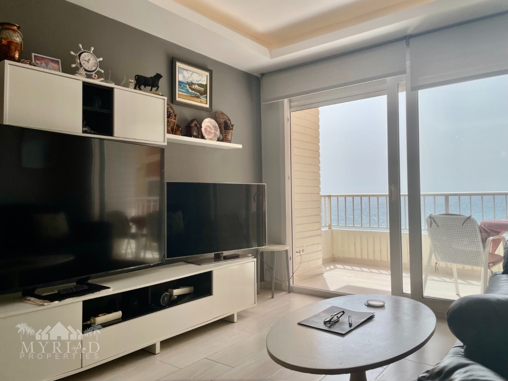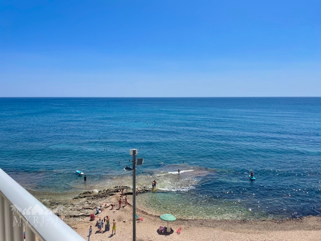 Located directly on the beachfront, this fully renovated 3-bedroom, 1-bathroom apartment offers stunning unobstructed sea views and an unbeatable coastal lifestyle. Positioned on the 4th floor with lift access, the property boasts a bright and open layout with modern finishes throughout.