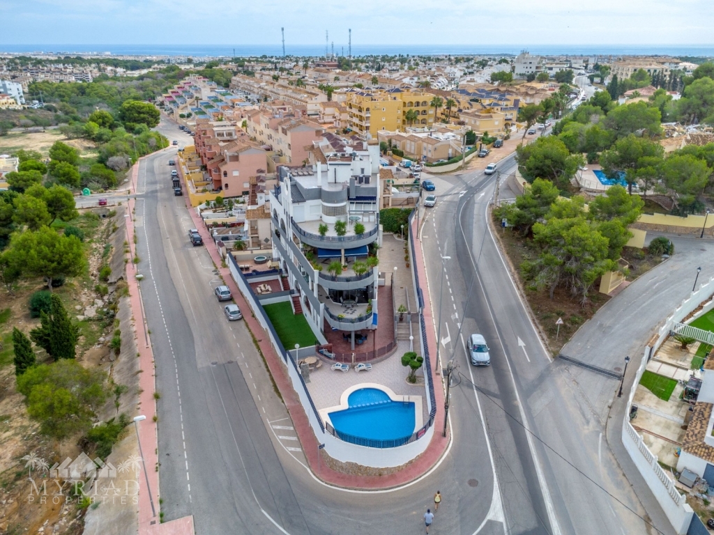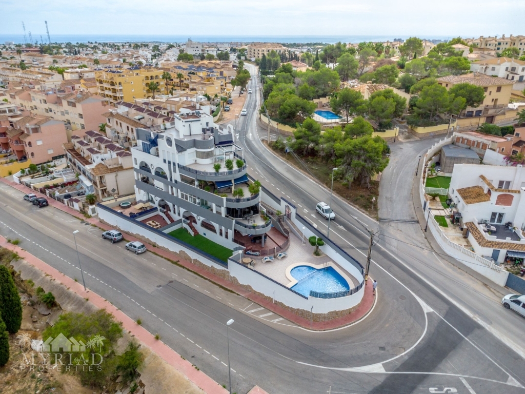 -2 spacious bedrooms with built-in wardrobes-1 modern bathroom with efficient use of space-Bright, open-plan living and dining area with access to a large sunny terrace, partly glazed for year-round comfort-Beautiful views of the communal pool and landscaped gardens-Fully equipped kitchen and stylish furnishings includedFacilities & Extras-Private underground parking space-Large storage room in the garage-Elevator access from garage to apartment-Communal swimming pool and gardensLocated in a secure, quiet and friendly community-450 m to supermarket-250 m to local bars and restaurants-Near two top golf courses – ideal for golf enthusiasts-3 km to La Zenia Boulevard shopping centre-4 km to beautiful sandy beaches and the Mediterranean Sea-950 m to El Limonar International SchoolAnnual Costs