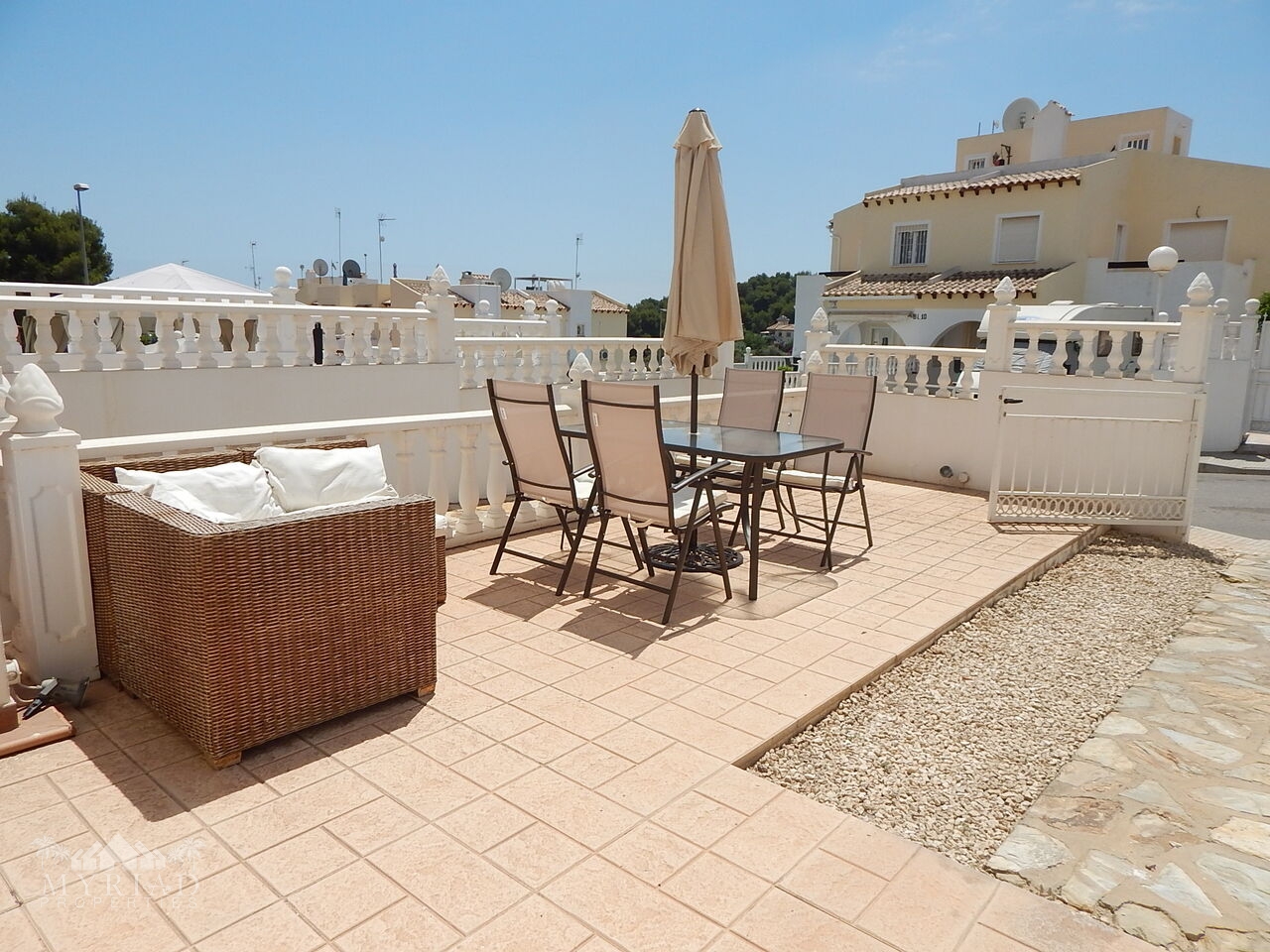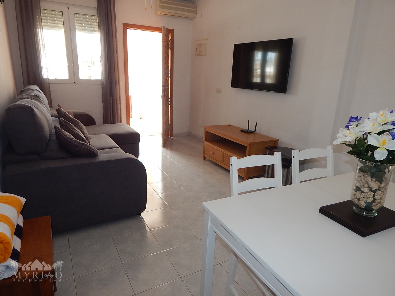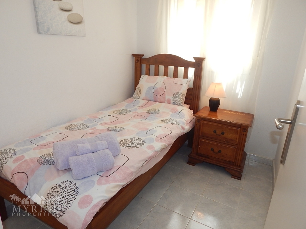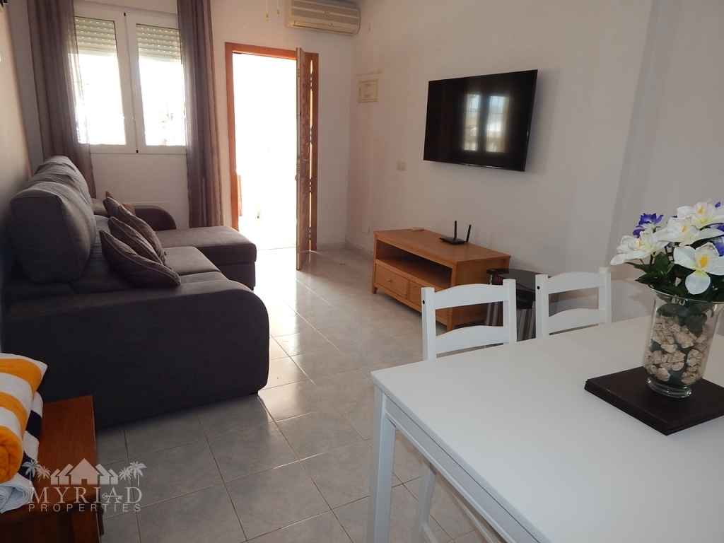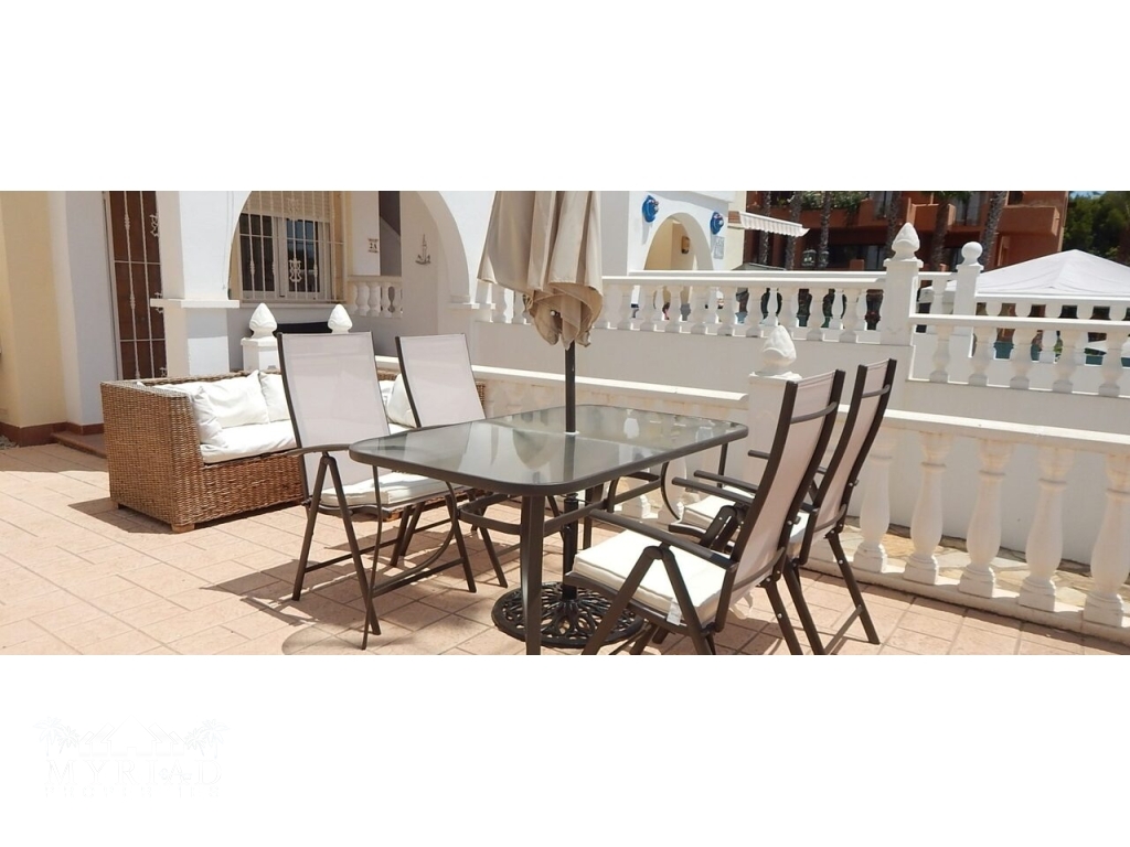 Charming Ground Floor Apartment in the Heart of Villamartin – Your Perfect Spanish Retreat!Step into this delightful 3-bedroom, 2-bathroom ground floor apartment, nestled in a prime location just moments from Villamartin Plaza and surrounded by 4 world-class golf courses. Whether you're a passionate golfer, a joyful family, or a group of friends seeking unforgettable memories, this beautifully furnished residence offers the perfect blend of comfort, convenience, and Spanish charm.A Bright and Inviting Living SpaceInside, you'll be greeted by a spacious, sun-kissed living area filled with natural light that creates a warm, welcoming atmosphere. Relax on plush seating while enjoying your favorite shows on the 4K TV, and revel in the soothing climate provided by full air conditioning throughout the home. The fully equipped kitchen boasts modern appliances, including an oven, hob, microwave, and fridge/freezer—ideal for preparing delicious home-cooked meals after a day of adventure.Comfortable, Well-Designed BedroomsRetreat to the generous master suite featuring a plush double bed and ample wardrobe space. Two additional bedrooms—one with two single beds and another with a single—are perfect for family, friends, or guests, all offering generous storage and a cozy ambiance. Two elegant bathrooms, complete with showers and a bath, add to the comfort and convenience of this lovely home.Outdoor Living at Its BestImagine relaxing in your private front garden—your own tranquil oasis—perfect for al fresco dining, evening drinks, or simply soaking up the warm Spanish sun. Just steps away, the communal pool beckons for refreshing dips and relaxing sunbaths amid beautiful surroundings.Unmatched Location and LifestyleThis exceptional apartment is mere 4.8 km from pristine beaches, 45 minutes from the airport, and only 800 meters from local shops, bars, and restaurants, including the vibrant Villamartin Plaza. For golf lovers, world-renowned courses like Villamartin, Las Ramblas, La Finca, and Campoamor are within a 900-meter reach, making every day a golfing paradise.Features That Enhance Your LifeFully furnished & move-in readySunny south orientation with abundant natural lightPrivate garden & nearby communal pool for leisure & relaxationClose to shops, bars, restaurants, and public transportWhite goods included, fitted wardrobes, air conditioningLow energy rating (in process), year of construction 2005Very affordable community costs (€540) & IBI (€220)Seize this rare opportunity to own a charming, well-located apartment in one of Spain’s most sought-after regions—your perfect sanctuary for years of joyful living and unforgettable holidays. Embrace the Spanish lifestyle, enjoy year-round sunshine, and indulge in all the amenities that make Villamartin a true paradise.