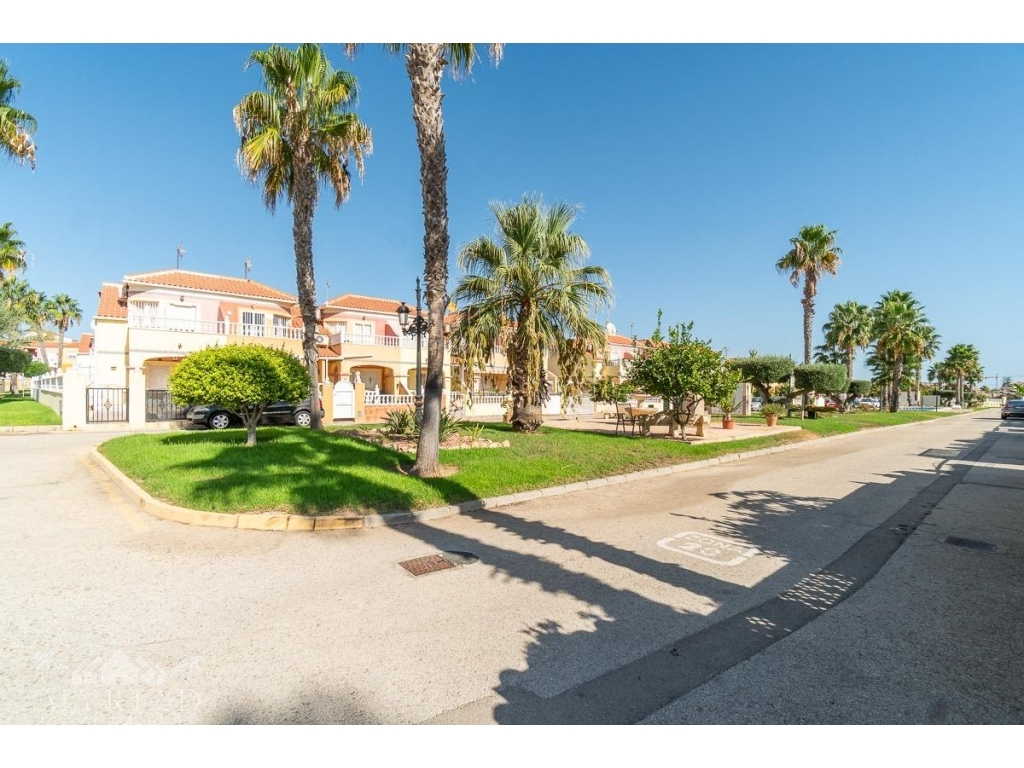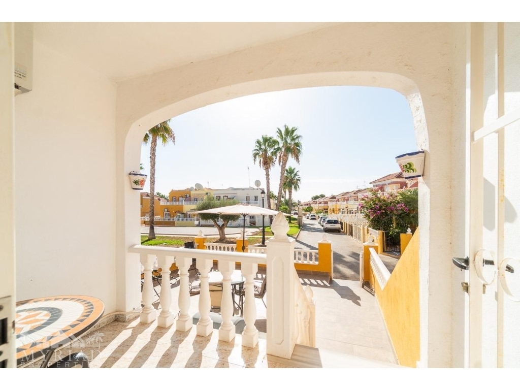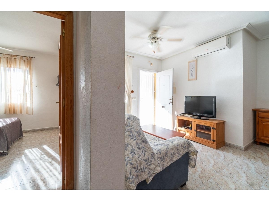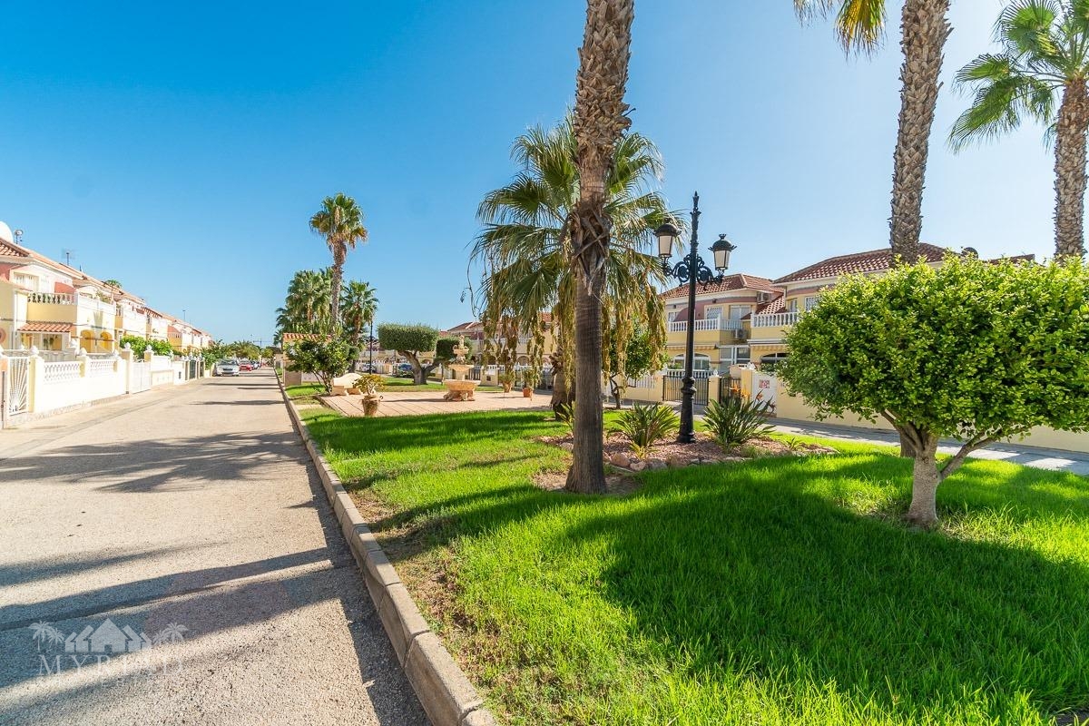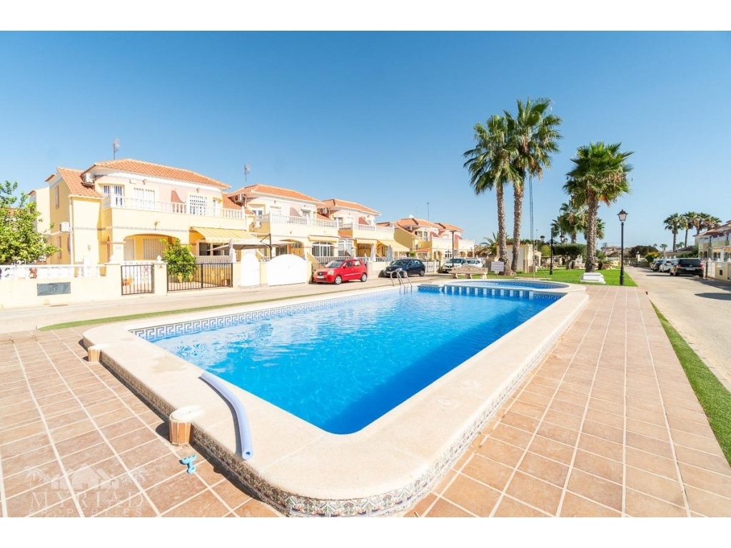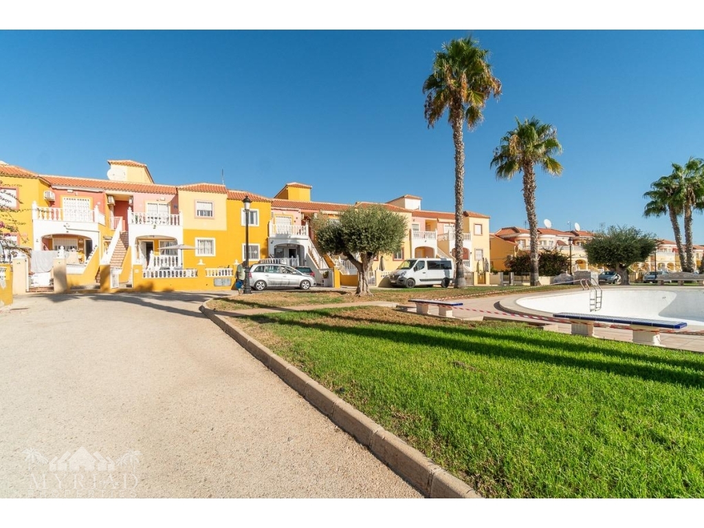 We present this charming ground-floor bungalow located in the sought-after area of Lomas de Cabo Roig, Orihuela Costa. With a built area of 59 m², this cozy apartment is ready to move in.~~You enter through a private garden leading to a lovely porch, perfect for dining outdoors or relaxing with family and friends. Inside, there is a bright living-dining room, a practical kitchen, two double bedrooms, and a full bathroom – all designed for comfort, whether for holidays or year-round living.~~The property faces east, allowing you to enjoy natural light from the early hours and sunshine all year round.~~The residential complex is gated and private, offering extra peace and security. It features two communal swimming pools surrounded by green areas, plus children’s play zones – ideal for families.~~Its location is unbeatable: within minutes you’ll find public transport, shopping centers, schools, hospitals, parks, and leisure areas.~~Thanks to the strong European tourism all year round, this property is not only a charming home but also an excellent investment opportunity for holiday rentals with great income potential.