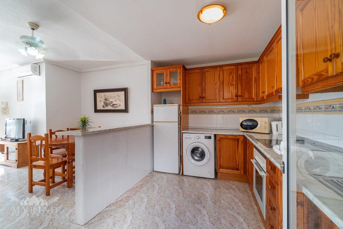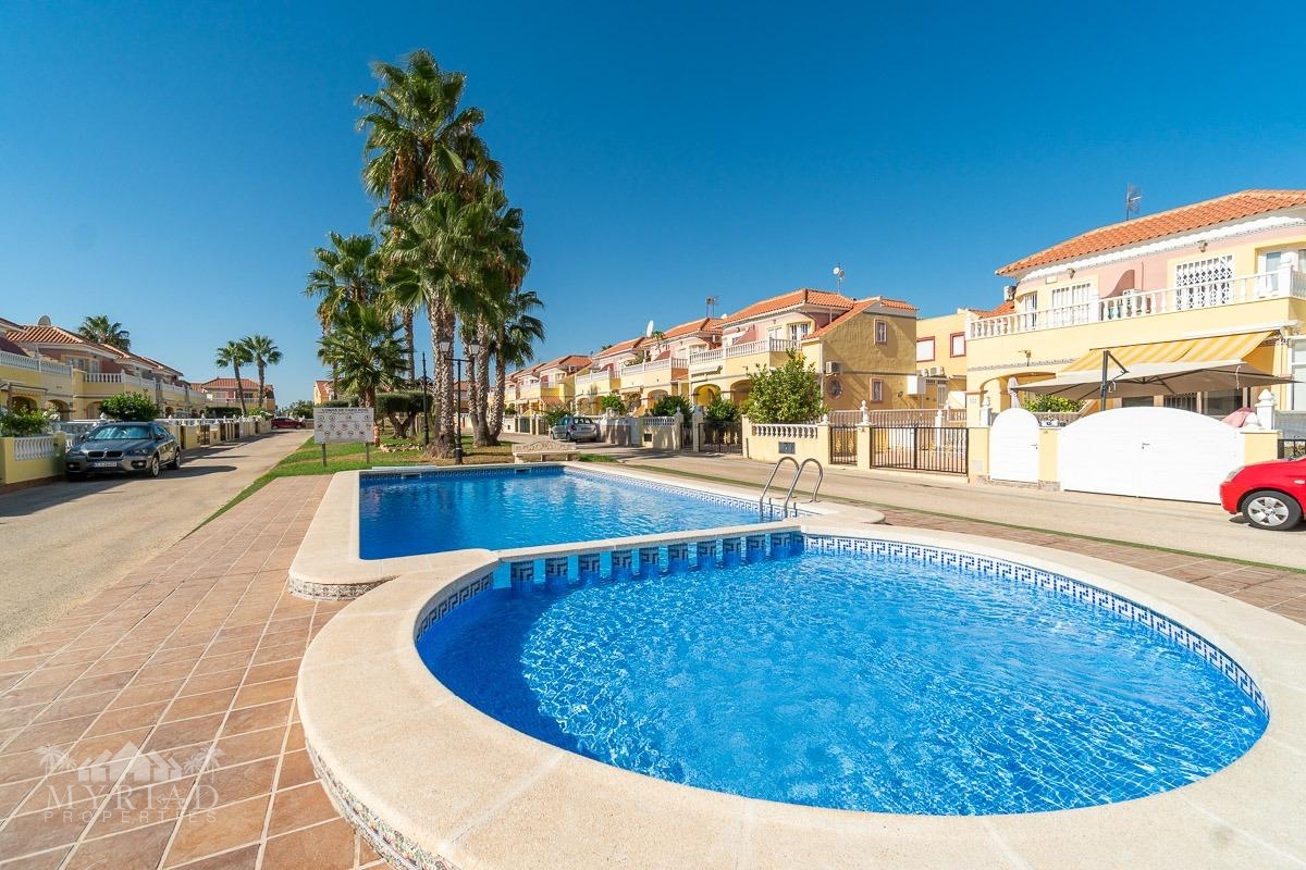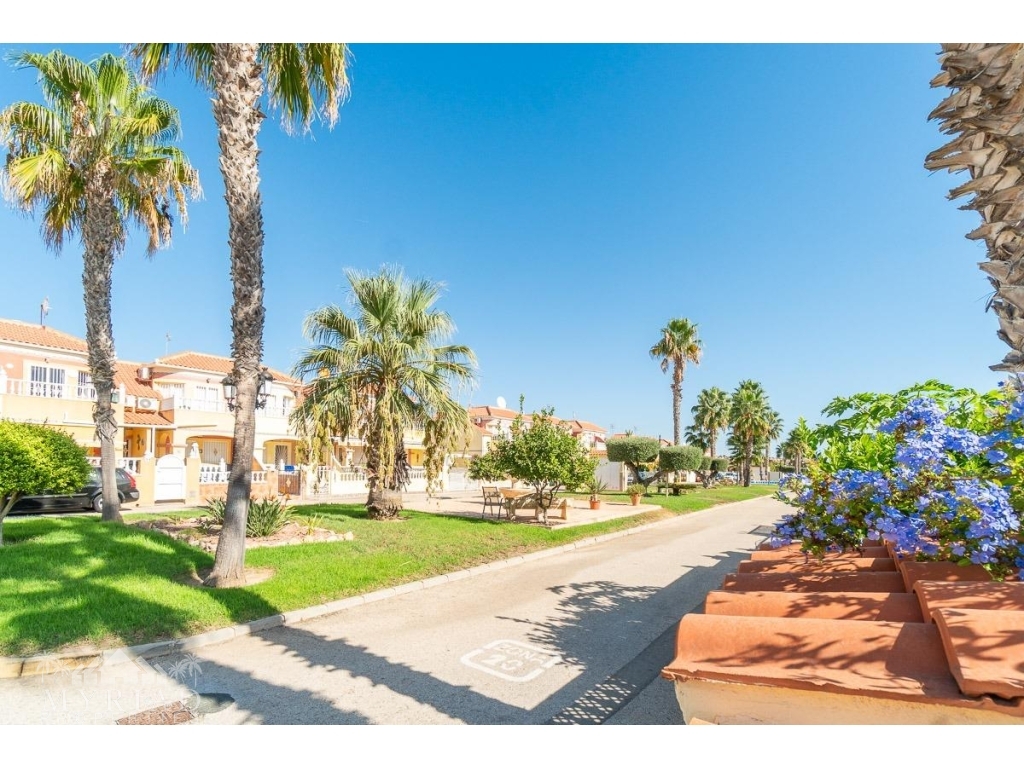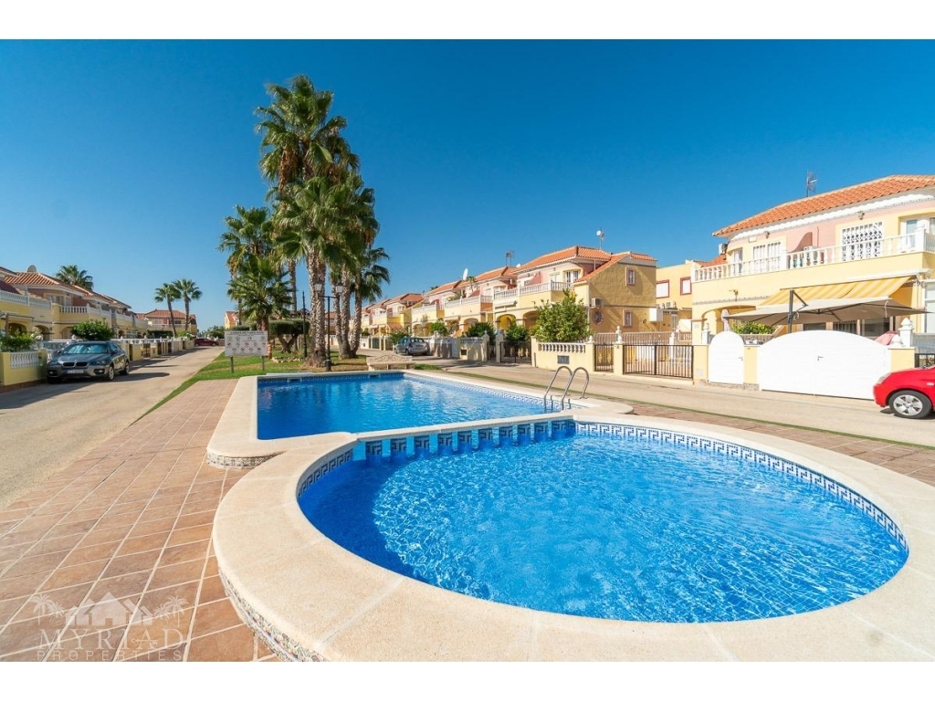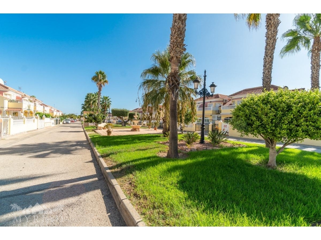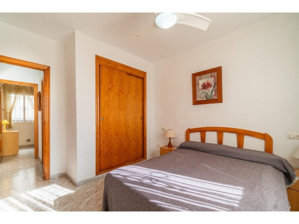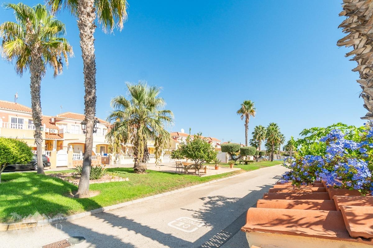 We present this charming ground-floor bungalow located in the sought-after area of Lomas de Cabo Roig, Orihuela Costa. With a built area of 59 m², this cozy apartment is ready to move in.~~You enter through a private garden leading to a lovely porch, perfect for dining outdoors or relaxing with family and friends. Inside, there is a bright living-dining room, a practical kitchen, two double bedrooms, and a full bathroom – all designed for comfort, whether for holidays or year-round living.~~The property faces east, allowing you to enjoy natural light from the early hours and sunshine all year round.~~The residential complex is gated and private, offering extra peace and security. It features two communal swimming pools surrounded by green areas, plus children’s play zones – ideal for families.~~Its location is unbeatable: within minutes you’ll find public transport, shopping centers, schools, hospitals, parks, and leisure areas.~~Thanks to the strong European tourism all year round, this property is not only a charming home but also an excellent investment opportunity for holiday rentals with great income potential.