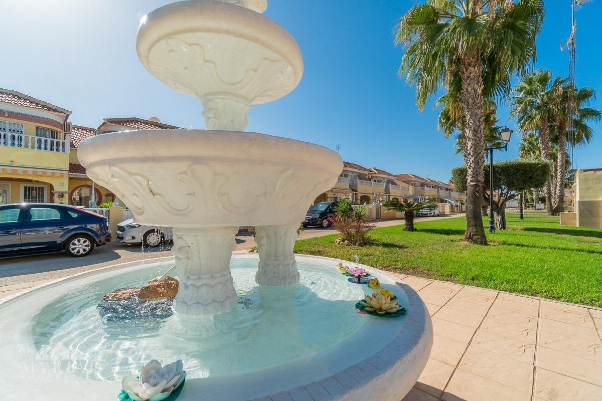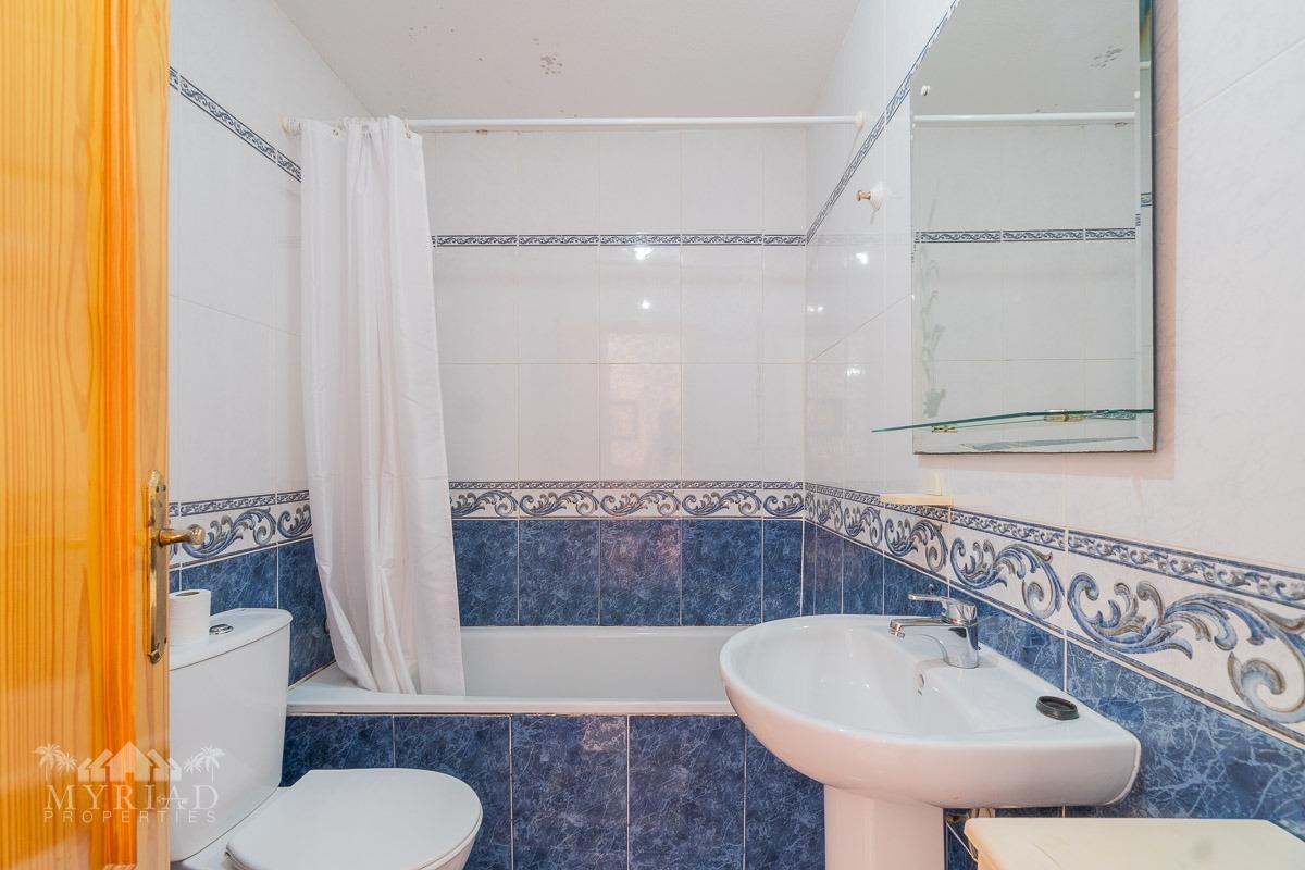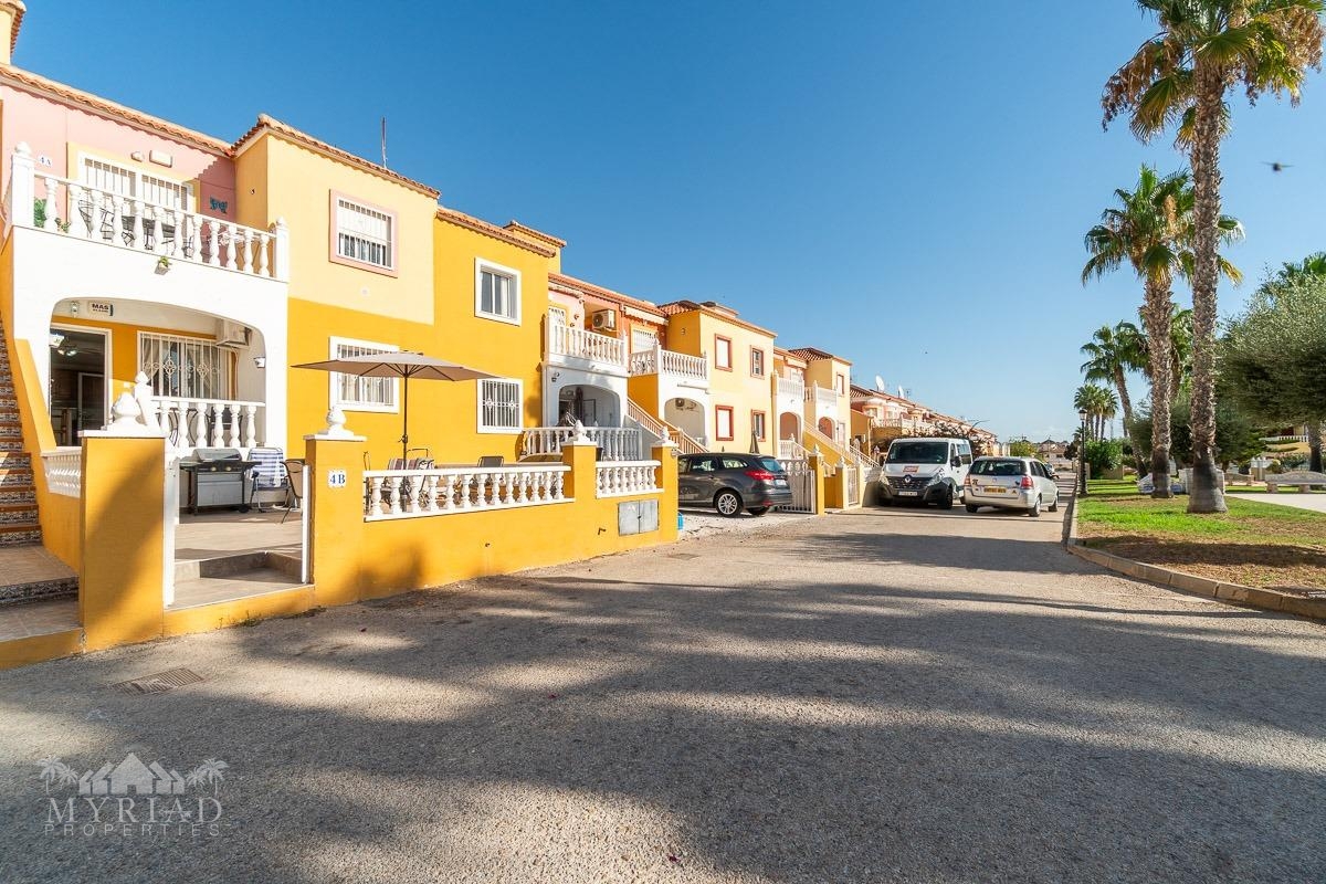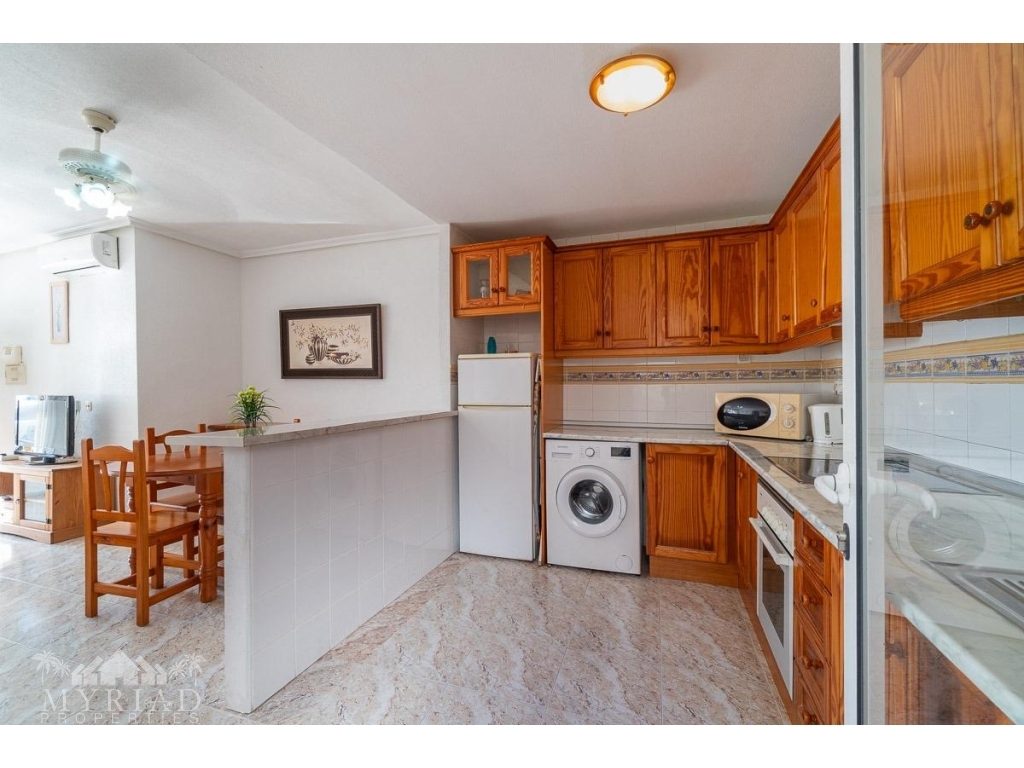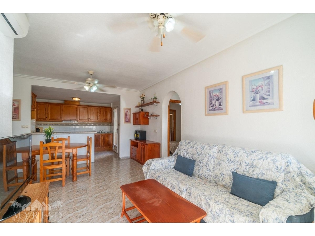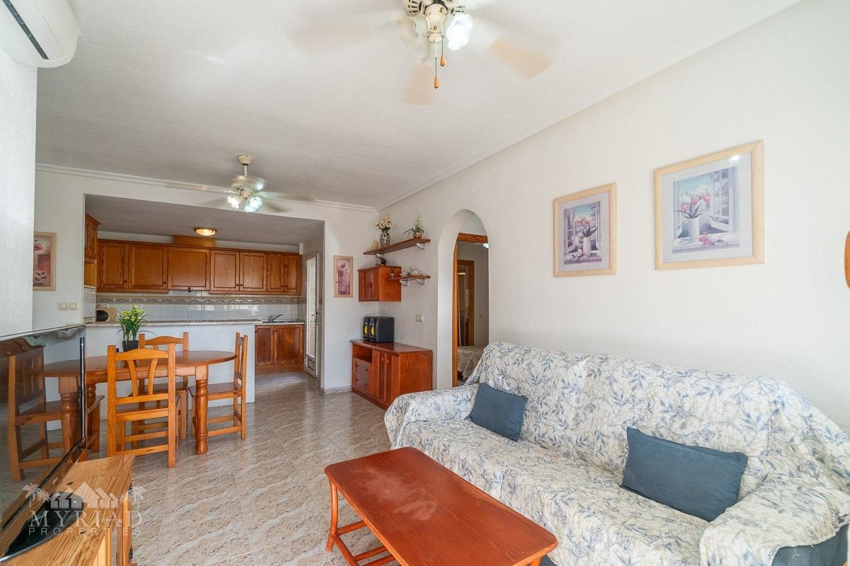 We present this charming ground-floor bungalow located in the sought-after area of Lomas de Cabo Roig, Orihuela Costa. With a built area of 59 m², this cozy apartment is ready to move in.~~You enter through a private garden leading to a lovely porch, perfect for dining outdoors or relaxing with family and friends. Inside, there is a bright living-dining room, a practical kitchen, two double bedrooms, and a full bathroom – all designed for comfort, whether for holidays or year-round living.~~The property faces east, allowing you to enjoy natural light from the early hours and sunshine all year round.~~The residential complex is gated and private, offering extra peace and security. It features two communal swimming pools surrounded by green areas, plus children’s play zones – ideal for families.~~Its location is unbeatable: within minutes you’ll find public transport, shopping centers, schools, hospitals, parks, and leisure areas.~~Thanks to the strong European tourism all year round, this property is not only a charming home but also an excellent investment opportunity for holiday rentals with great income potential.