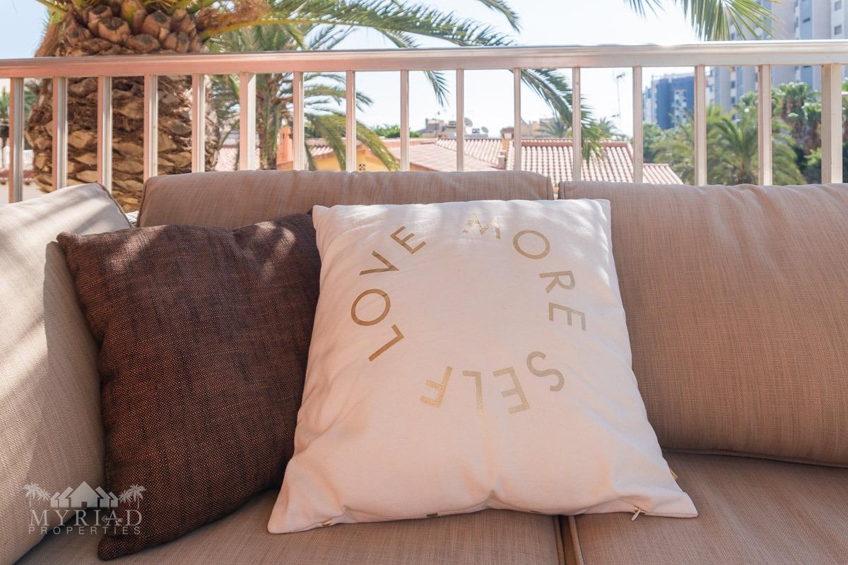 On the outskirts of the city, right on the border between Torrevieja and Orihuela Costa, in the Rocío del Mar residential area, very close to the beach, lies this wonderful renovated home with a large terrace and parking space. It is located in a gated community with large gardens, a communal pool, and an elevator for accessibility for people with reduced mobility.~~A short distance from shopping centers, all the shops, bars, and restaurants, yet in a very quiet area, with large gardens and a communal pool where you can rest and relax with unobstructed views and the breeze from the nearby sea, made possible by its corner location, with windows and doors opening onto two facades. It faces east and southeast, with sun in the morning and at midday, which allows the house to be warm in winter. In summer and most of the year when it's hot, the sea breeze and the possibility of enjoying the shaded part of the terrace make outdoor living much more pleasant on the 25 m2 of available terraces.~~The home is located on the end of the development, closest to the sea, and offers wonderful open views towards the communal gardens. The building features an entrance hall through the communal gardens. From the entrance, the apartment is accessed by elevator to the apartments and the parking lot in the basement of the building. There are unassigned spaces, but you can leave your vehicle protected from the sun and within the communal areas during the busiest summer months. Parking is easy and convenient, making the apartment much easier to use and enjoy.~~The apartment is located on the first floor, so if you have trouble taking the elevator, it's only a flight of stairs away. The entire apartment is exterior, providing plenty of light and sunlight throughout.~~The interior layout of the property includes an entrance hall, a fully furnished separate kitchen with large storage cabinets and high-end appliances, as well as three bedrooms, two bathrooms, one of which is en suite to the master bedroom, and a beautiful living-dining room with several French doors leading to the large terrace running along the entire front of the apartment.~~The home was recently renovated to luxury standards, with double-glazed PVC windows for improved thermal and acoustic insulation, smooth-painted walls, new tiles in the bathrooms and kitchen, new cabinetry and countertops in the kitchen, and all with improvements that have greatly improved the aesthetic and technical quality of the property. It is in perfect condition, ready to move into, with furniture and appliances, and can be occupied immediately.~~In short, it deserves a visit to see its value, both as a permanent residence and as a rental property for financial gain. The area, the large gardens, the proximity to the sea, the tranquility, the space, the quality, and the orientation all make this property a good investment for you and your family.