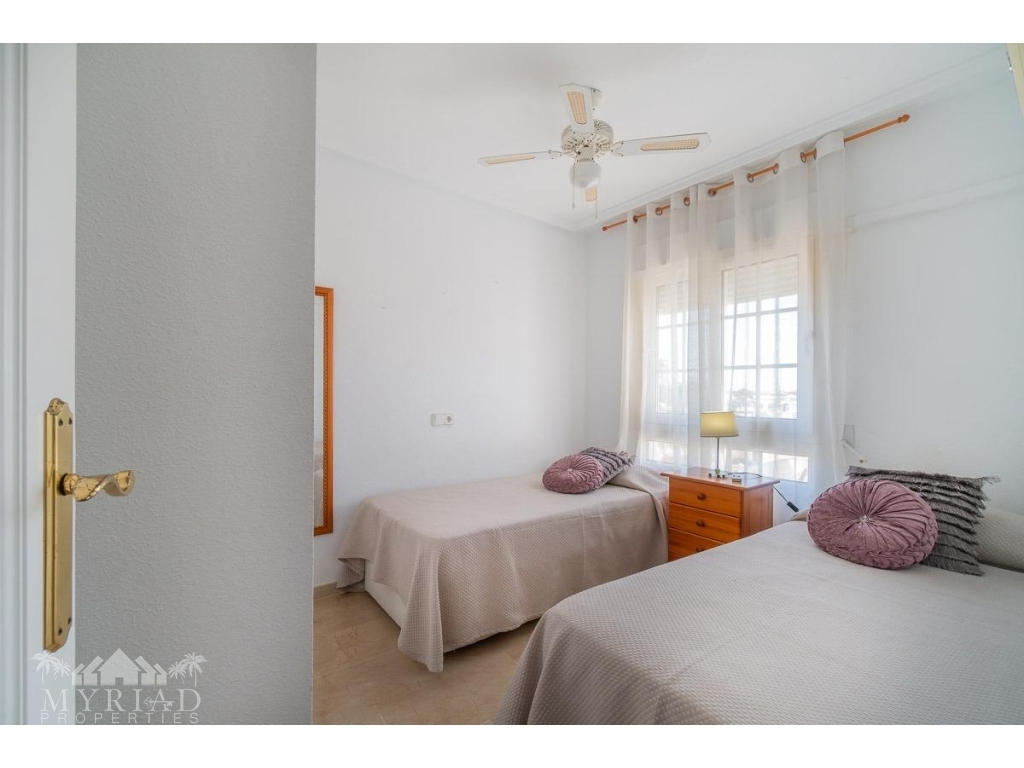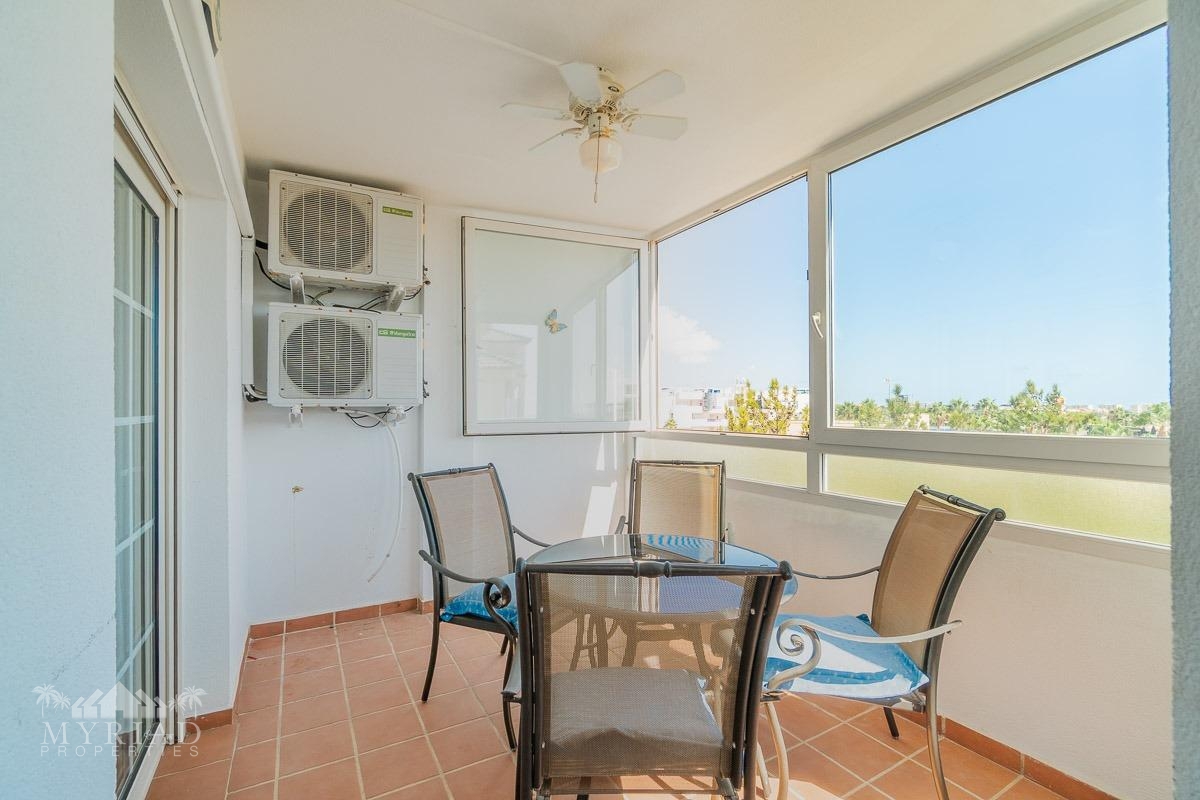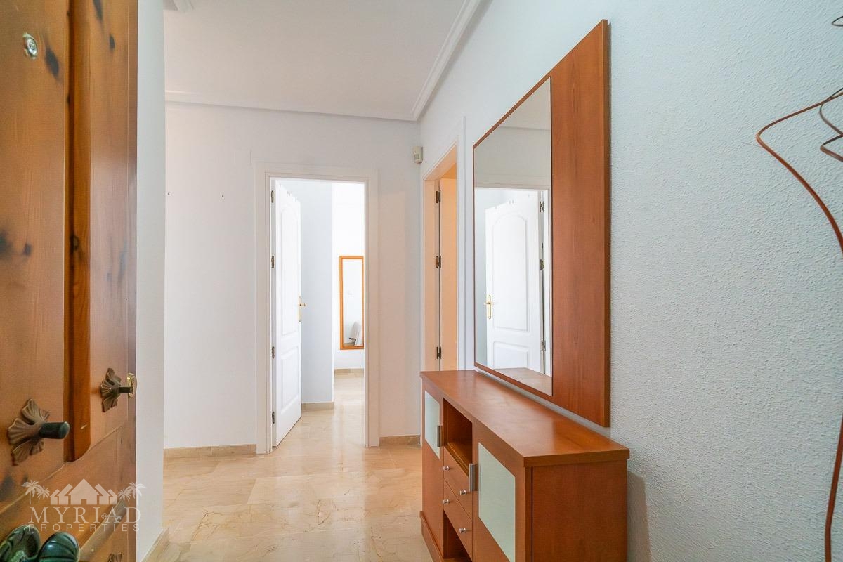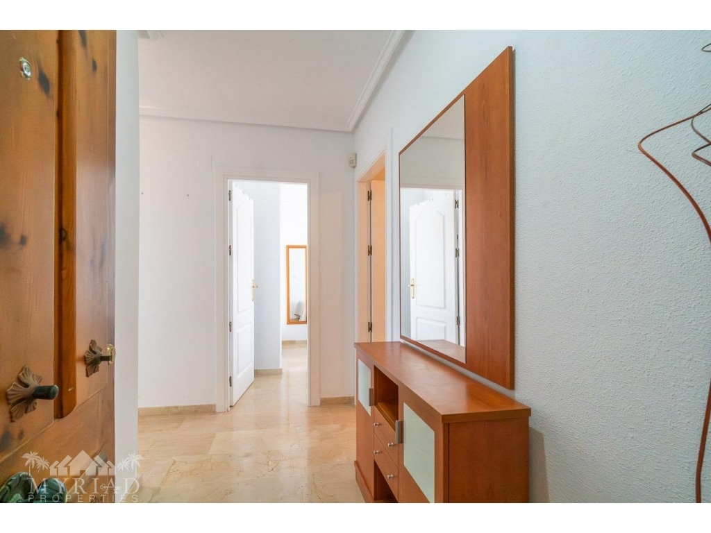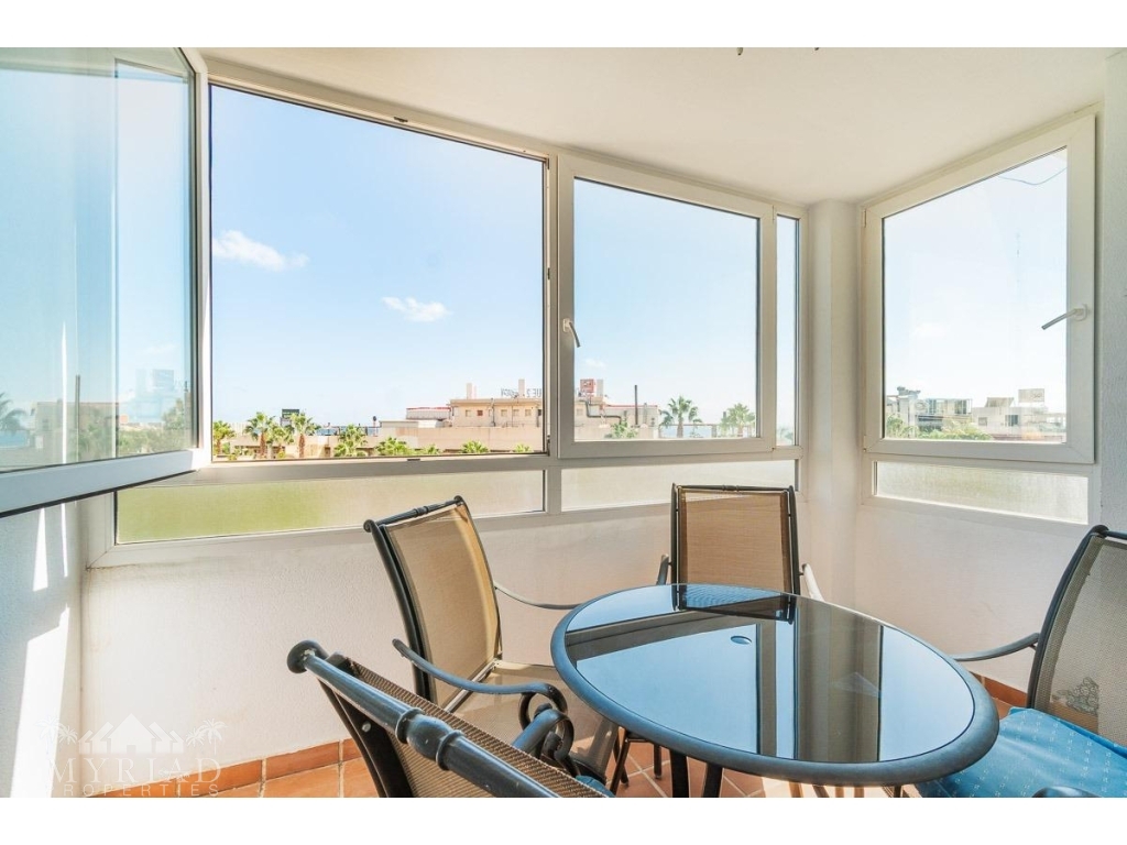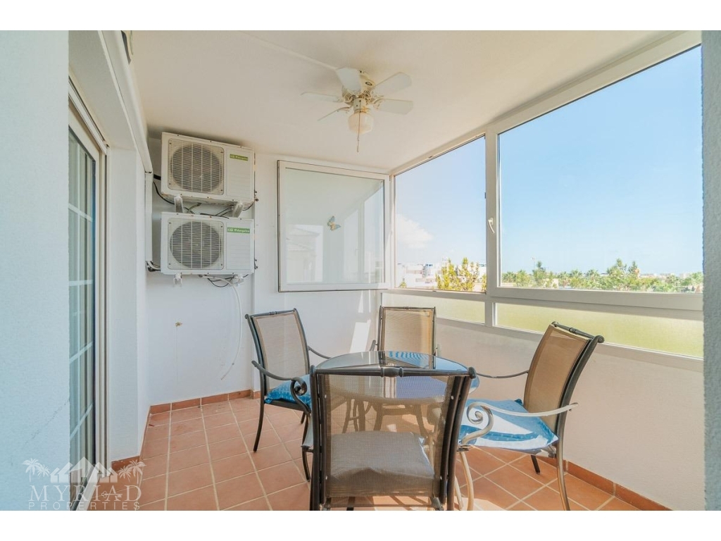 Beautiful, spacious, and bright penthouse apartment with unobstructed views in the heart of Playa Flamenca, close to shopping, green areas, bars, and restaurants, and just a short walk from the sea. In addition to all-day sunshine, you can enjoy a communal pool and the convenience of an elevator for easy access to your home for you and your family.~~The Playa Flamenca area where it is located is ideal, as it is within walking distance of the Flamenca Bedach leisure center, the Zenia Boulevard shopping center, municipal sports centers, schools, shops, and leisure areas, and, of course, just 5 minutes from the best beaches of the Orihuela Costa.~The residential complex is fenced and gated with automatic gates for vehicle access. It also includes off-street parking, a swimming pool, surrounding gardens, and ample parking areas for vehicles.~~The home is very spacious and open, with a main terrace with an aluminum and glass enclosure facing east and enjoying morning sun. In winter, it can be closed to maintain the temperature and heat the entire home with the heat from the aluminum enclosure. Furthermore, the windows open and the sea breeze cool the air during the warmer months. Opening the windows keeps the house well ventilated and cool. From all the windows, you have a sense of independence and privacy, as it is the highest unit in its block. There is no one above you to make noise or disturb your privacy, and it is not overlooked by any other property.~~The penthouse is a very good size, almost 84 m2, with a beautiful living-dining room and a spacious kitchen with a breakfast bar, two large bedrooms with built-in wardrobes, the master with an en-suite bathroom, and a second full bathroom for the rest of the home. From every angle, you have a feeling of spaciousness and airiness.~~It features marble floors, is furnished, in perfect condition, and ready to move in.~~It's worth a visit to the property to see and enjoy all its advantages.
