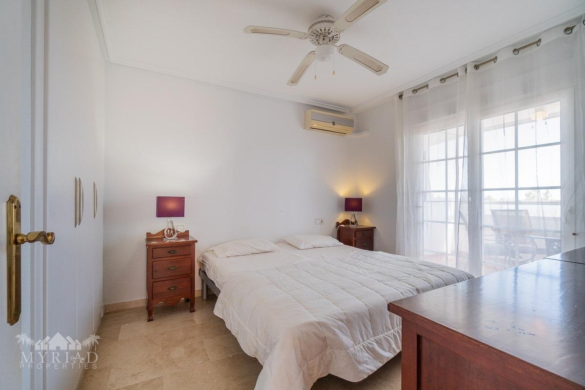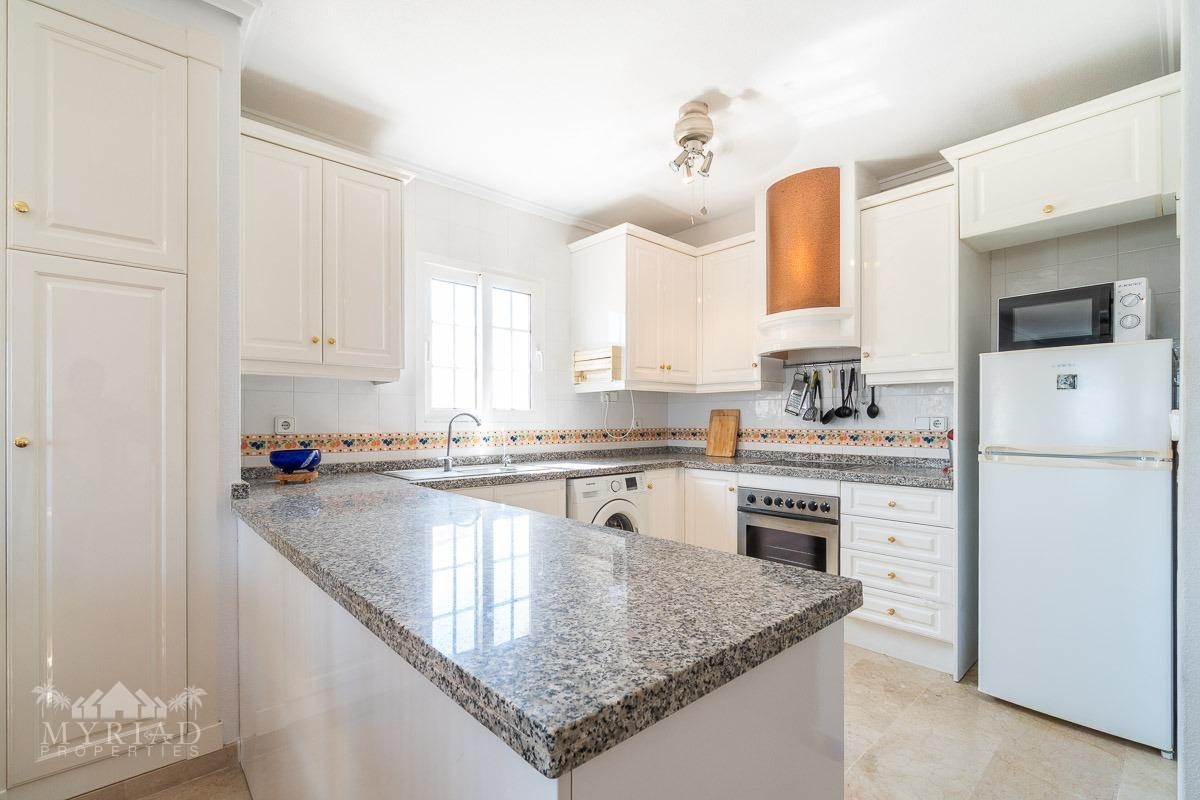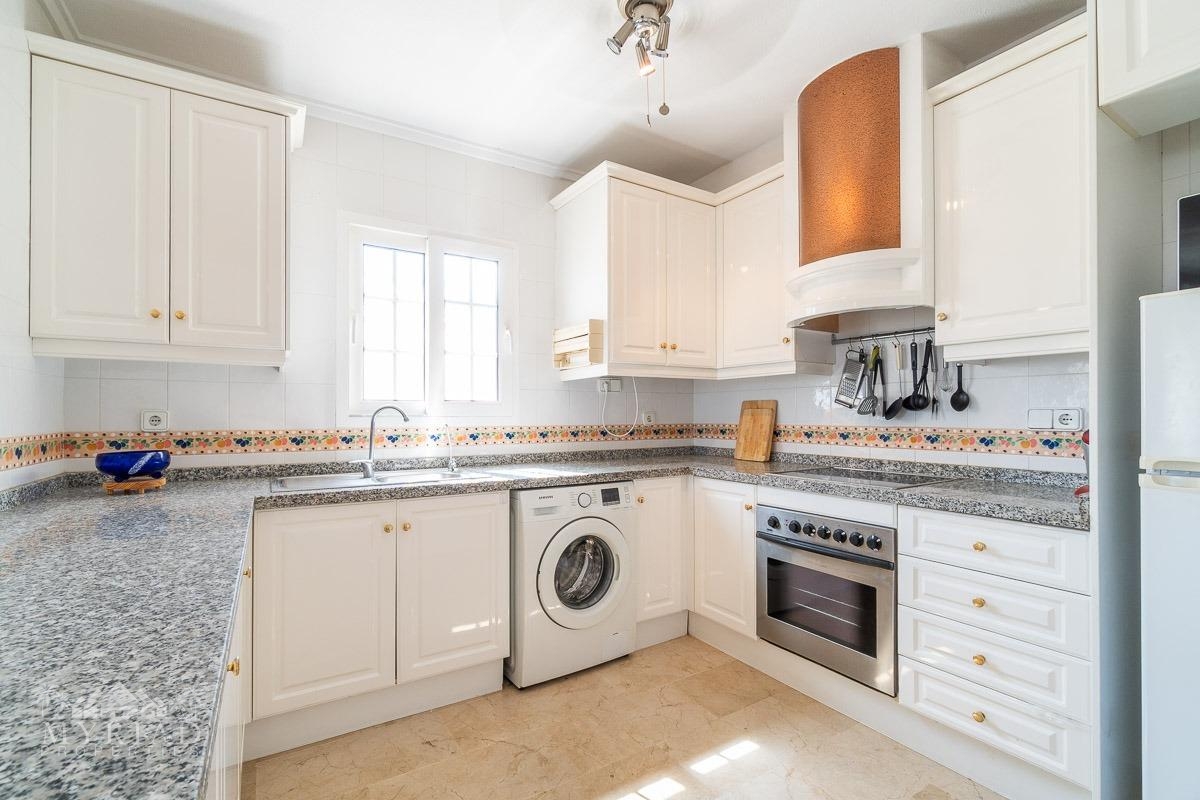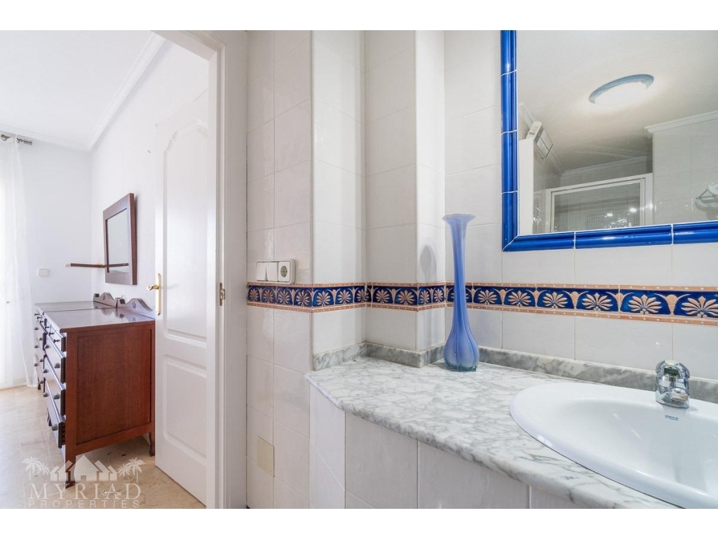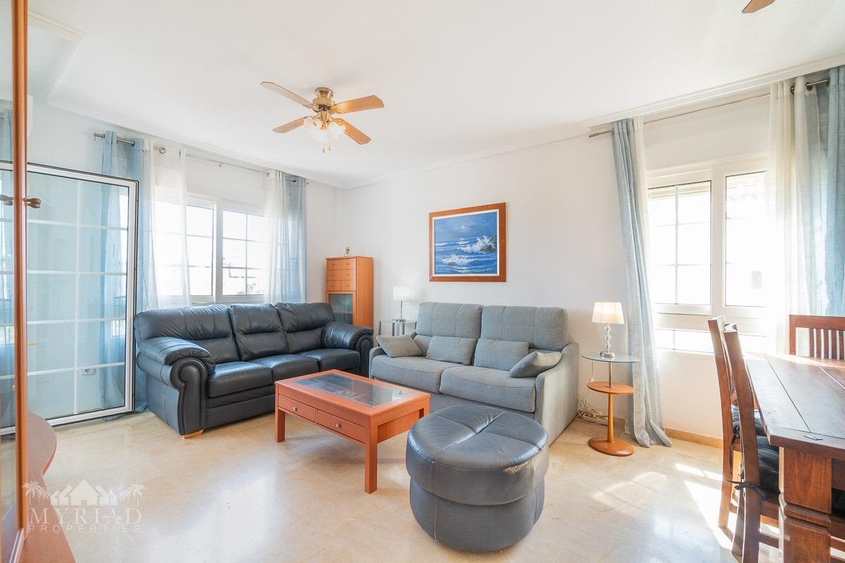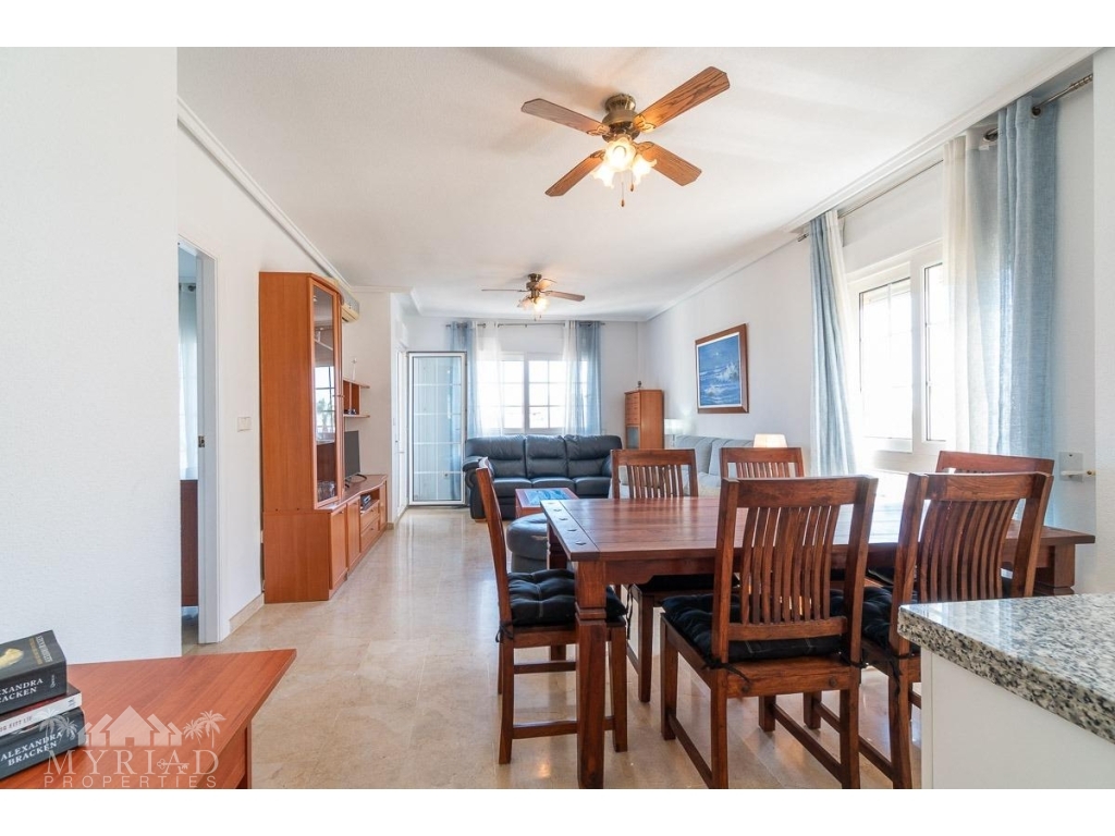 Beautiful, spacious, and bright penthouse apartment with unobstructed views in the heart of Playa Flamenca, close to shopping, green areas, bars, and restaurants, and just a short walk from the sea. In addition to all-day sunshine, you can enjoy a communal pool and the convenience of an elevator for easy access to your home for you and your family.~~The Playa Flamenca area where it is located is ideal, as it is within walking distance of the Flamenca Bedach leisure center, the Zenia Boulevard shopping center, municipal sports centers, schools, shops, and leisure areas, and, of course, just 5 minutes from the best beaches of the Orihuela Costa.~The residential complex is fenced and gated with automatic gates for vehicle access. It also includes off-street parking, a swimming pool, surrounding gardens, and ample parking areas for vehicles.~~The home is very spacious and open, with a main terrace with an aluminum and glass enclosure facing east and enjoying morning sun. In winter, it can be closed to maintain the temperature and heat the entire home with the heat from the aluminum enclosure. Furthermore, the windows open and the sea breeze cool the air during the warmer months. Opening the windows keeps the house well ventilated and cool. From all the windows, you have a sense of independence and privacy, as it is the highest unit in its block. There is no one above you to make noise or disturb your privacy, and it is not overlooked by any other property.~~The penthouse is a very good size, almost 84 m2, with a beautiful living-dining room and a spacious kitchen with a breakfast bar, two large bedrooms with built-in wardrobes, the master with an en-suite bathroom, and a second full bathroom for the rest of the home. From every angle, you have a feeling of spaciousness and airiness.~~It features marble floors, is furnished, in perfect condition, and ready to move in.~~It's worth a visit to the property to see and enjoy all its advantages.