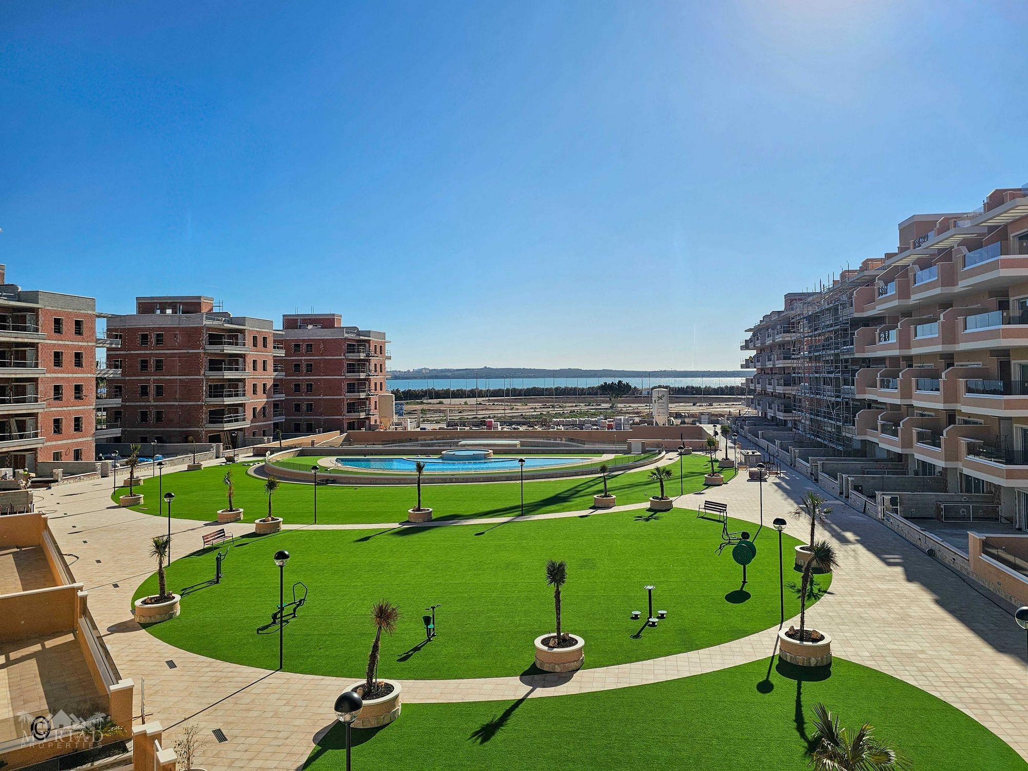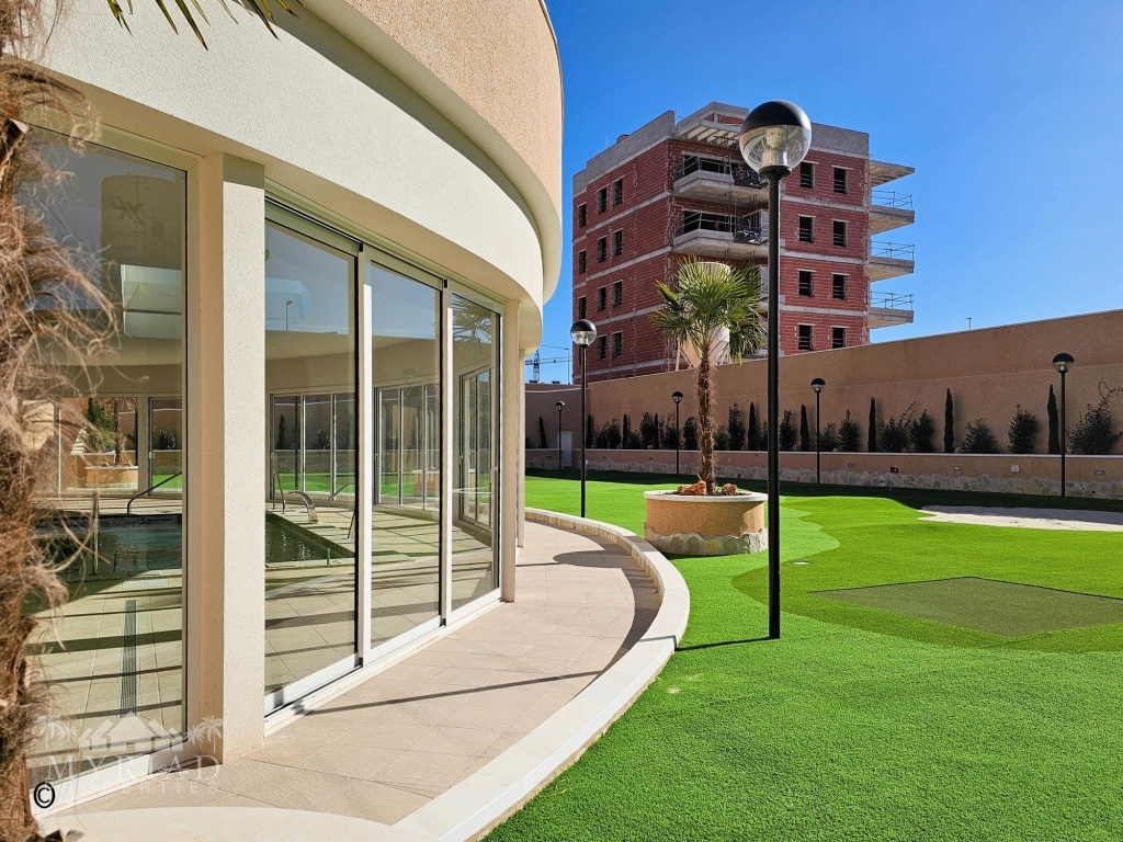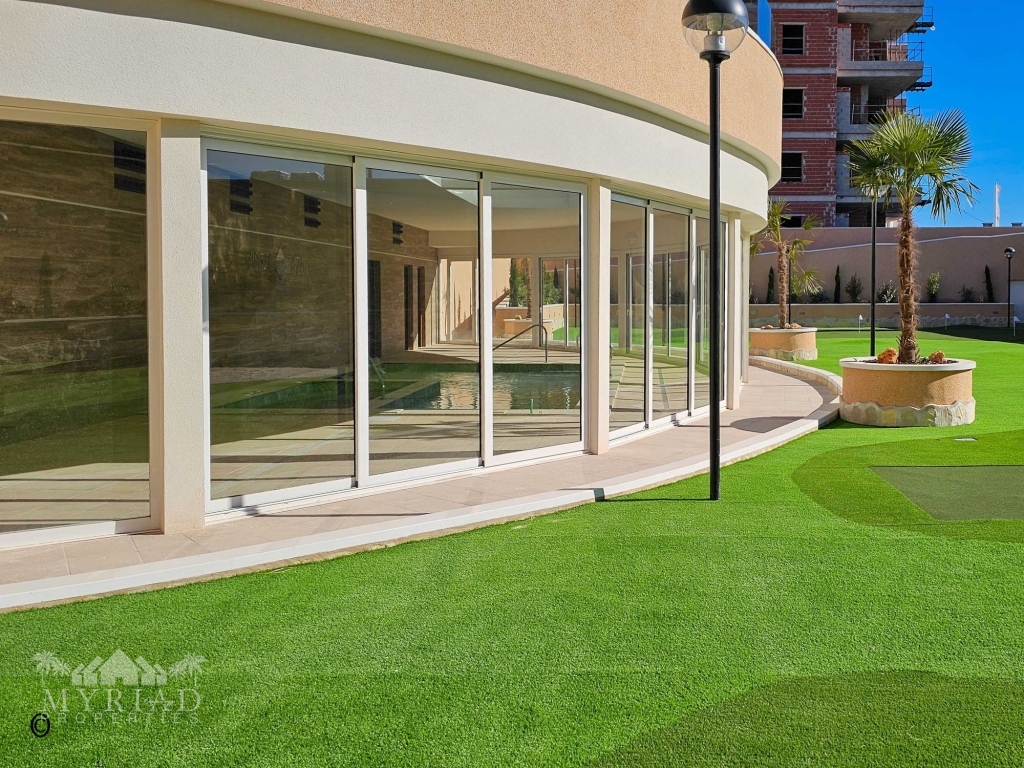 The residential complex is still partially under development, but the building in which the apartment is located is fully completed. There are or will be several shared facilities such as a large outdoor pool with a children’s pool and Jacuzzi, a spa area with an indoor heated pool and sauna section, an outdoor area specially designed for children, an outdoor gym, pétanque courts, and a putting green. The complex is located on a gated plot and is only accessible to residents. In addition to all the mentioned facilities, there are several well-maintained green zones, providing plenty of space for everyone to relax and enjoy.