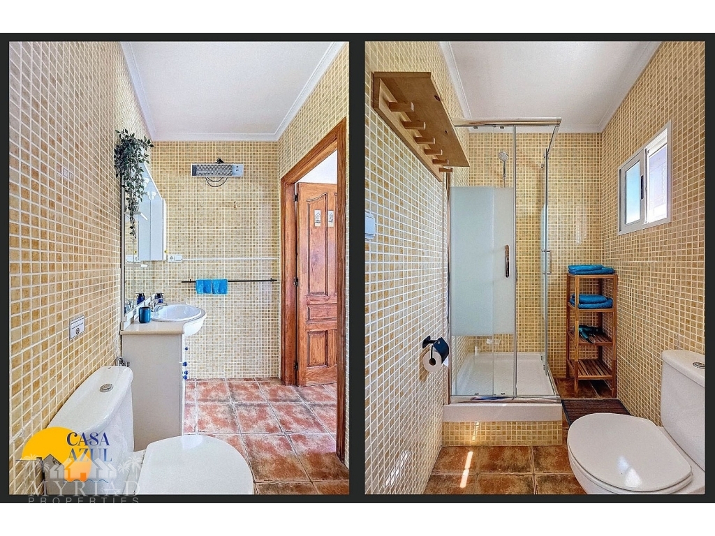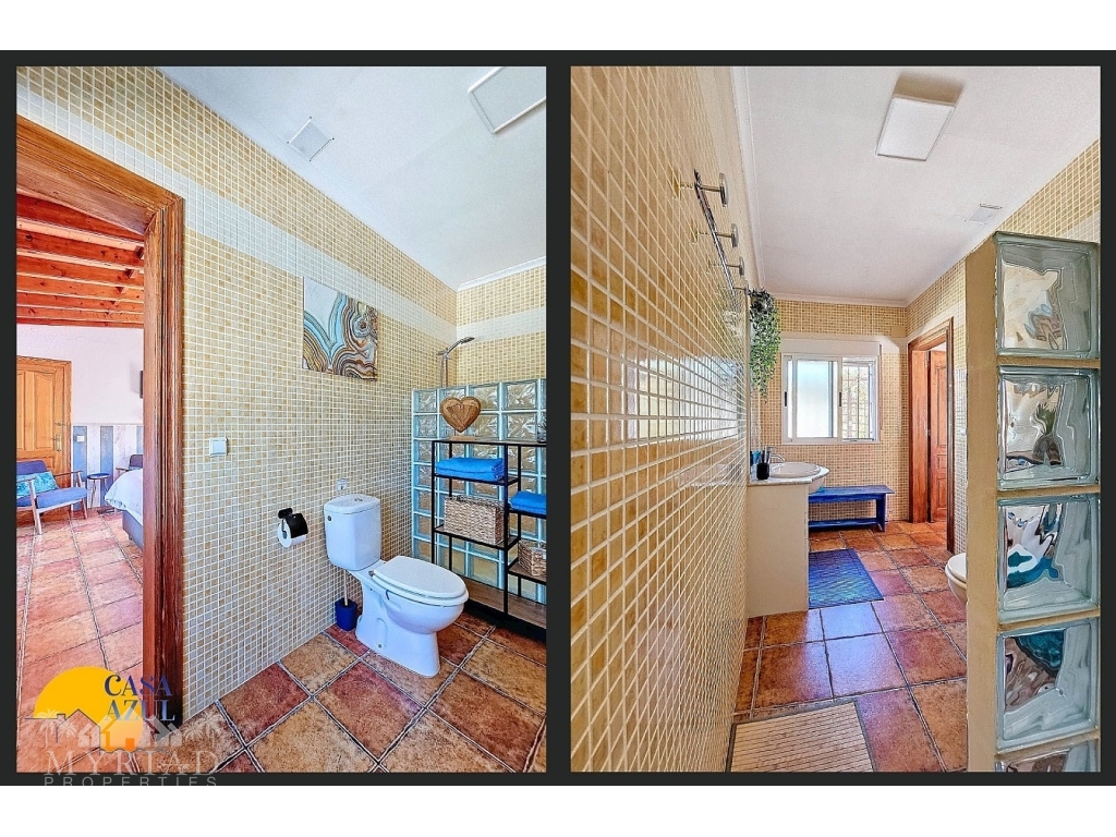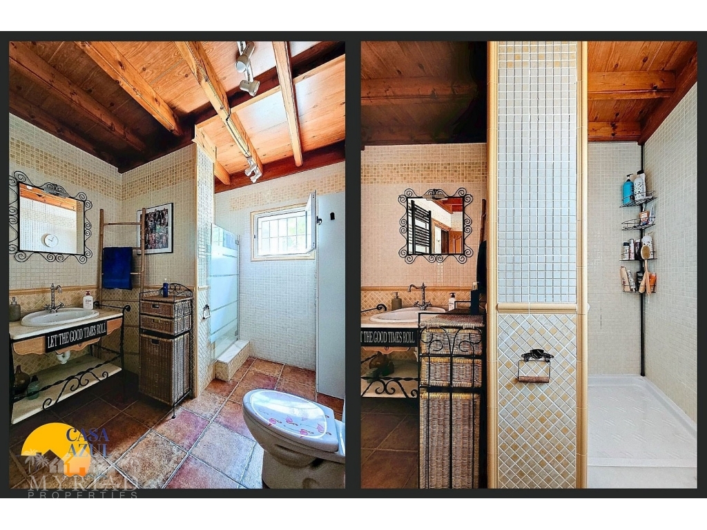The estate has four spacious bedrooms, each with its own entrance and key, which not only ensures privacy but also comfort. All bedrooms have modern en-suite bathrooms with walk-in showers, air conditioning and offer breathtaking views of the surrounding mountains and the manicured garden. In addition to the main house, there is a spacious casita that can accommodate four people. This guesthouse is completely self-contained, with its own entrance, a fully equipped kitchen (including oven, microwave, dishwasher, refrigerator and tumble dryer), and a cozy living room with air conditioning. The casita has two bedrooms and a private terrace with mountain views, ideal for guests or family.