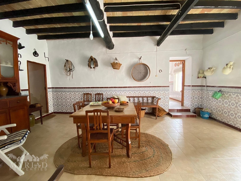 Located 10km from Pinoso and 17km from Yecla, surrounded by almond trees, olives and pine trees this is truly a nature lovers paradise. The house would make a spectacular family home, it could be split to accommodate extra family members, or possibly used as a buisness ie wedding venue or B&B, checks with the town hall with regards to licenses are essential.