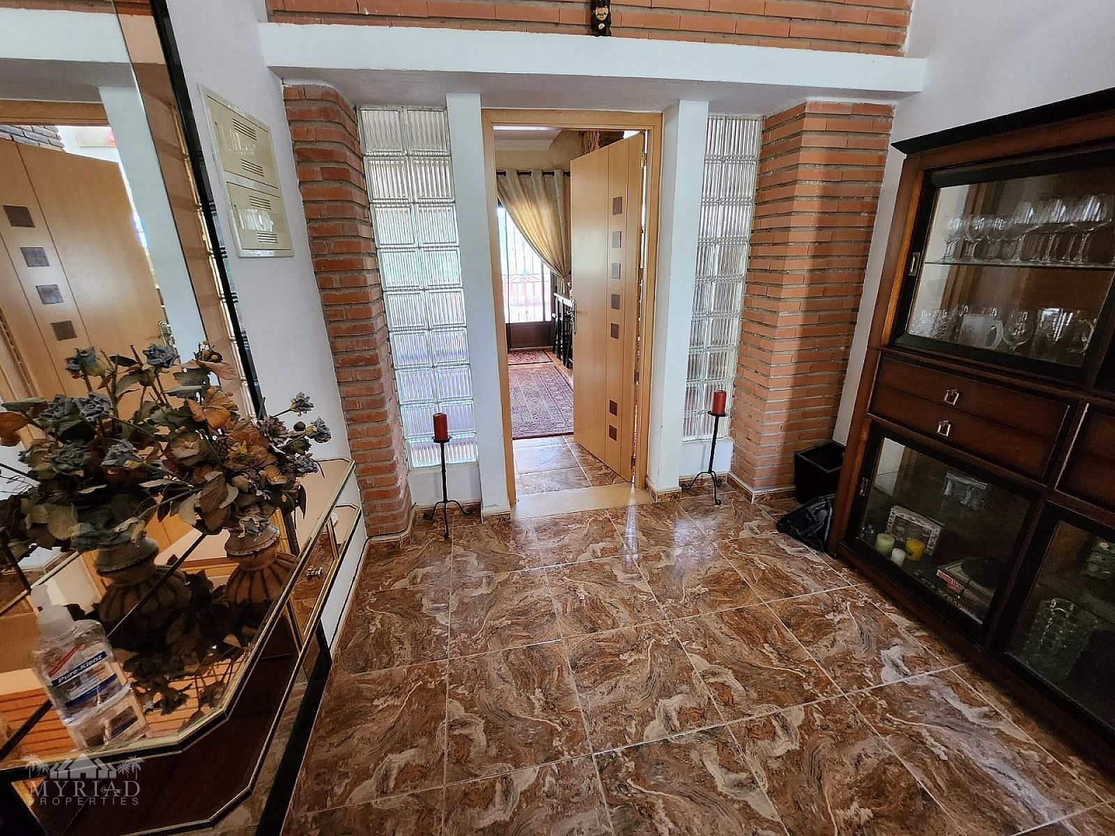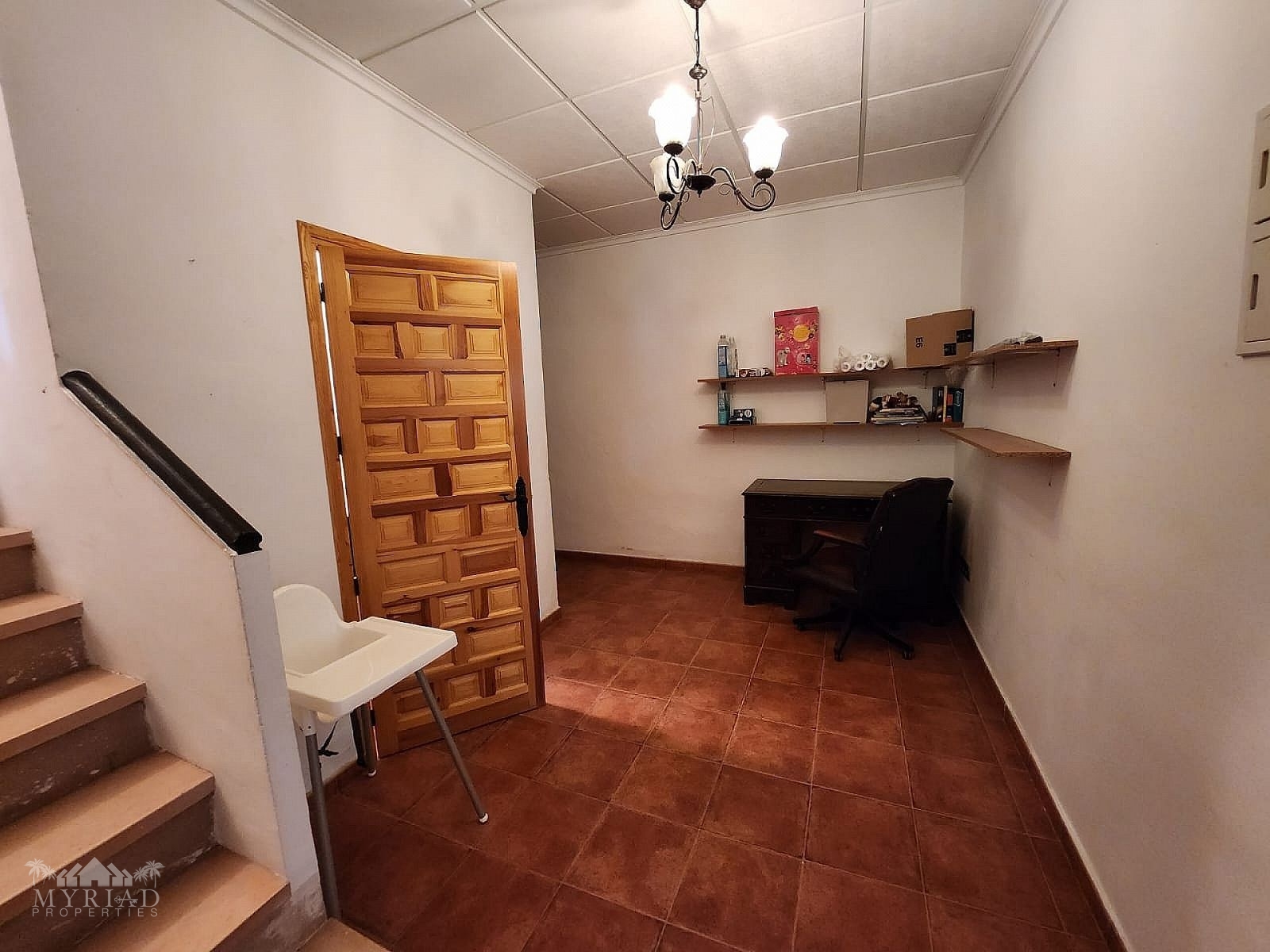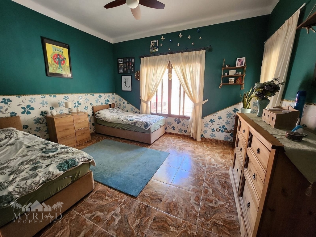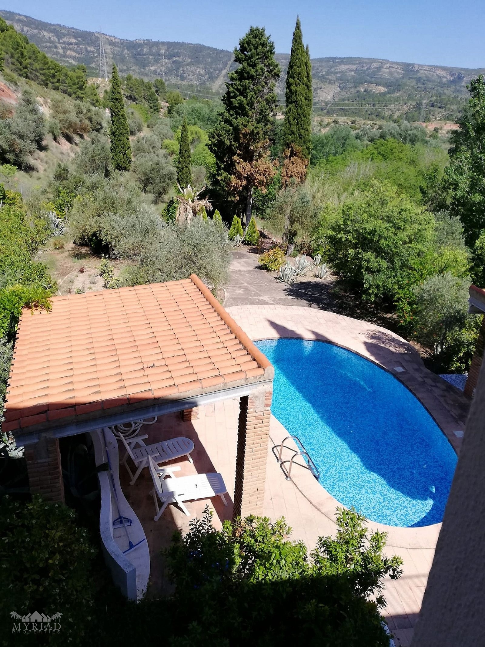 1st Floor - Main front entrance, 3 bedrooms, 1 bathroom, large twin living room, kitchen, pantry and terraces with access to the pool, access to the garage (currently walled in with a pedestrian door, but could be reopened).