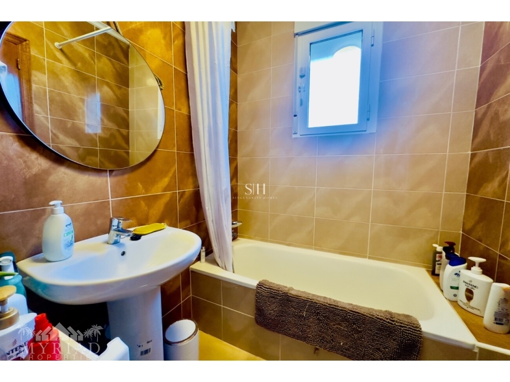 Enjoy the Mediterranean lifestyle with ample outdoor space, including a terrace adjacent to the main living-dining area, a balcony on the first floor, and a private solarium accessible via an internal staircase—perfect for sunbathing or taking in the stunning views of the countryside and pool.