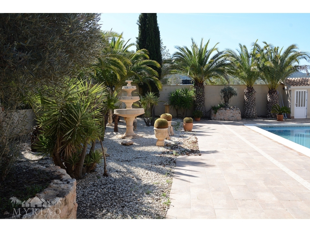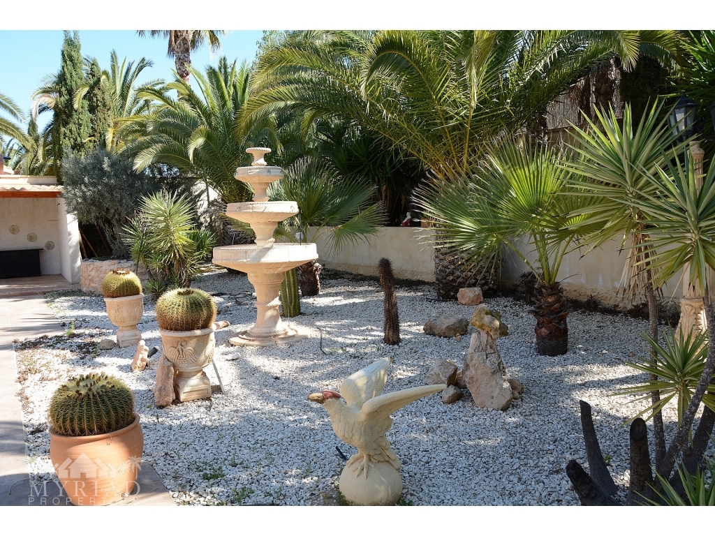 Set on a generously sized 1,084m² landscaped plot filled with mature Mediterranean plants, this property boasts a 10×5 meter private pool, outdoor shower, and a separate toilet for convenience.