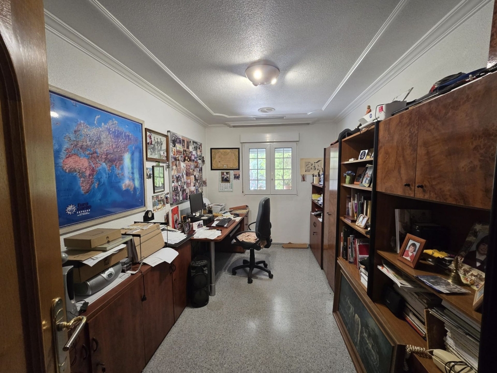 On the main floor, you’ll find the heart of the home: spacious bedrooms, a separate office, full bathrooms, and a large living-dining area with a fireplace that opens straight out to the garden. The kitchen is roomy and practical, with a pantry and direct access outside ideal for day-to-day life or entertaining.