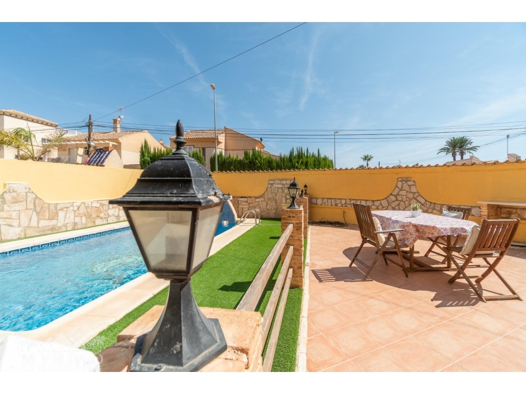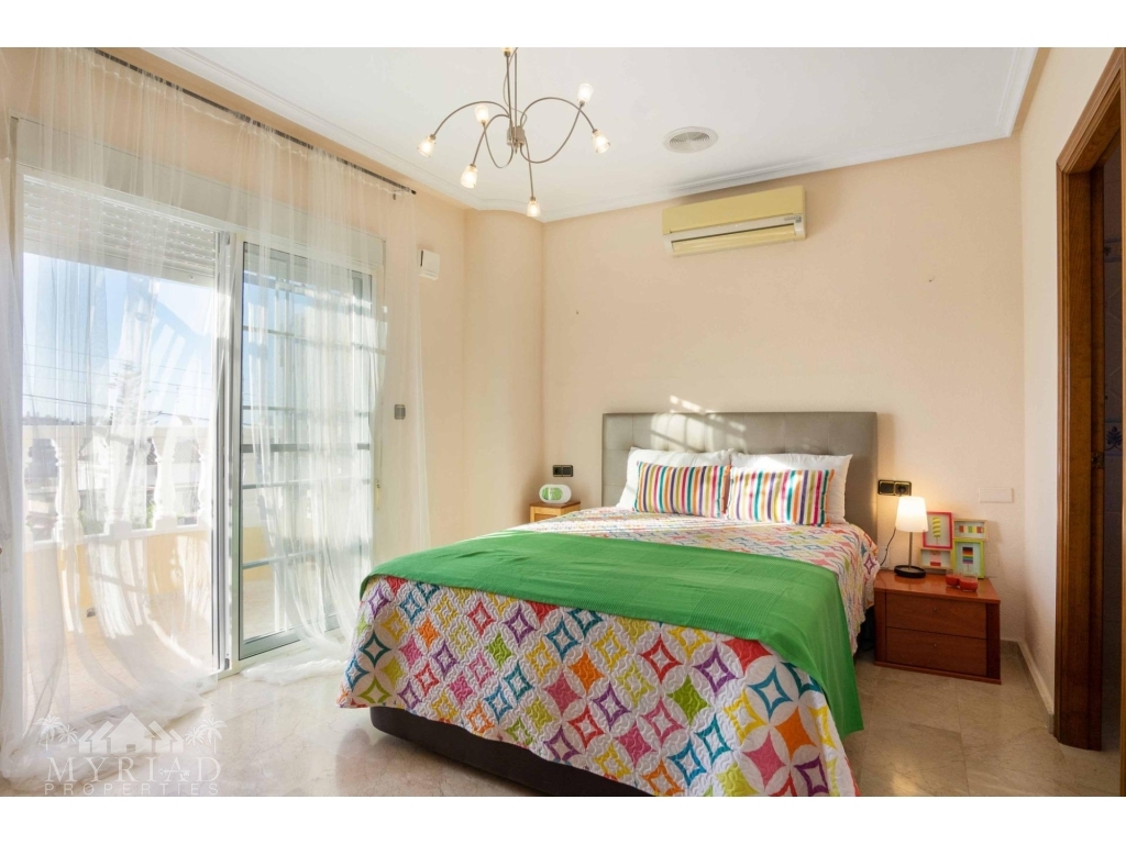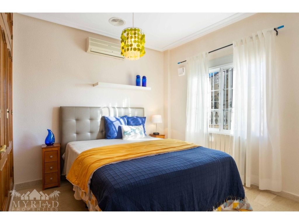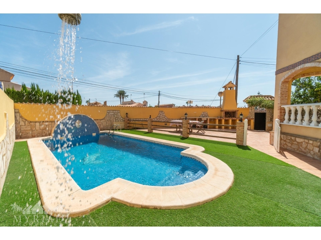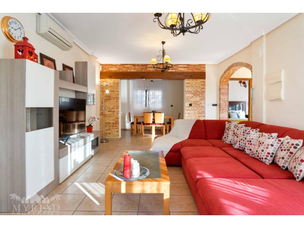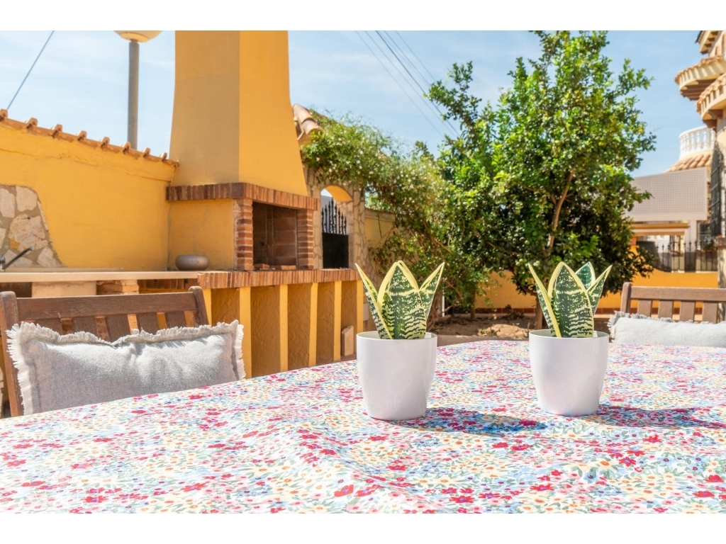 Welcome to your new home in Orihuela Costa, in the charming area of Las Mimosas!~~This spectacular house is presented as the opportunity you have been waiting for to live the life of your dreams in a paradisiacal environment. With a generous area of 161 square meters and a plot of more than 300 square meters, this home is an oasis of space and privacy . In addition, its location just 3000 meters from the beach guarantees you the pleasure of the sea and the sun always at your fingertips.Enjoy the spaciousness of this 5 bedroom home, with the advantage of a room on the ground floor for added comfort. On this floor we also find a bathroom. The first floor offers 3 bedrooms and 2 bathrooms, 1 en suite. On the top floor we find the fifth bedroom very bright.~~This property is ready for you to move in and feel at home from the first moment. The equipped kitchen will allow you to give free rein to your culinary creativity, and the south-east orientation provides you with incomparable natural luminosity throughout the day. The additional amenities of this house are countless. Enjoy the convenience of running water, the comfort of air conditioning and the security of an alarm system. Built-in wardrobes, a pantry and a laundry room make it easy to organize your daily life. The house comes fully furnished, meaning you can move in without complications and start enjoying your spaces from day one. The garden, with its trees and a barbecue area, becomes the perfect setting for your family gatherings and outdoor moments. Relax and immerse yourself in the waters of your private pool or join the community in the community pool.~~The solarium offers you a corner of tranquility for your moments of reflection, while the clear views and the Mediterranean breeze caress your soul. The location of this house is simply exceptional, with shopping centers, hospitals, parks, supermarkets and children's areas nearby , which makes everyday life extremely comfortable.Community fees are only 402 euros per year, which guarantees the impeccable maintenance of the common areas.In short, this house in Orihuela Costa is much more than a property ; It is a lifestyle.~~A life of comfort, beauty and tranquility awaits you here. Don't miss this opportunity and contact us today to visit your new home!