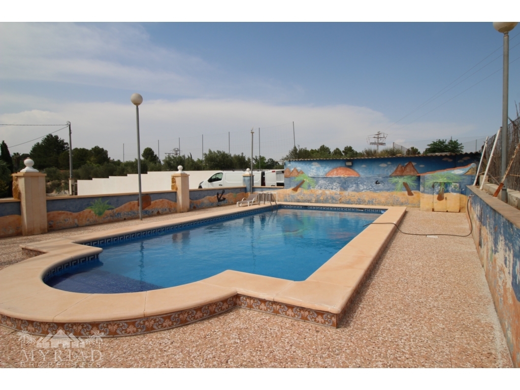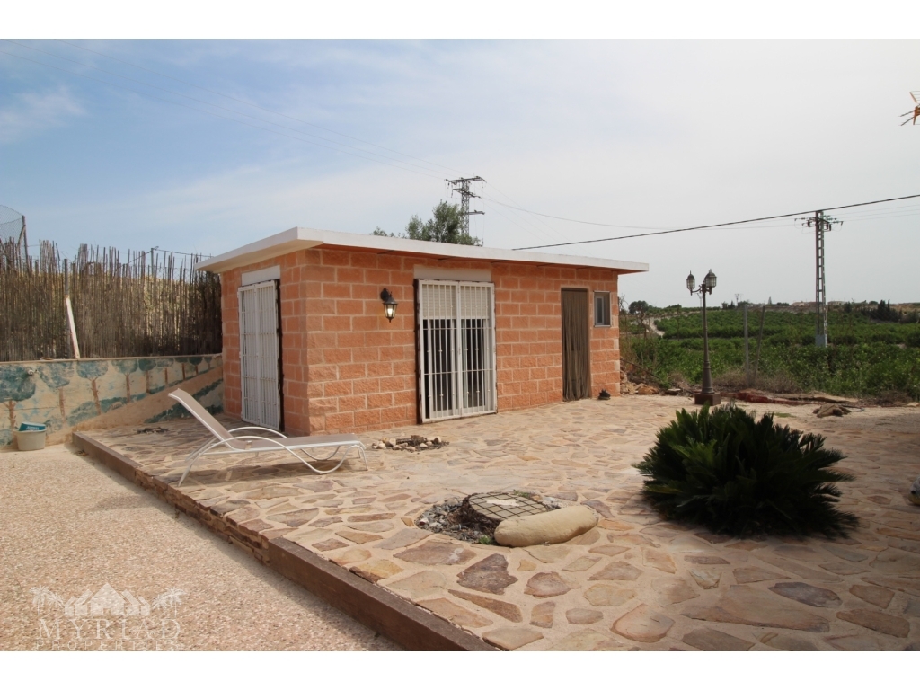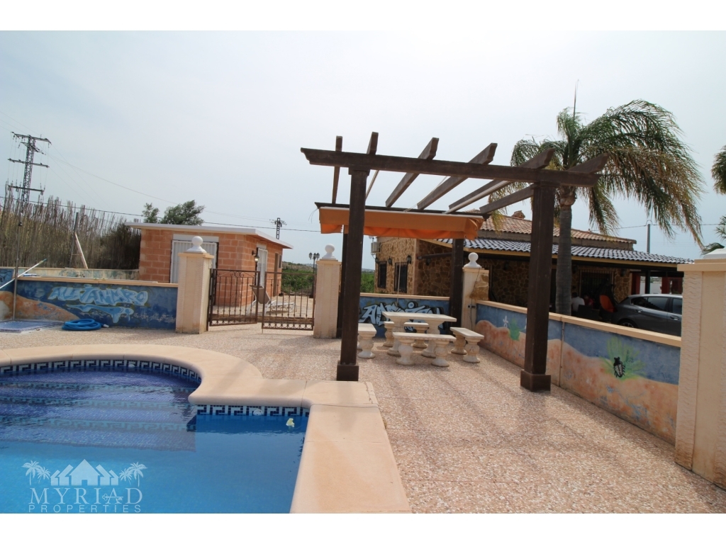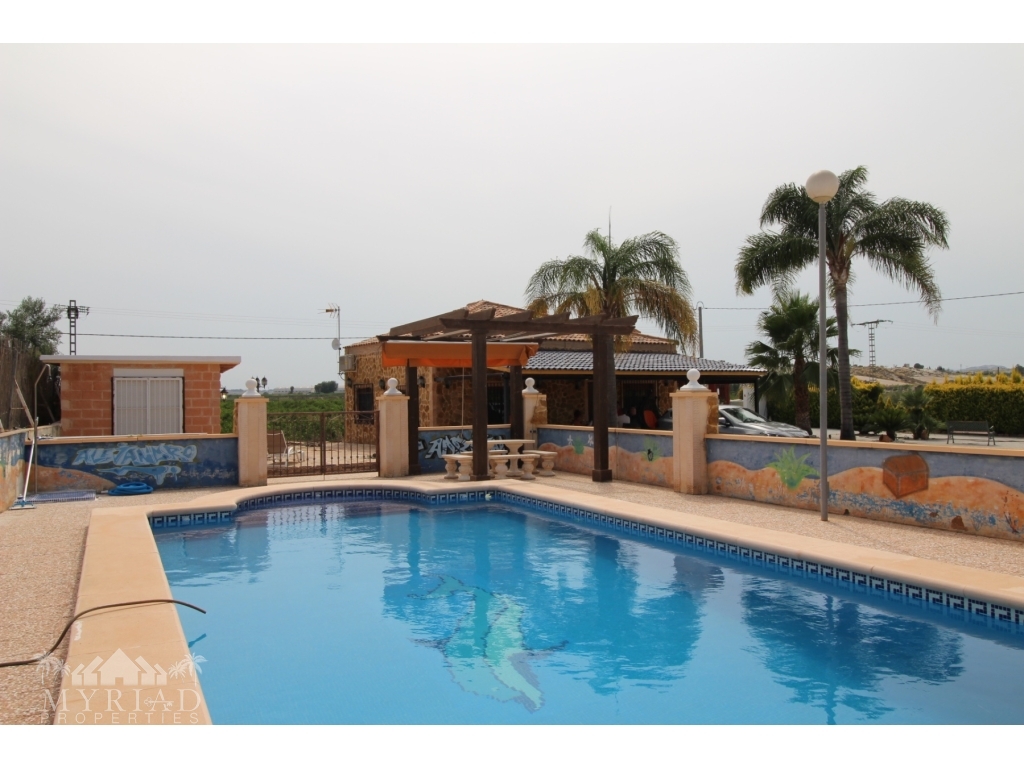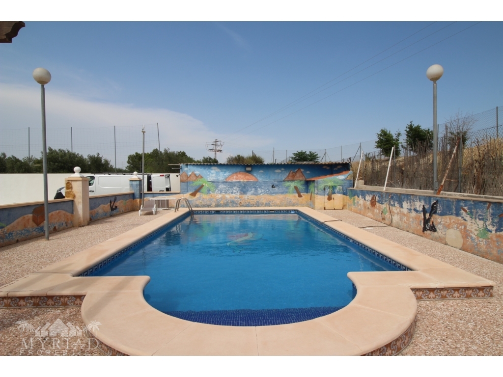This nice villa is located in a quiet area less than 10 minutes from the city of Fortuna and all amenities. The main house consists of a living room with open kitchen, two bedrooms and a bathroom. On the side is a smaller independent building with an additional bedroom and bathroom. A spacious covered terrace opens directly onto the outside and the large 10x5 pool. There is also a garage and a barbecue area. It has all modern comforts: water, electricity, internet, air conditioning in the living room, pellet stove, electric gate. It will be sold furnished. At 45 minutes from Alciante airport and the beaches, and about twenty minutes from the superb city of Murcia.