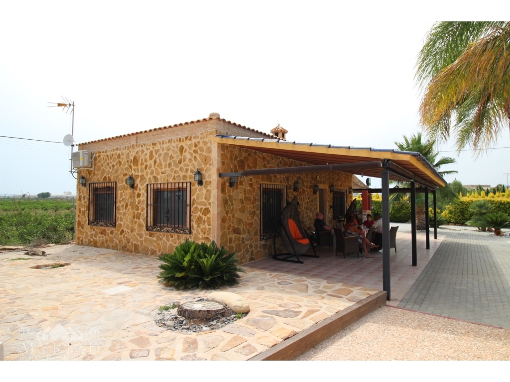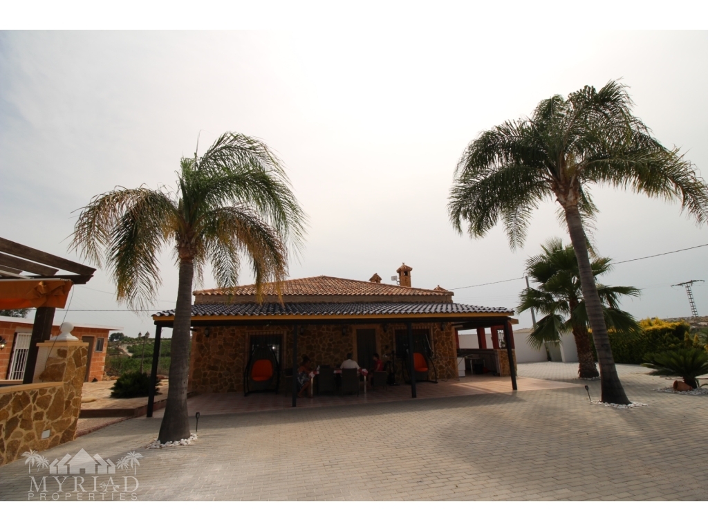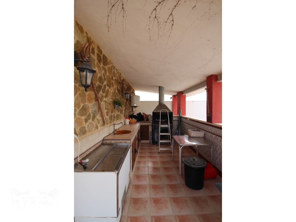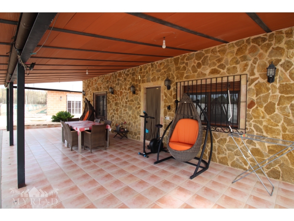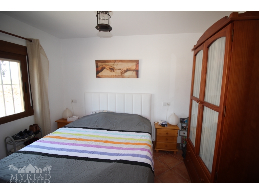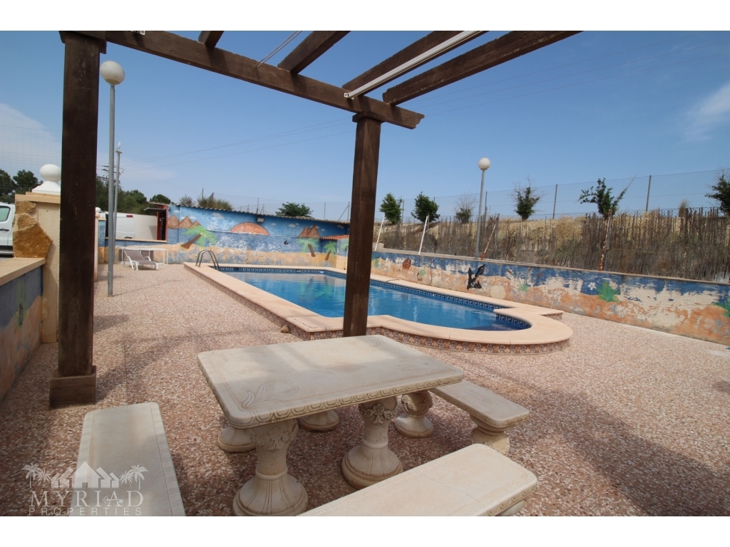 This nice villa is located in a quiet area less than 10 minutes from the city of Fortuna and all amenities. The main house consists of a living room with open kitchen, two bedrooms and a bathroom. On the side is a smaller independent building with an additional bedroom and bathroom. A spacious covered terrace opens directly onto the outside and the large 10x5 pool. There is also a garage and a barbecue area. It has all modern comforts: water, electricity, internet, air conditioning in the living room, pellet stove, electric gate. It will be sold furnished. At 45 minutes from Alciante airport and the beaches, and about twenty minutes from the superb city of Murcia.