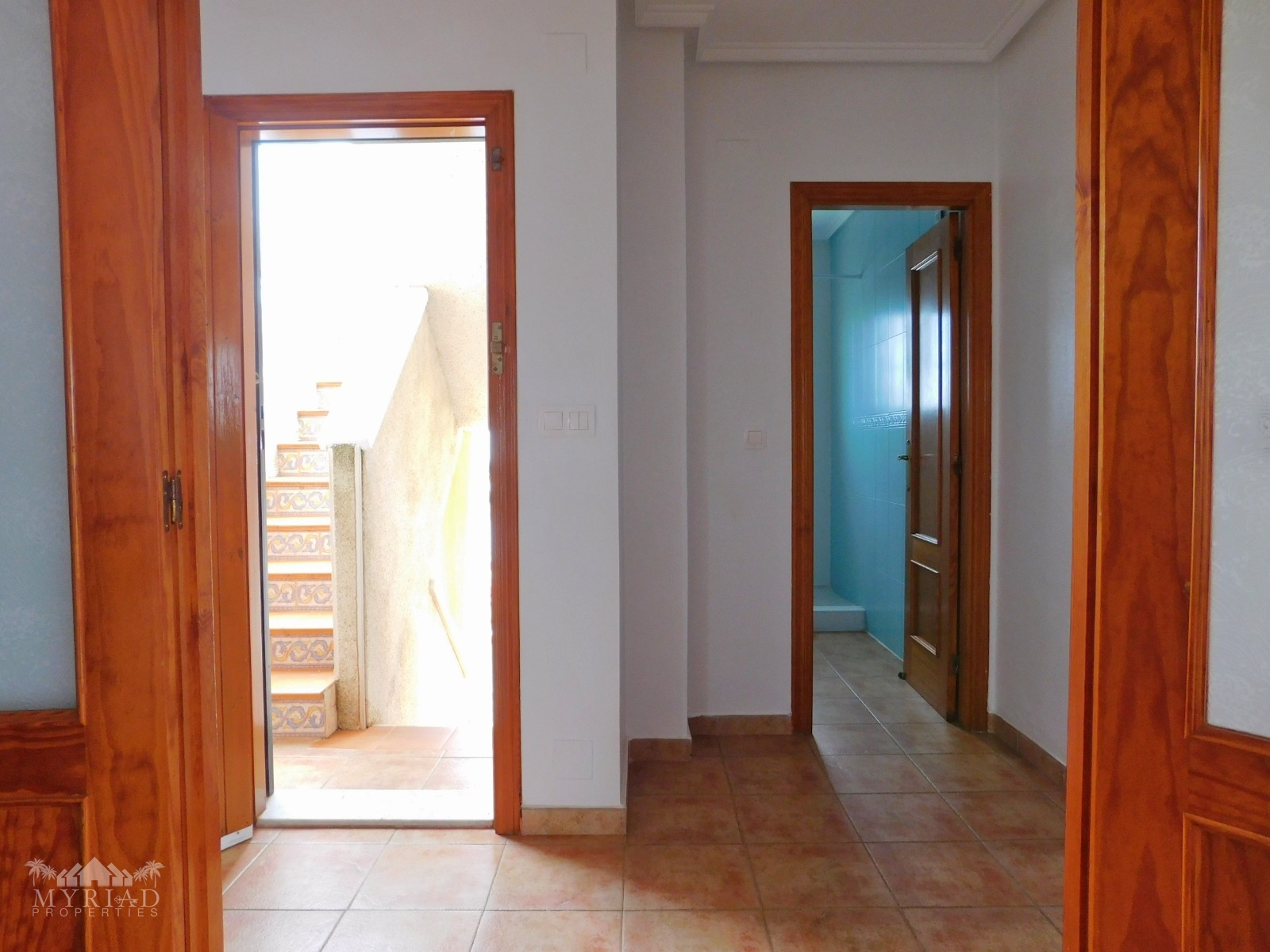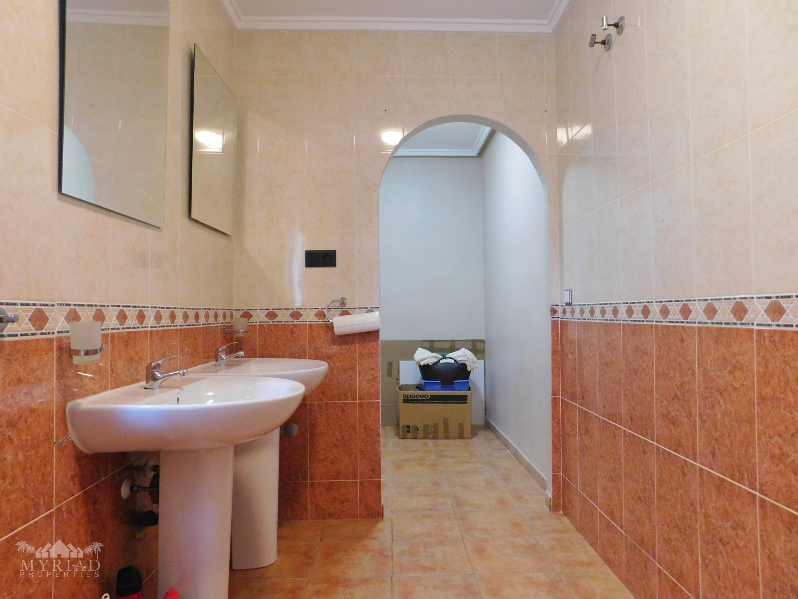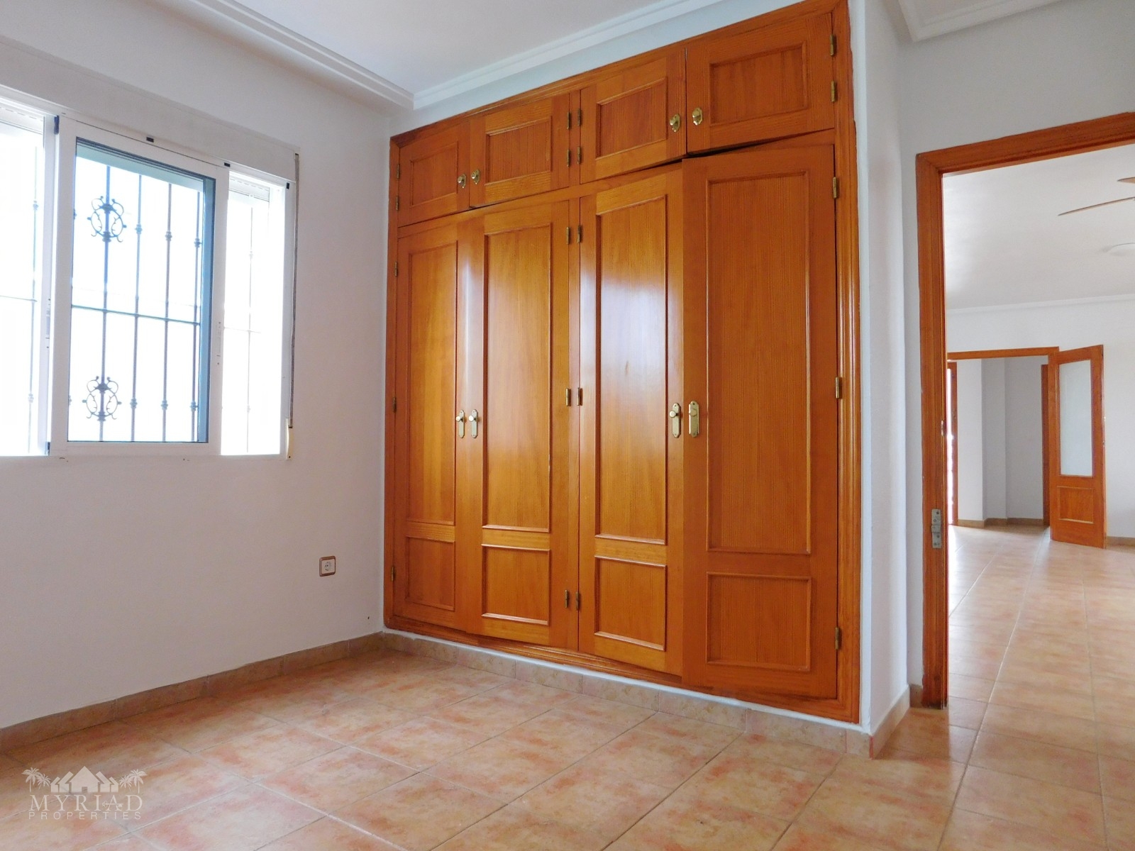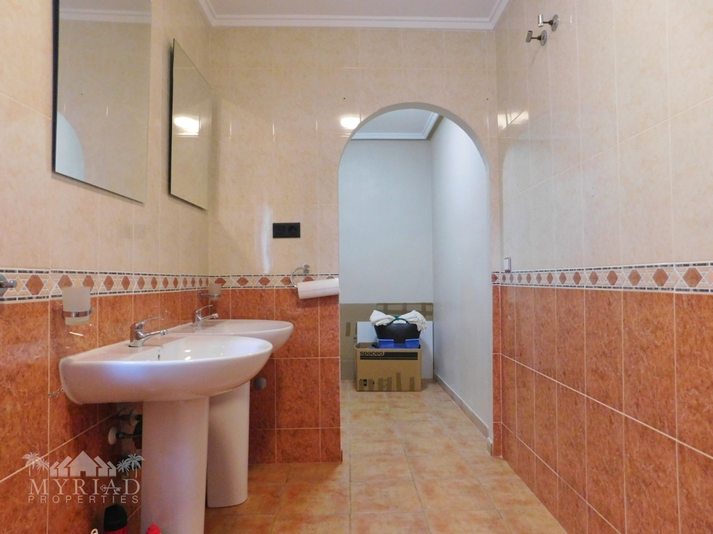 As you enter the under build you have, two bedrooms and a separate bathroom, one bedroom with a private balcony, both with fitted wardrobes. At the far end there is a closed off entrance to another large bedroom with “en suite” bathroom with views of the pool.