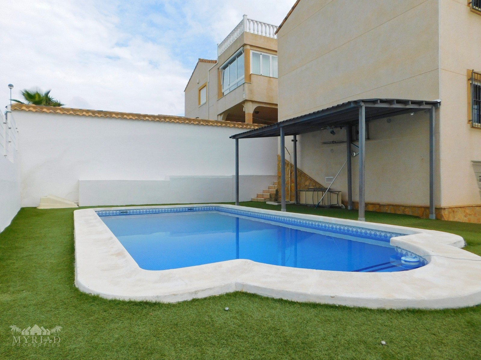 The garden is easy to maintain having mature potted plants and artificial grass around the pool. Walking distance to the bar on the urbanization and easy access to surrounding villages for many amenities makes this villa the one to view. Surrounded by countryside.