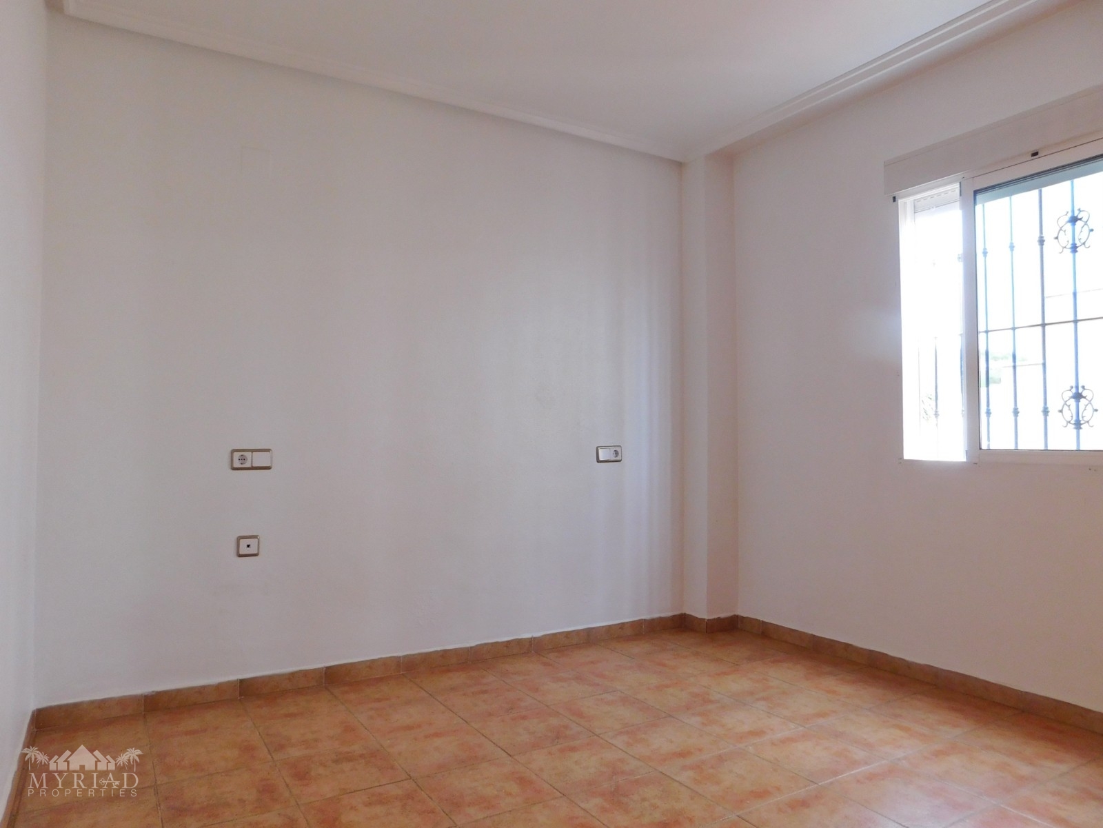 A brief description of the property: you enter the front terrace into the large living-dining room that leads to two double sized bedrooms with built in wardrobes to the left, while the opposite side leads to the independent kitchen being fully equipped and a bathroom. At the rear off from the living room, you have direct access to either the garden and under build or the roof solarium. The roof solarium offers great panoramic views of the Spanish countryside.