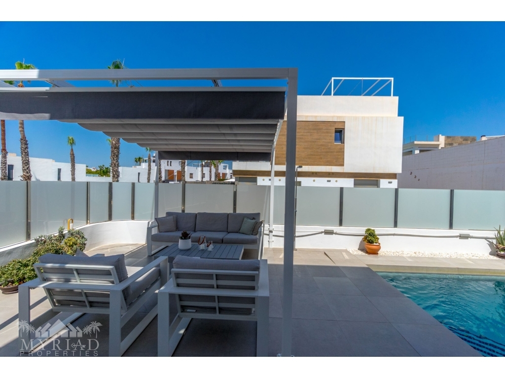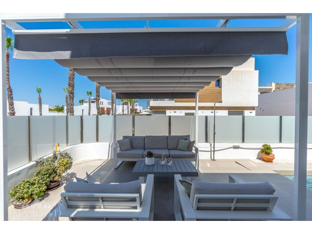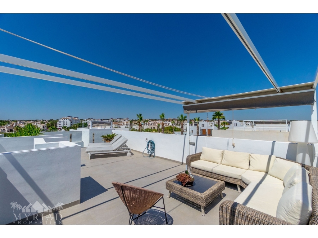 The area is also known for its lively atmosphere with a variety of restaurants, bars, and shops. The famous Villamartín Plaza is a popular meeting point with a wide selection of dining and entertainment options. Large shopping centers like Zenia Boulevard are also nearby. The beautiful beaches along Orihuela Costa, including "Blue Flag" beaches such as La Zenia, Playa Flamenca, and Cabo Roig, are just a short drive away.