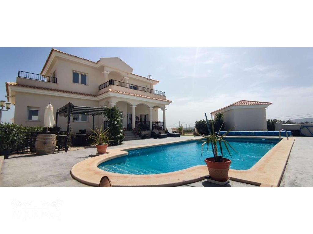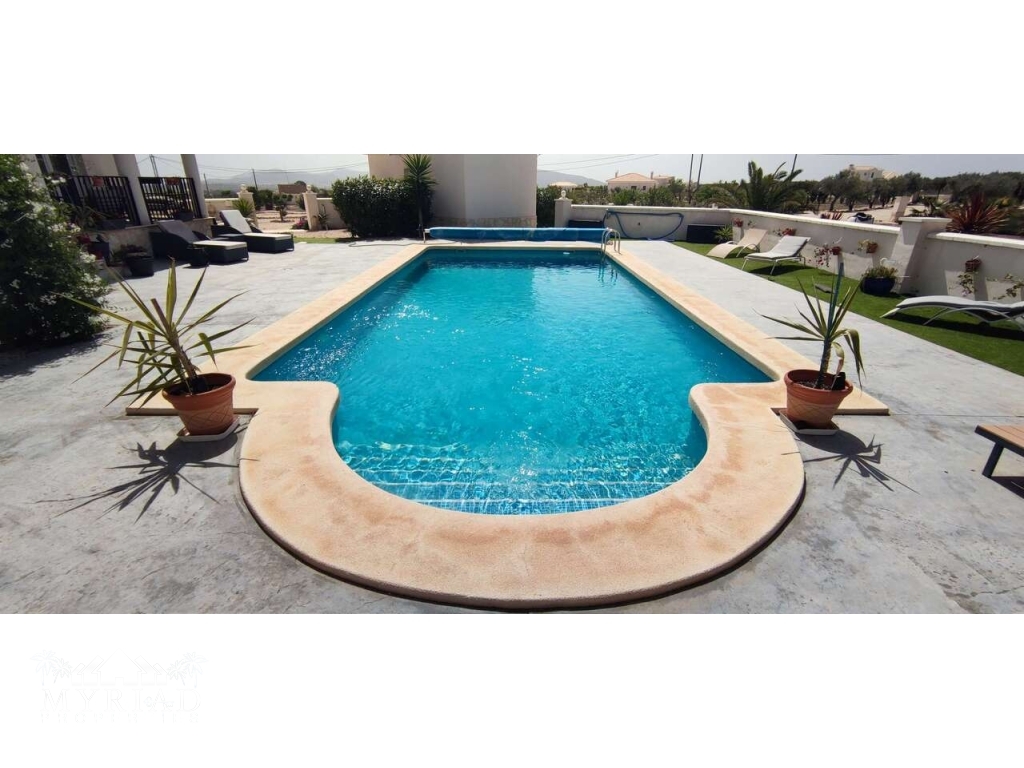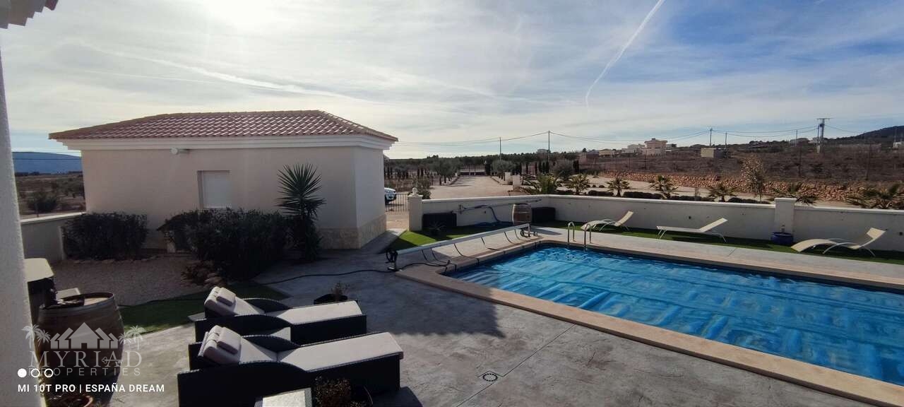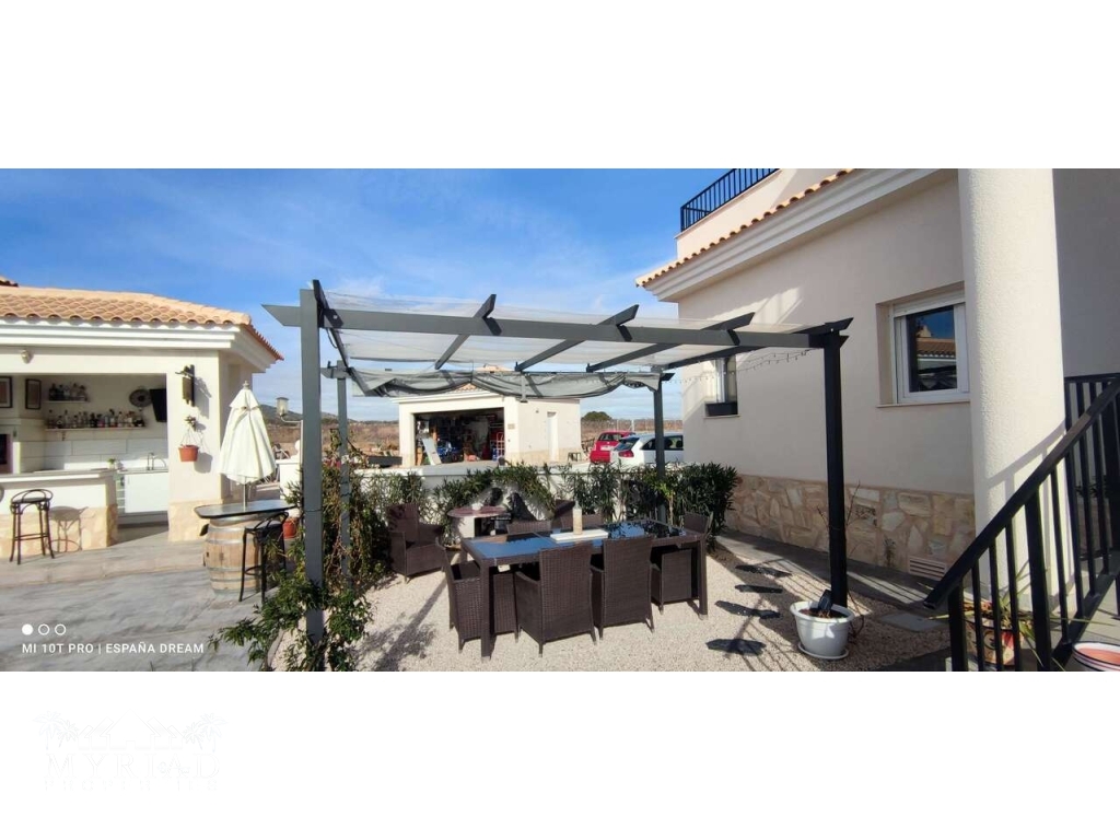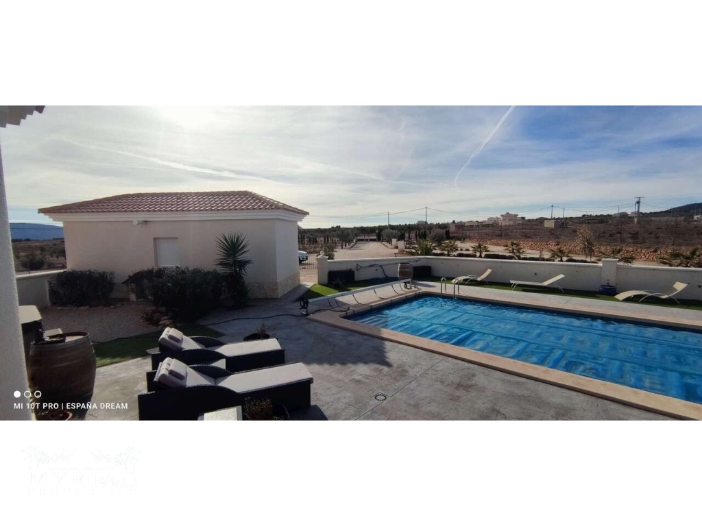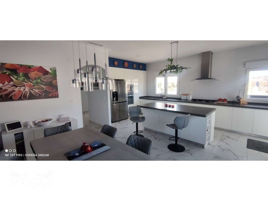 Welcome to your dream home in the heart of sunny Spain! Nestled in the picturesque landscape of the south of Spain, this stunning 5-year-old villa is a testament to traditional elegance with a modern twist. Boasting a spacious 180m2 layout, this south-facing beauty is designed to captivate and provide the ultimate comfort for those seeking a luxurious Mediterranean lifestyle.As you step into this exquisite property, you'll immediately notice the attention to detail and the high-quality finishes that adorn each room. With 4 bedrooms and 5 bathrooms, including a master bedroom with a walk-in wardrobe and en-suite, every inch of this home has been thoughtfully crafted for your comfort and convenience.The heart of this villa is the large kitchen diner, perfect for entertaining friends and family. The modern design seamlessly blends with the traditional style, creating a warm and inviting atmosphere. Picture yourself enjoying a cozy evening by the log burner, creating cherished memories with loved ones.The property features oil central heating, ensuring year-round comfort, and for those who enjoy culinary delights, a double garage, and a summer kitchen/bar with a built-in BBQ beckon for delightful gatherings & dining alfresco under the stars. The spacious walled-in 10x5m private pool invites you to relax and unwind, surrounded by a beautifully landscaped garden that adds a touch of nature to your outdoor space.Additional features include a charming 30m2 Casita, providing extra space for guests or personal use. With a vast plot size of 10,468m2, to which 3,500m2 is fenced-in, privacy is guaranteed, making it an ideal haven for your family.Conveniently located just 7km from the heart of Pinoso town, you'll enjoy the tranquility of rural living while having easy access to amenities. And if you have future plans in mind, there's still 32m2 available for you to customize and build to suit your preferences.Don't miss the opportunity to make this your forever home – a perfect blend of modern luxury and traditional charm. Contact us today to schedule a viewing and embark on the journey to your new life in the sun-drenched paradise of southern Spain!