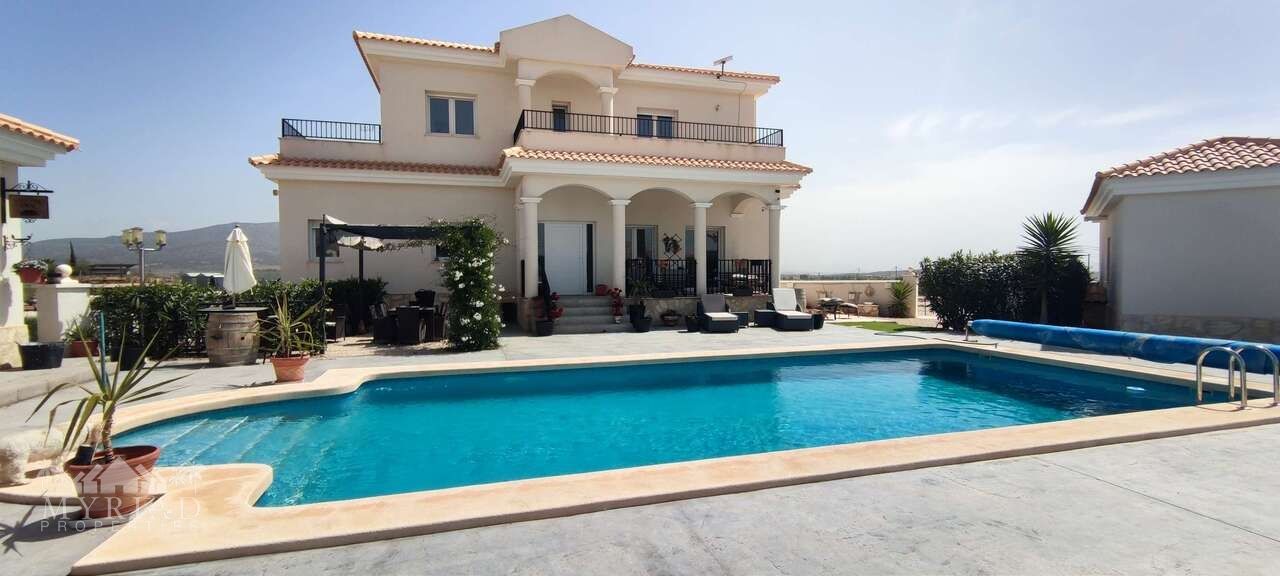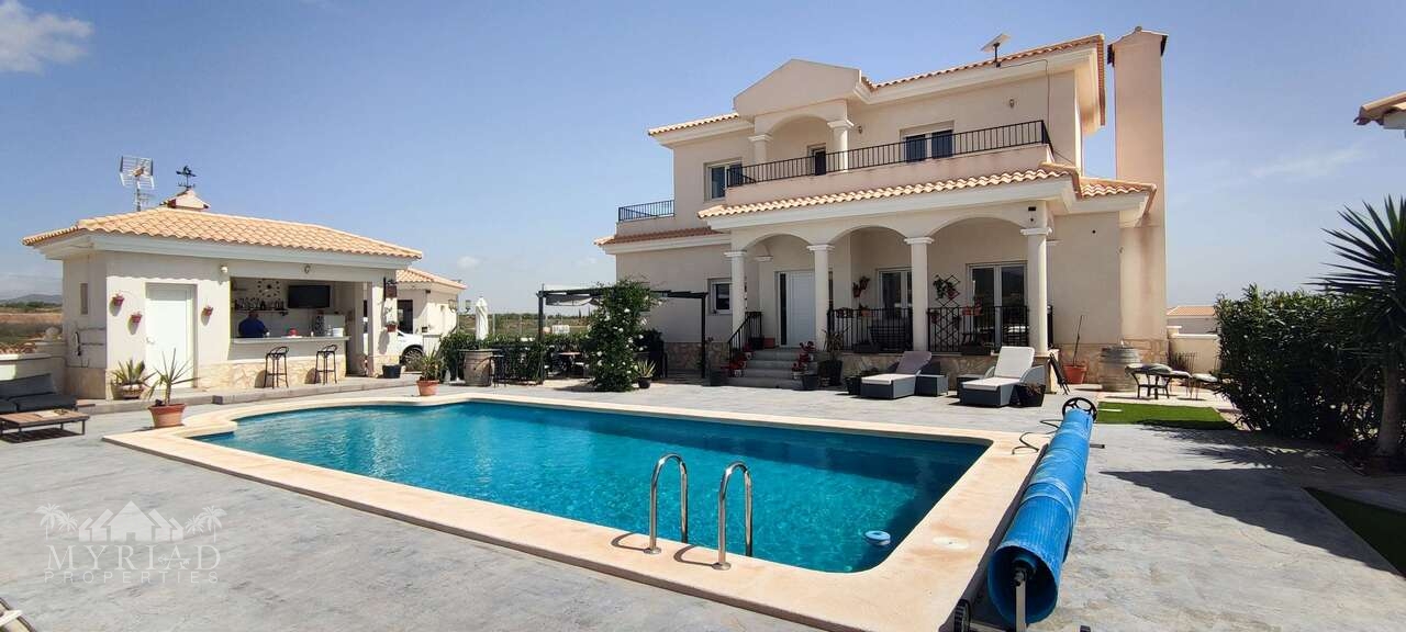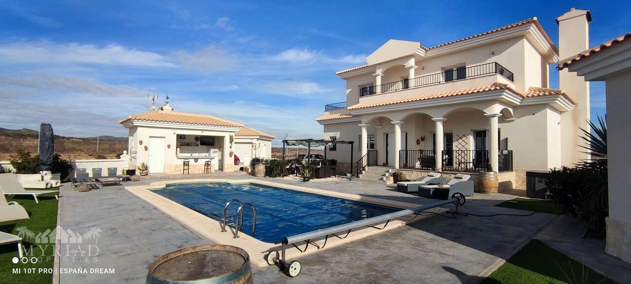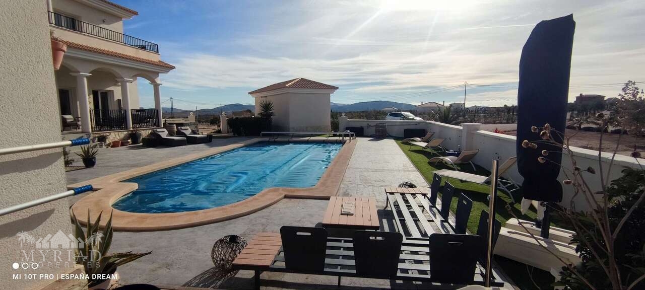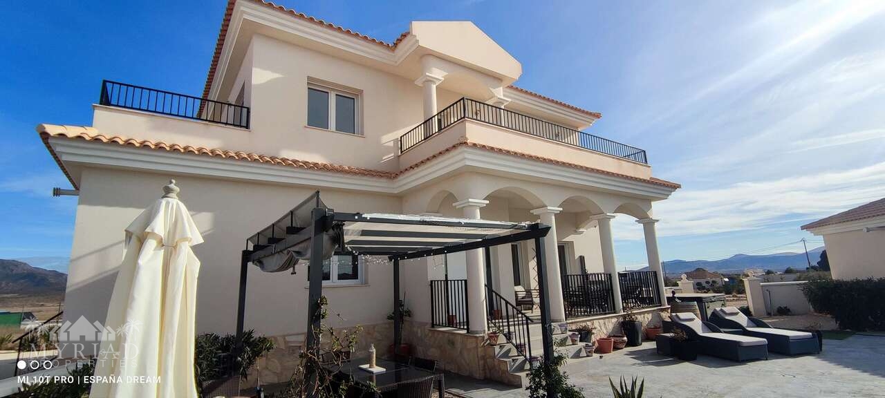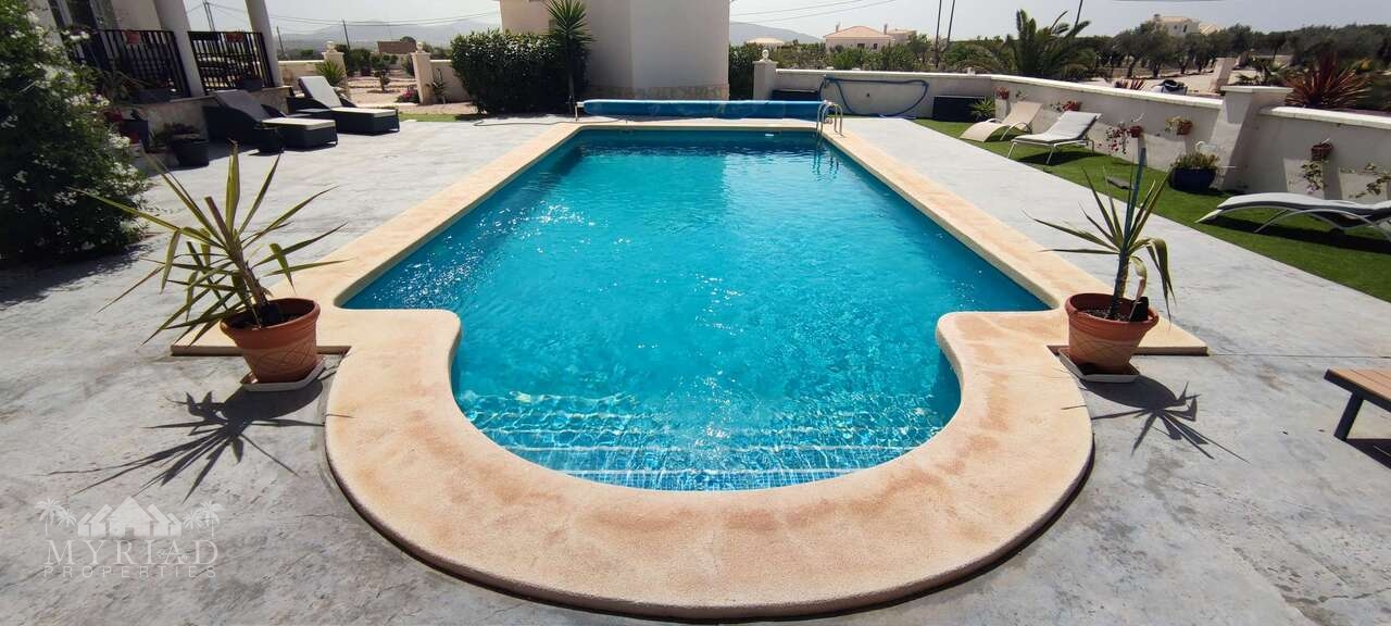 Welcome to your dream home in the heart of sunny Spain! Nestled in the picturesque landscape of the south of Spain, this stunning 5-year-old villa is a testament to traditional elegance with a modern twist. Boasting a spacious 180m2 layout, this south-facing beauty is designed to captivate and provide the ultimate comfort for those seeking a luxurious Mediterranean lifestyle.As you step into this exquisite property, you'll immediately notice the attention to detail and the high-quality finishes that adorn each room. With 4 bedrooms and 5 bathrooms, including a master bedroom with a walk-in wardrobe and en-suite, every inch of this home has been thoughtfully crafted for your comfort and convenience.The heart of this villa is the large kitchen diner, perfect for entertaining friends and family. The modern design seamlessly blends with the traditional style, creating a warm and inviting atmosphere. Picture yourself enjoying a cozy evening by the log burner, creating cherished memories with loved ones.The property features oil central heating, ensuring year-round comfort, and for those who enjoy culinary delights, a double garage, and a summer kitchen/bar with a built-in BBQ beckon for delightful gatherings & dining alfresco under the stars. The spacious walled-in 10x5m private pool invites you to relax and unwind, surrounded by a beautifully landscaped garden that adds a touch of nature to your outdoor space.Additional features include a charming 30m2 Casita, providing extra space for guests or personal use. With a vast plot size of 10,468m2, to which 3,500m2 is fenced-in, privacy is guaranteed, making it an ideal haven for your family.Conveniently located just 7km from the heart of Pinoso town, you'll enjoy the tranquility of rural living while having easy access to amenities. And if you have future plans in mind, there's still 32m2 available for you to customize and build to suit your preferences.Don't miss the opportunity to make this your forever home – a perfect blend of modern luxury and traditional charm. Contact us today to schedule a viewing and embark on the journey to your new life in the sun-drenched paradise of southern Spain!