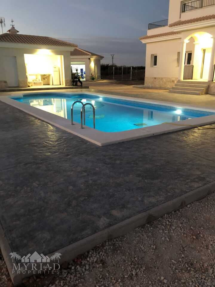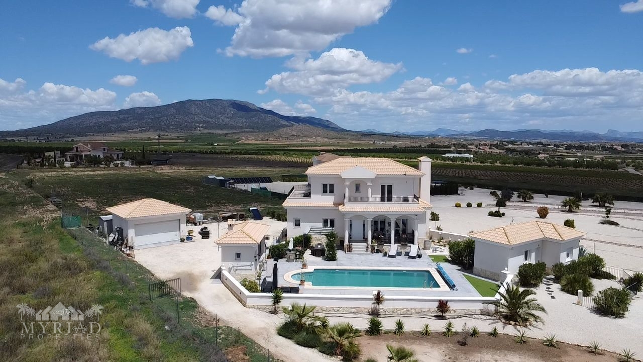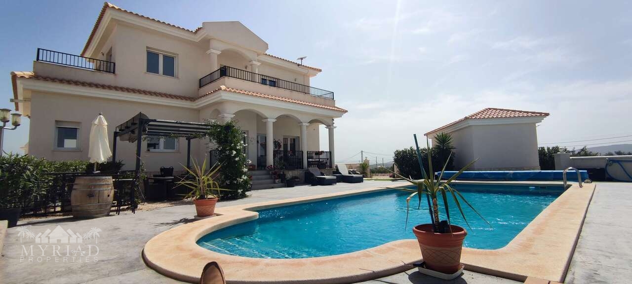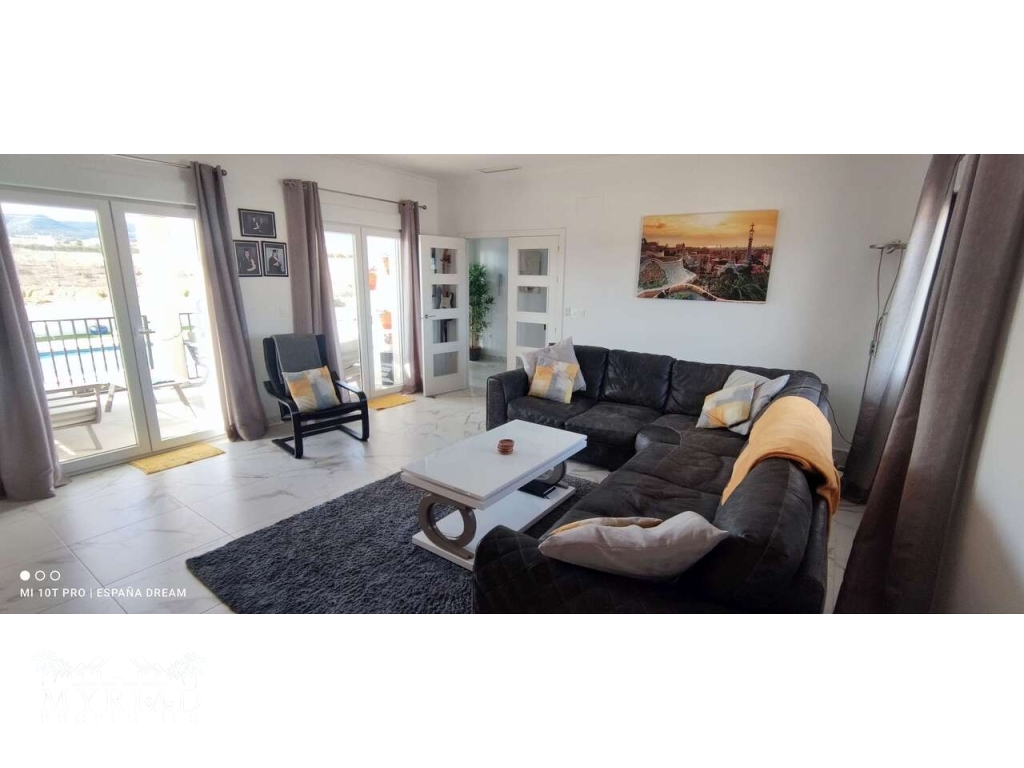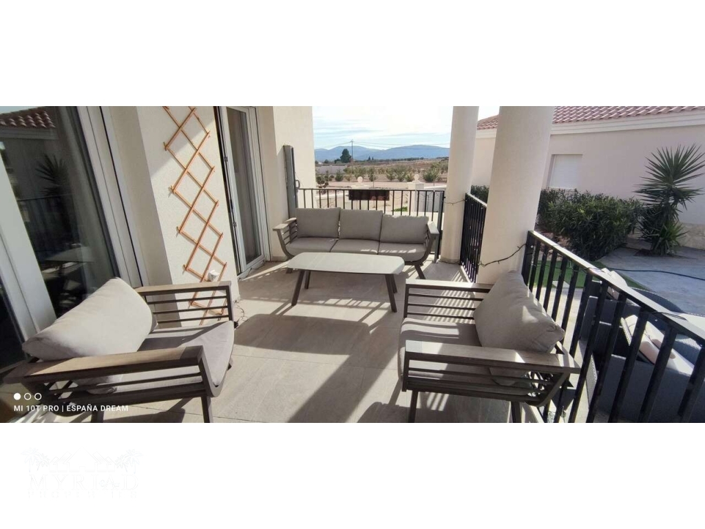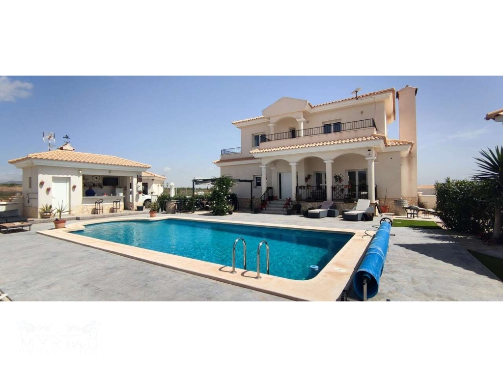Welcome to your dream home in the heart of sunny Spain! Nestled in the picturesque landscape of the south of Spain, this stunning 5-year-old villa is a testament to traditional elegance with a modern twist. Boasting a spacious 180m2 layout, this south-facing beauty is designed to captivate and provide the ultimate comfort for those seeking a luxurious Mediterranean lifestyle.As you step into this exquisite property, you'll immediately notice the attention to detail and the high-quality finishes that adorn each room. With 4 bedrooms and 5 bathrooms, including a master bedroom with a walk-in wardrobe and en-suite, every inch of this home has been thoughtfully crafted for your comfort and convenience.The heart of this villa is the large kitchen diner, perfect for entertaining friends and family. The modern design seamlessly blends with the traditional style, creating a warm and inviting atmosphere. Picture yourself enjoying a cozy evening by the log burner, creating cherished memories with loved ones.The property features oil central heating, ensuring year-round comfort, and for those who enjoy culinary delights, a double garage, and a summer kitchen/bar with a built-in BBQ beckon for delightful gatherings & dining alfresco under the stars. The spacious walled-in 10x5m private pool invites you to relax and unwind, surrounded by a beautifully landscaped garden that adds a touch of nature to your outdoor space.Additional features include a charming 30m2 Casita, providing extra space for guests or personal use. With a vast plot size of 10,468m2, to which 3,500m2 is fenced-in, privacy is guaranteed, making it an ideal haven for your family.Conveniently located just 7km from the heart of Pinoso town, you'll enjoy the tranquility of rural living while having easy access to amenities. And if you have future plans in mind, there's still 32m2 available for you to customize and build to suit your preferences.Don't miss the opportunity to make this your forever home – a perfect blend of modern luxury and traditional charm. Contact us today to schedule a viewing and embark on the journey to your new life in the sun-drenched paradise of southern Spain!