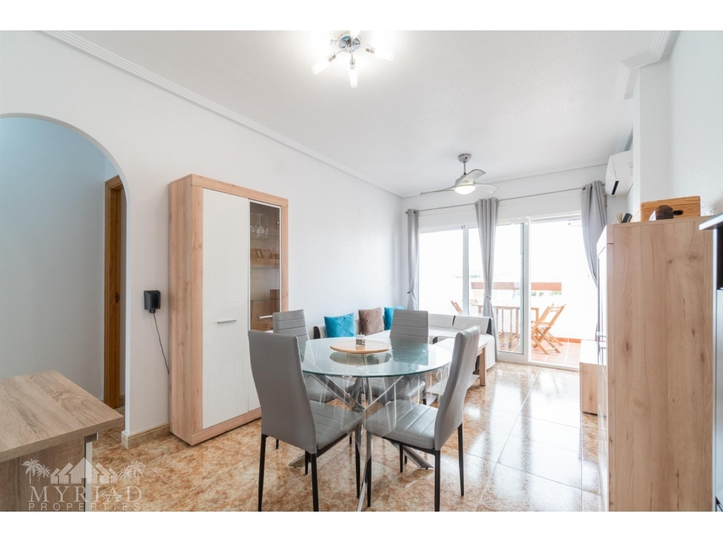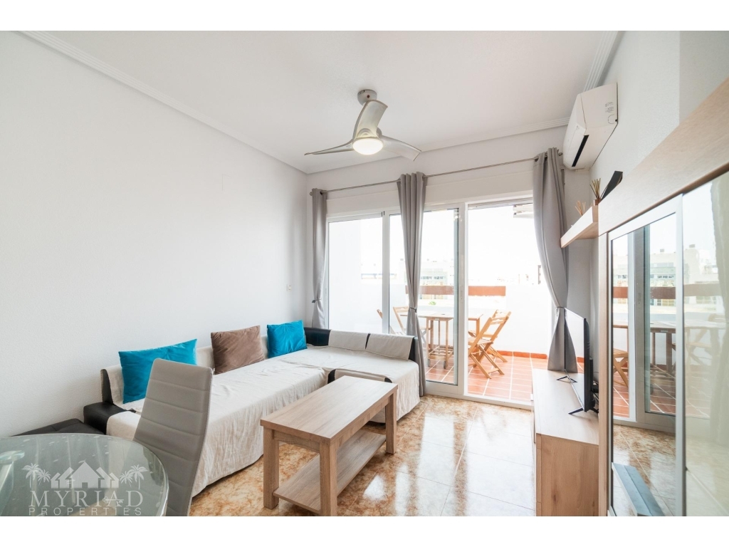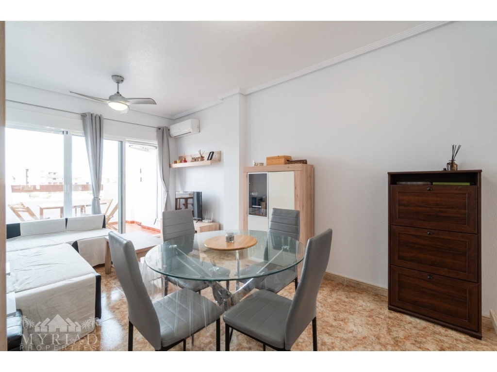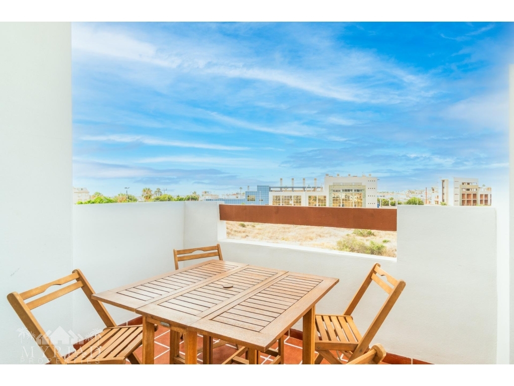 Discover the charm of this spectacular penthouse located in the coveted area of ​​Punta Prima, Orihuela Costa. Close to shops, restaurants, and supermarkets, this ready-to-move-in property comes furnished and offers a constructed area of ​​62 square meters. Enjoy the sun all day long thanks to its south-facing orientation and relax on your own private solarium while admiring unobstructed views of the sea.~~This cozy home features two bedrooms, perfect for relaxing after a long day; it also includes two full bathrooms (one en-suite), ensuring comfort for both you and your guests. Excellent extras include private parking in a communal underground garage and access to a communal pool where you can enjoy warm days.~~Located just 600 meters from the Mediterranean Sea, you'll have the best of the beach at your fingertips. The proximity also gives you easy access to local shopping centers, schools, and medical facilities, further enhancing your quality of daily life, not to mention the family-friendly children's play areas.~~Don't miss the unique opportunity this magnificent penthouse represents; come and fall in love today!
