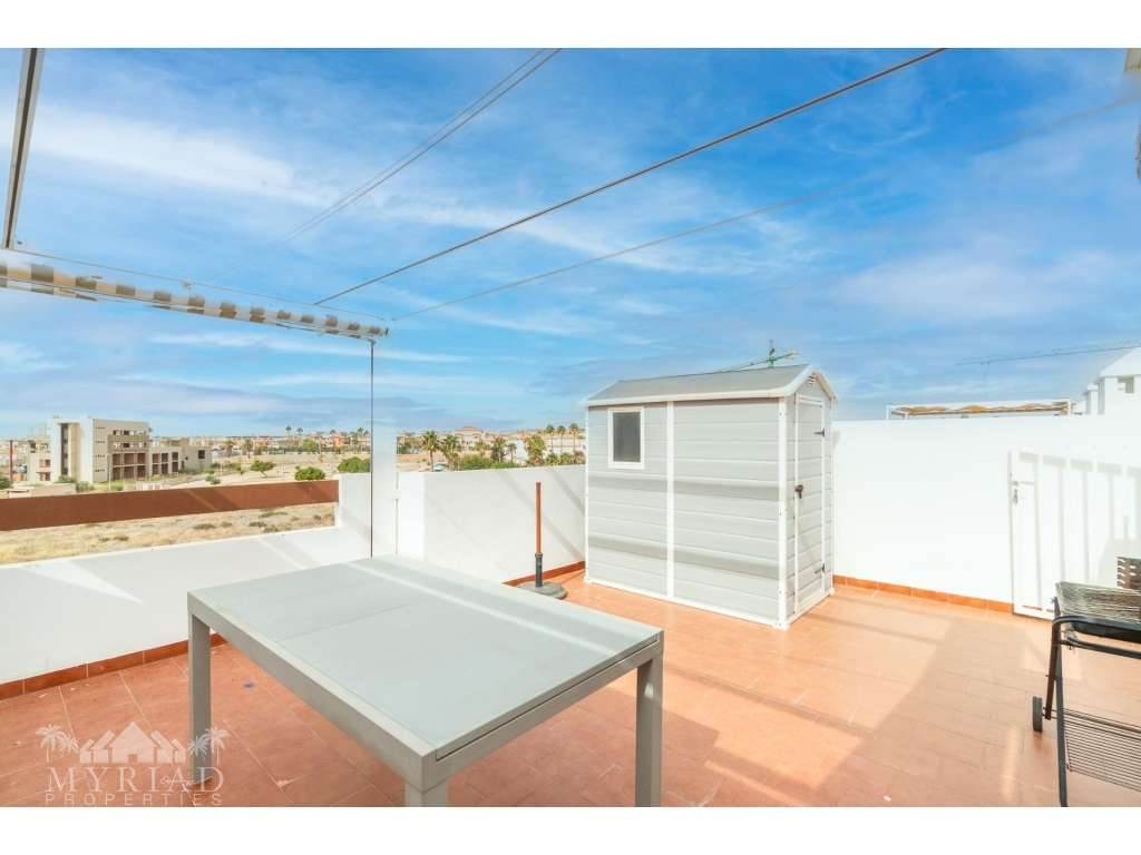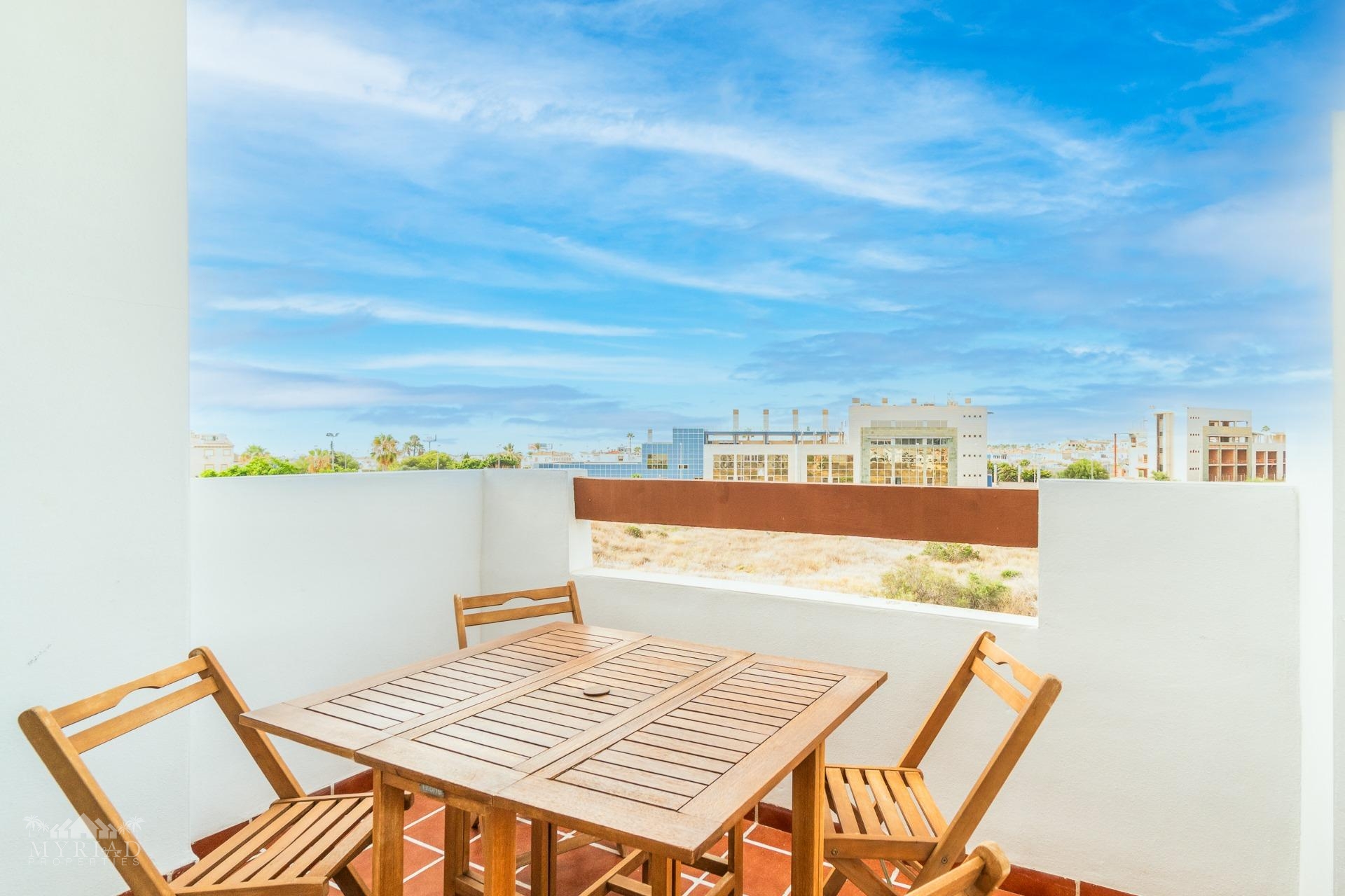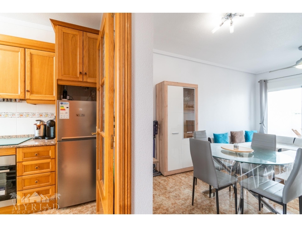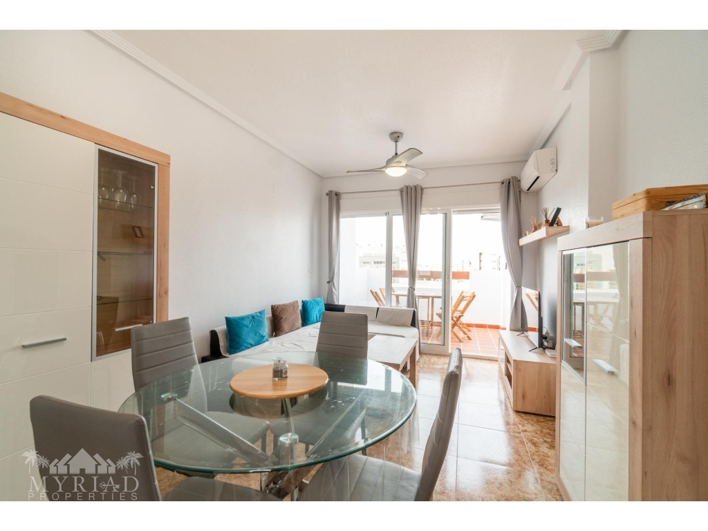 Discover the charm of this spectacular penthouse located in the coveted area of ​​Punta Prima, Orihuela Costa. Close to shops, restaurants, and supermarkets, this ready-to-move-in property comes furnished and offers a constructed area of ​​62 square meters. Enjoy the sun all day long thanks to its south-facing orientation and relax on your own private solarium while admiring unobstructed views of the sea.~~This cozy home features two bedrooms, perfect for relaxing after a long day; it also includes two full bathrooms (one en-suite), ensuring comfort for both you and your guests. Excellent extras include private parking in a communal underground garage and access to a communal pool where you can enjoy warm days.~~Located just 600 meters from the Mediterranean Sea, you'll have the best of the beach at your fingertips. The proximity also gives you easy access to local shopping centers, schools, and medical facilities, further enhancing your quality of daily life, not to mention the family-friendly children's play areas.~~Don't miss the unique opportunity this magnificent penthouse represents; come and fall in love today!