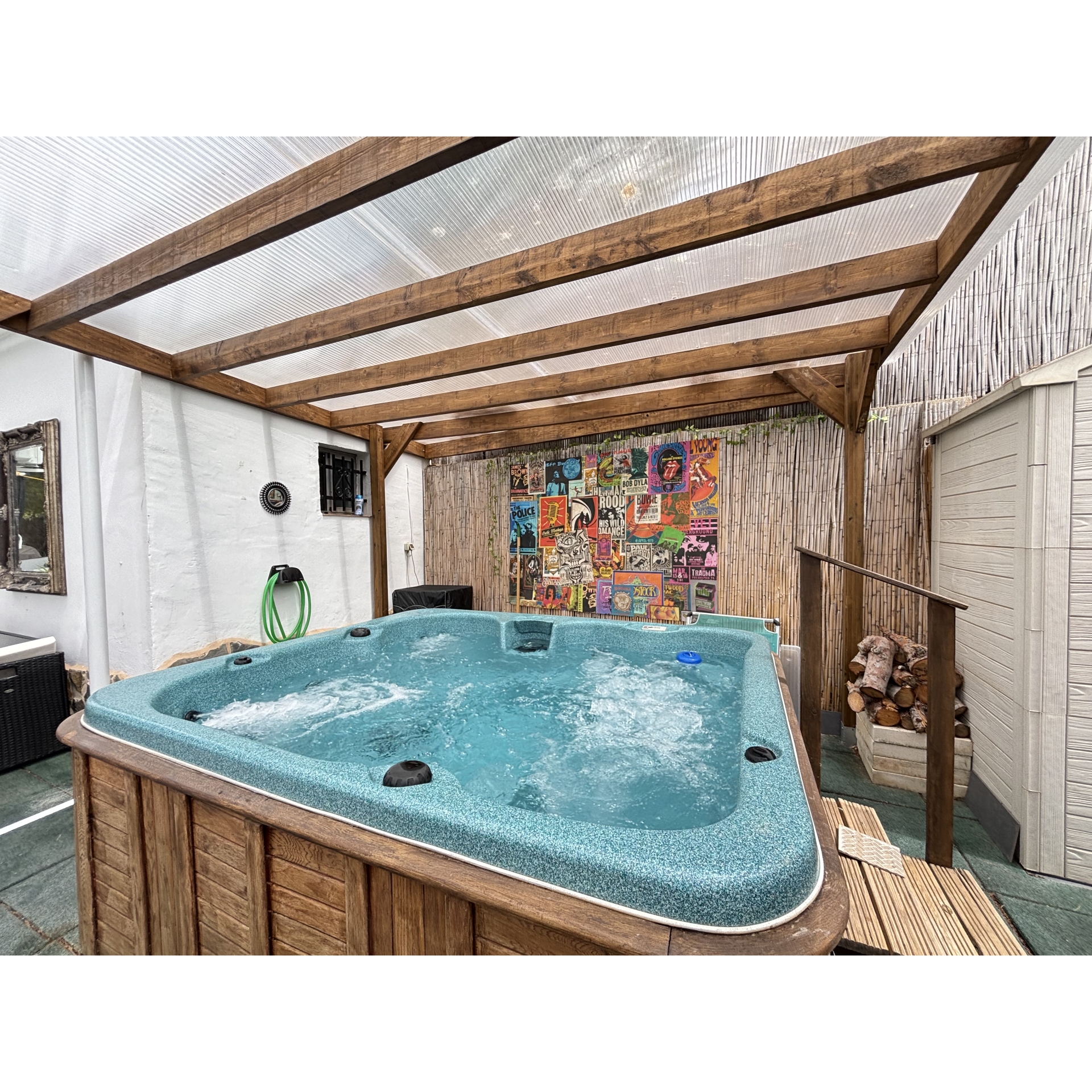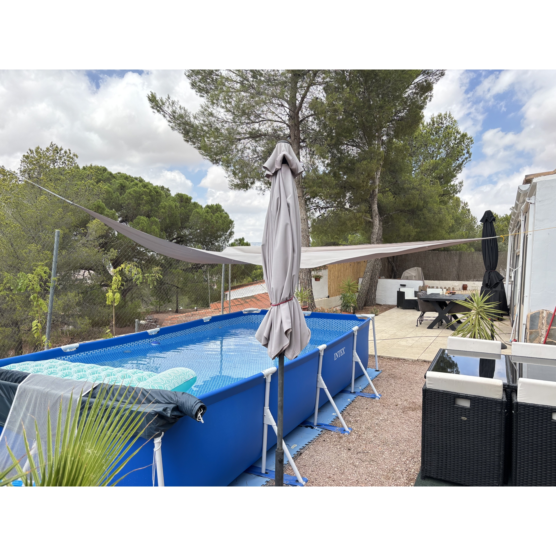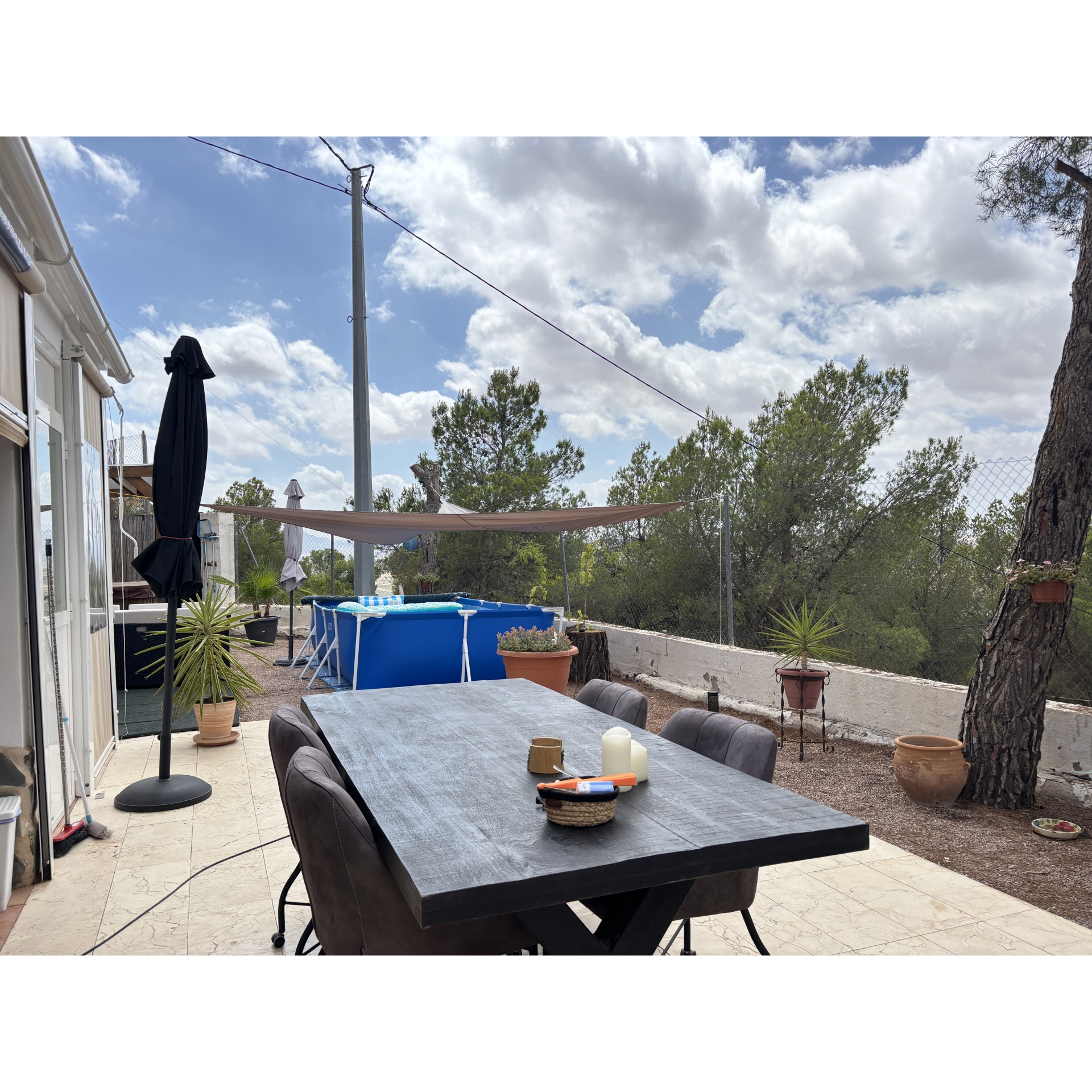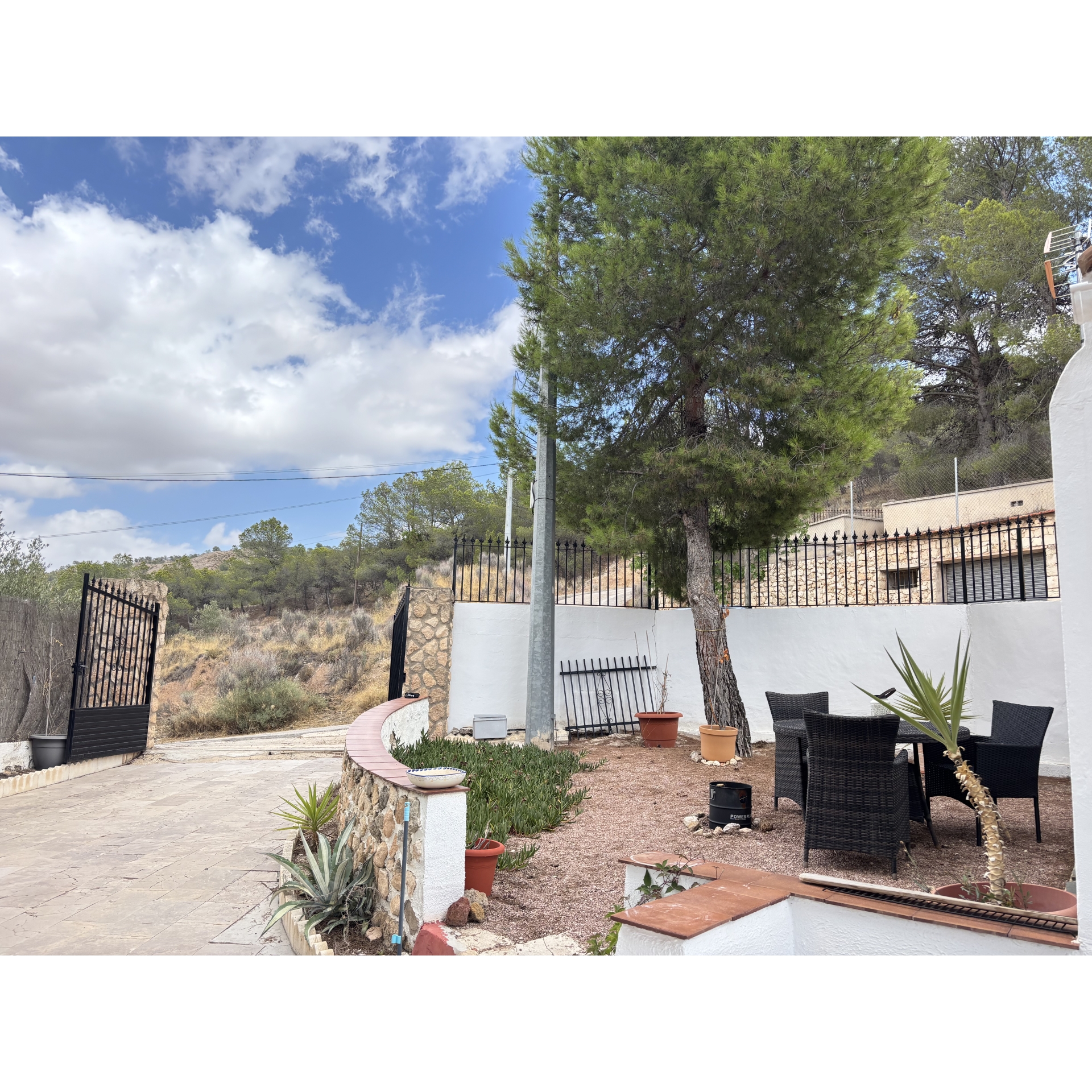 The grounds have been thoughtfully designed to maximise both the space and the stunning location. A series of beautifully arranged terraces offer a variety of atmospheres throughout the day—from sun-drenched spots ideal for relaxing in the Mediterranean climate, to shaded corners providing welcome respite during the warmer months. A charming covered chill-out area houses a private jacuzzi, creating the perfect setting to unwind in complete tranquillity all year round. In addition, a well-positioned above-ground swimming pool allows you to cool off while soaking in the incredible views and peaceful surroundings.