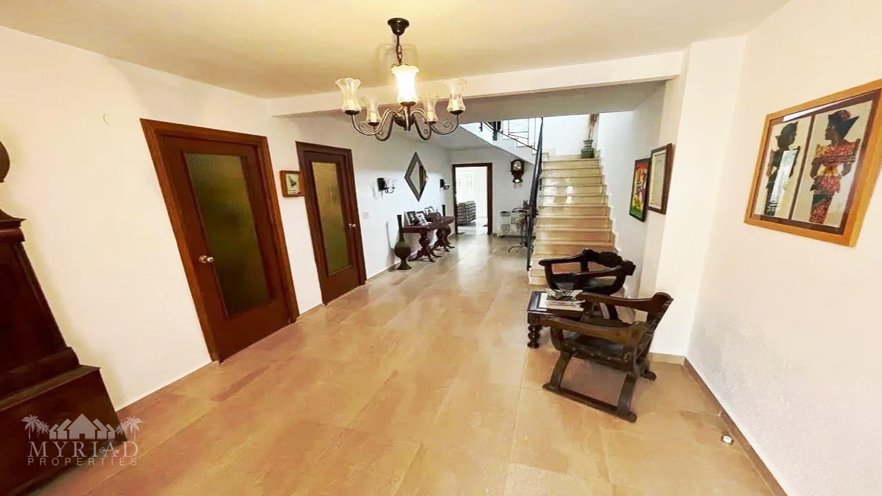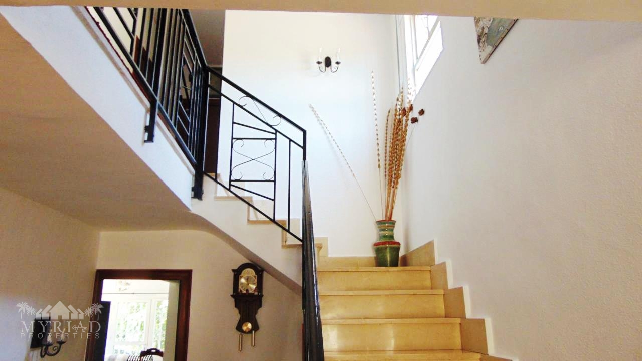 Upon entering, you are greeted by an impressive entrance hall with a marble staircase leading to the upper floor. To the left, there is a fully fitted independent kitchen, and a separate dining room which could easily be converted into a fifth bedroom if desired.