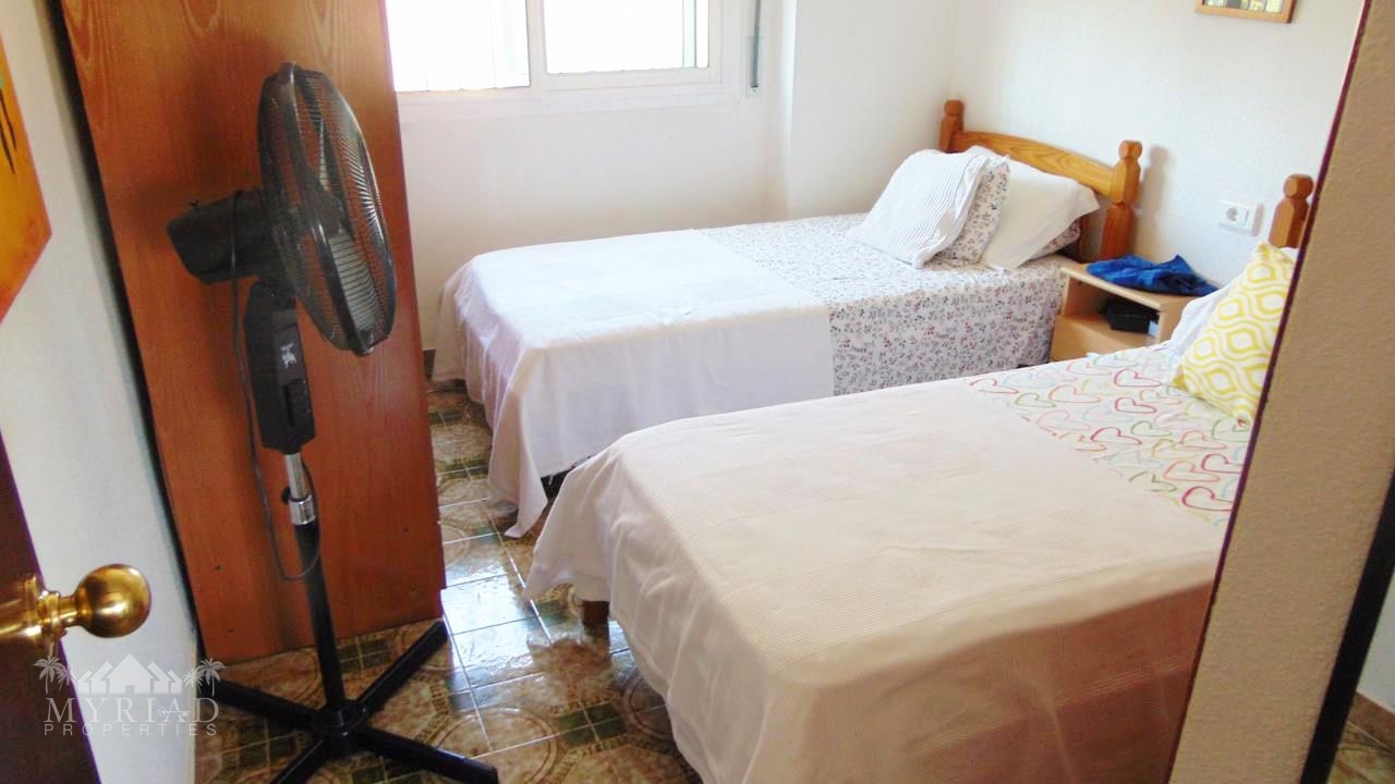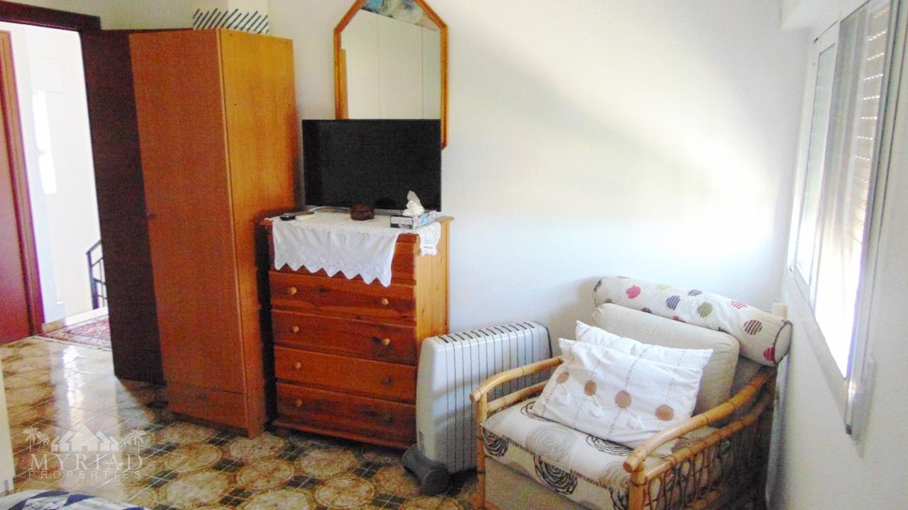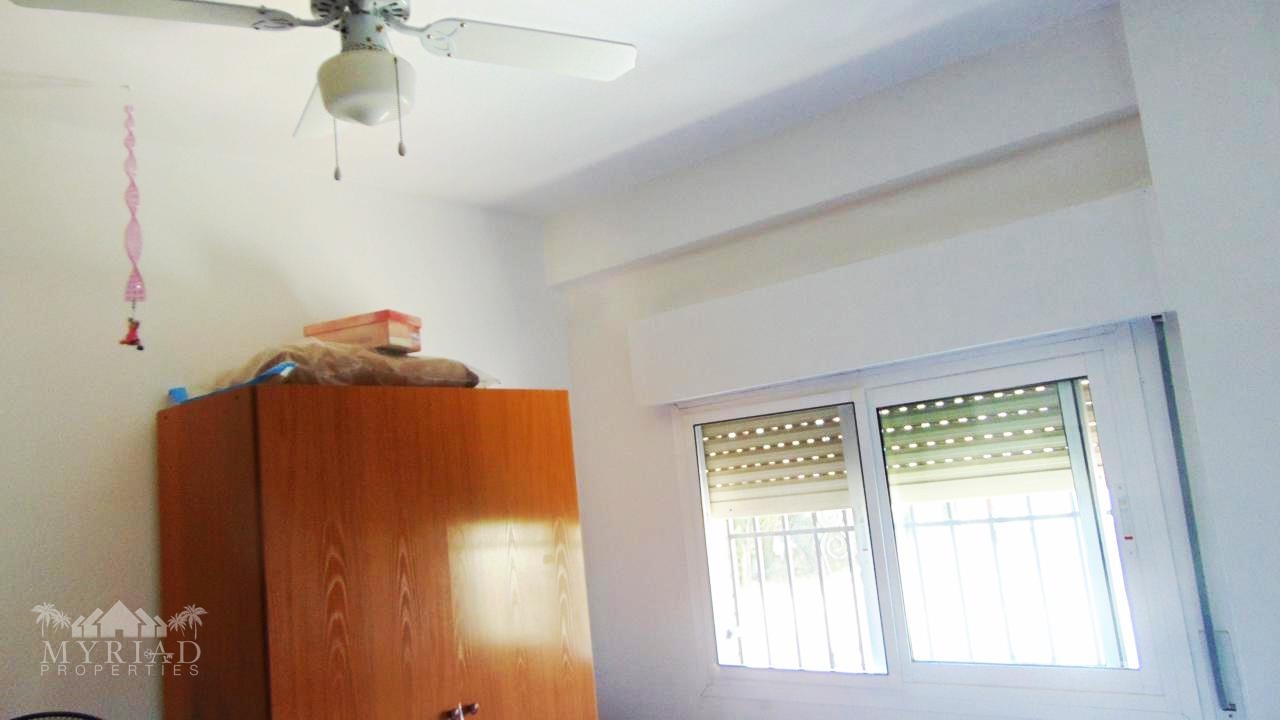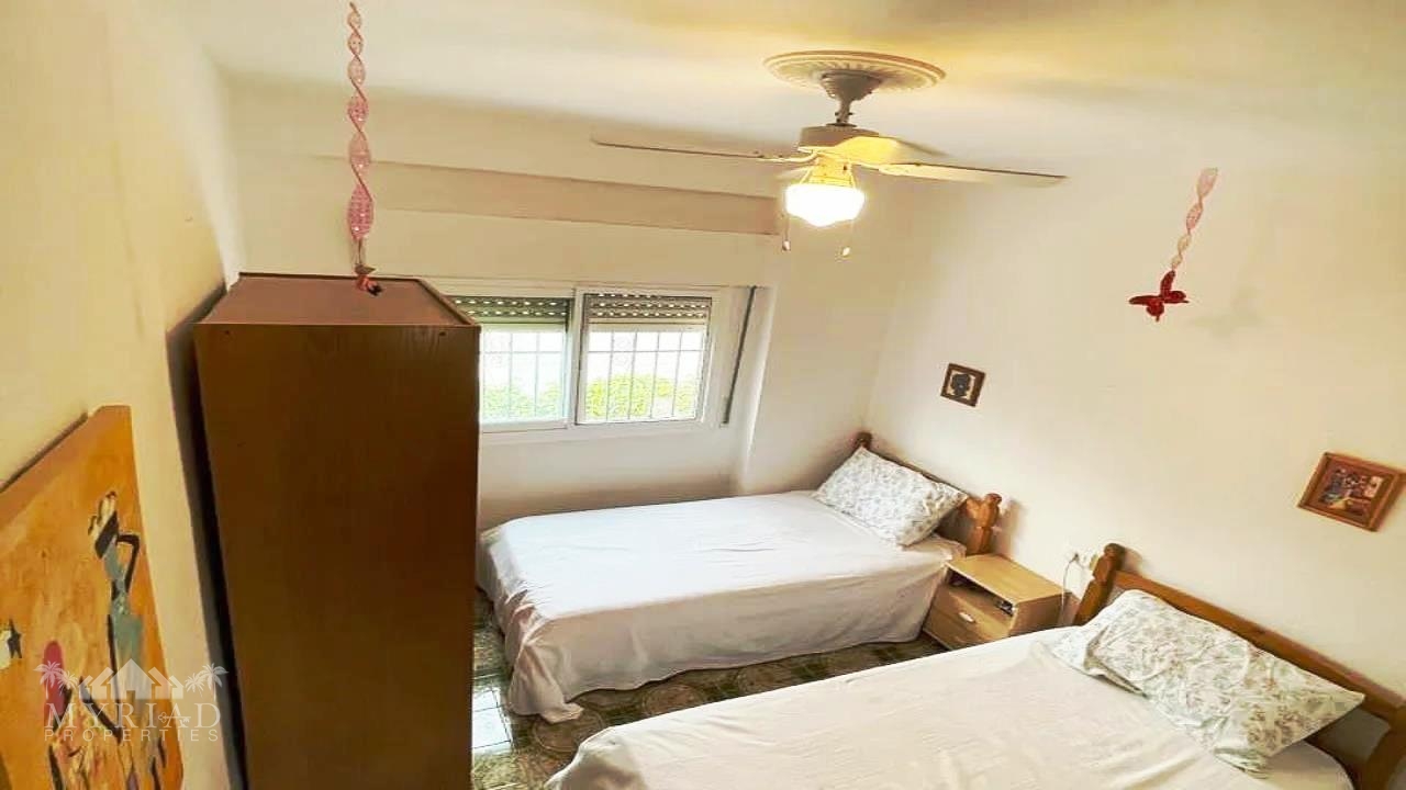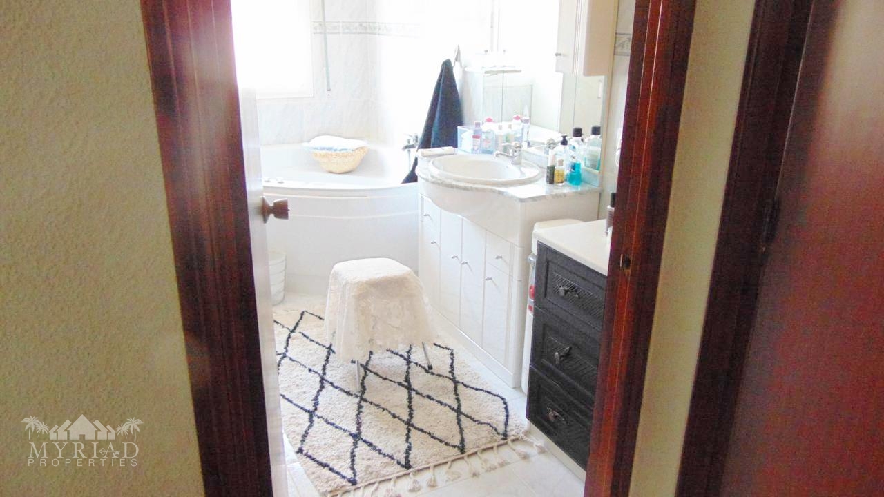 There is also a twin bedroom with fitted wardrobes and ceiling fan, plus another double bedroom with air conditioning and fitted wardrobes. A large family bathroom and an additional smaller bathroom complete this level — the latter could easily be converted into another en-suite if desired.