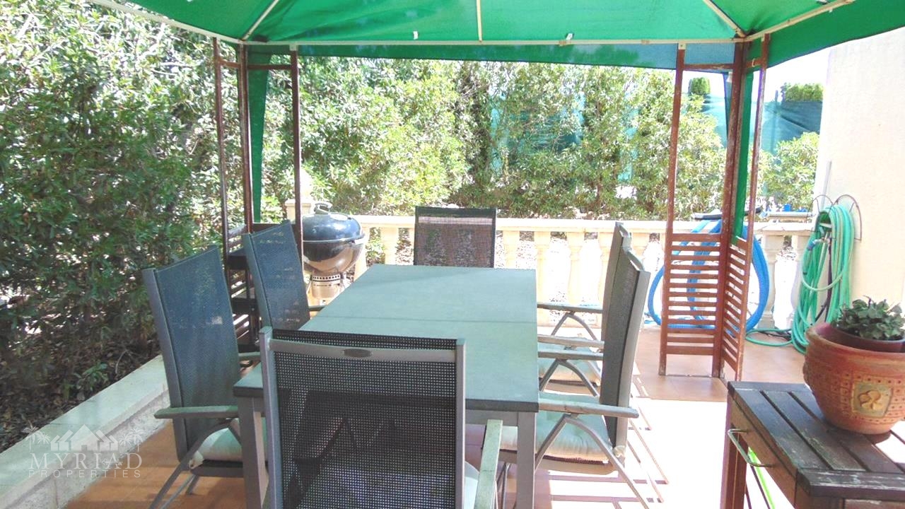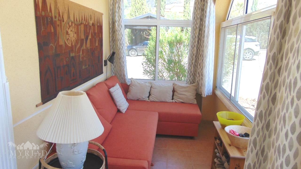 The villa offers two glazed-in terraces, ideal for enjoying the sunshine all year round. The wraparound sun terrace at the front includes a ceiling fan and provides the perfect spot for relaxing or entertaining.