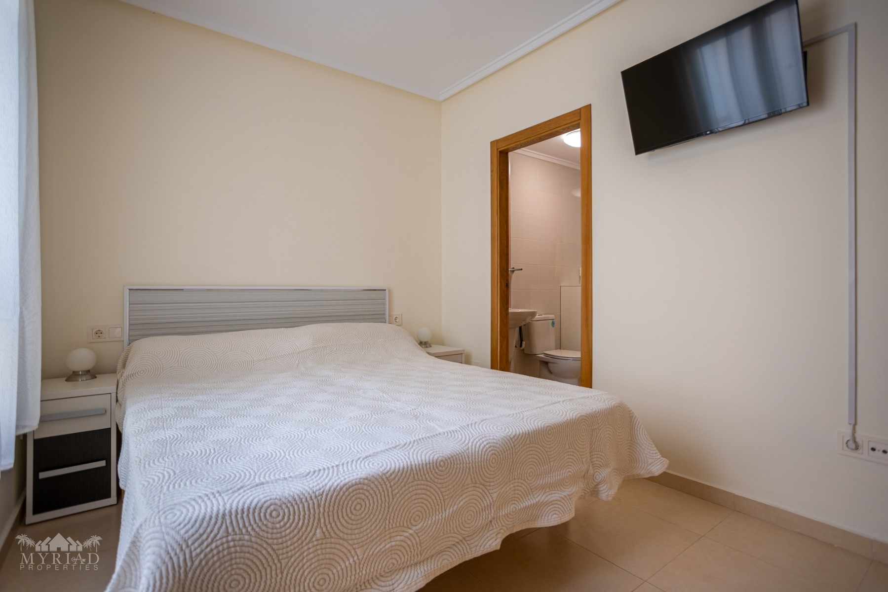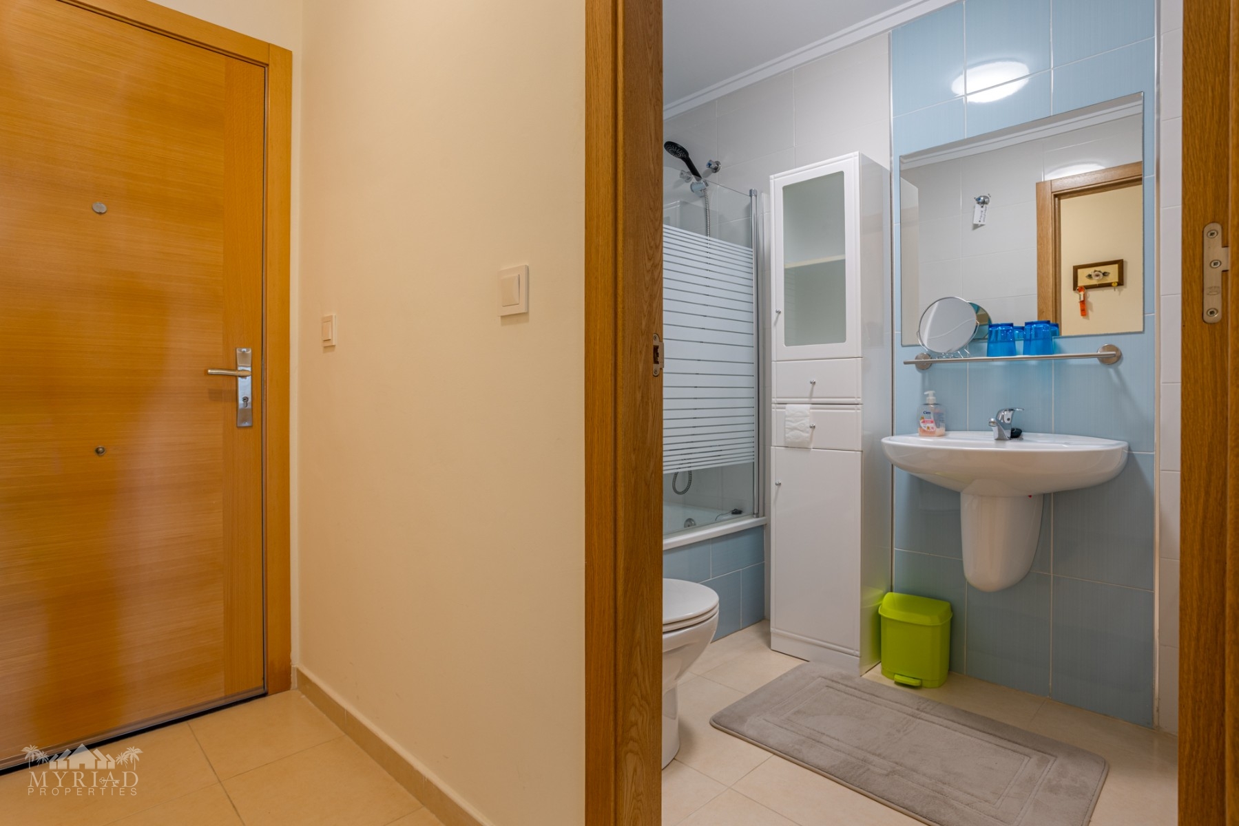 The apartment features two bedrooms with free standing wardrobes, as well as an extra built in wardrobe in the hallway, offering ample storage without sacrificing usable space.