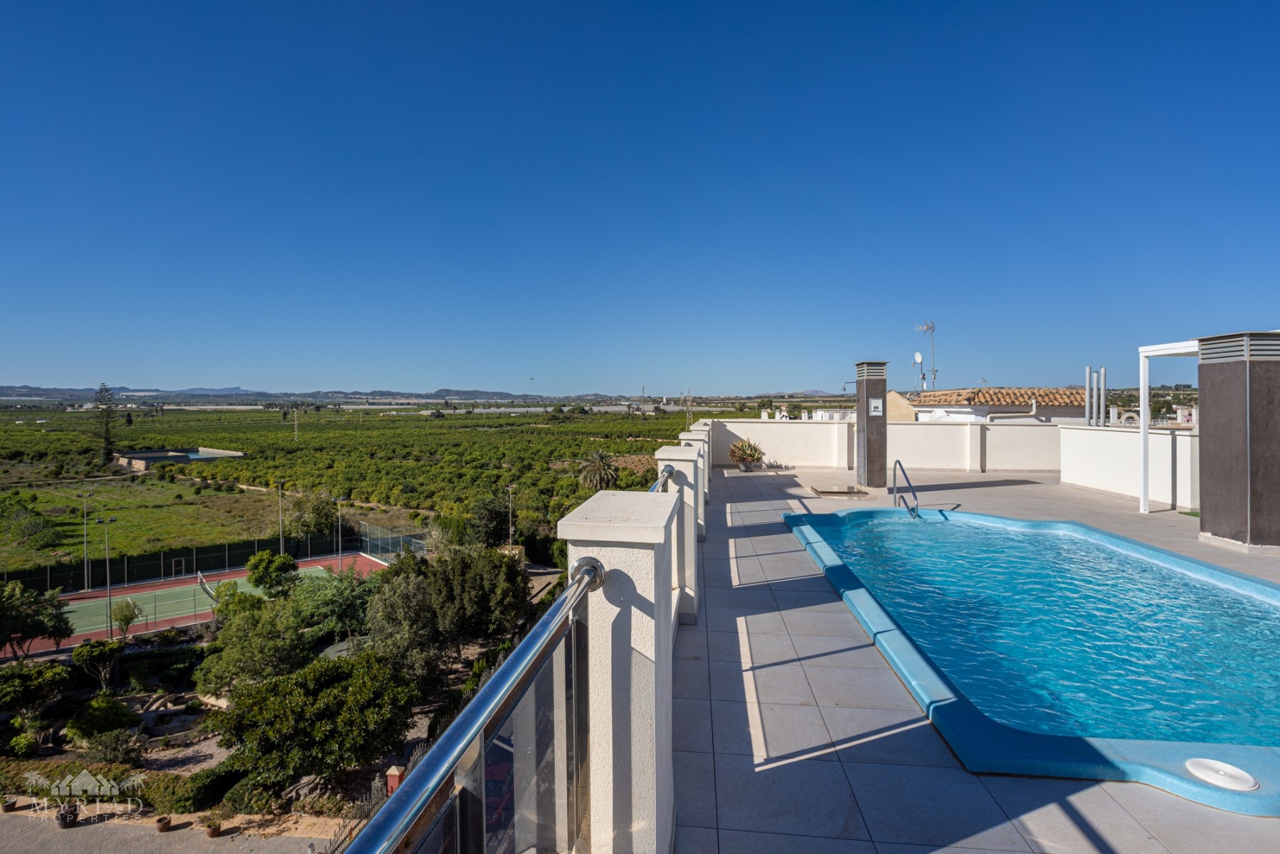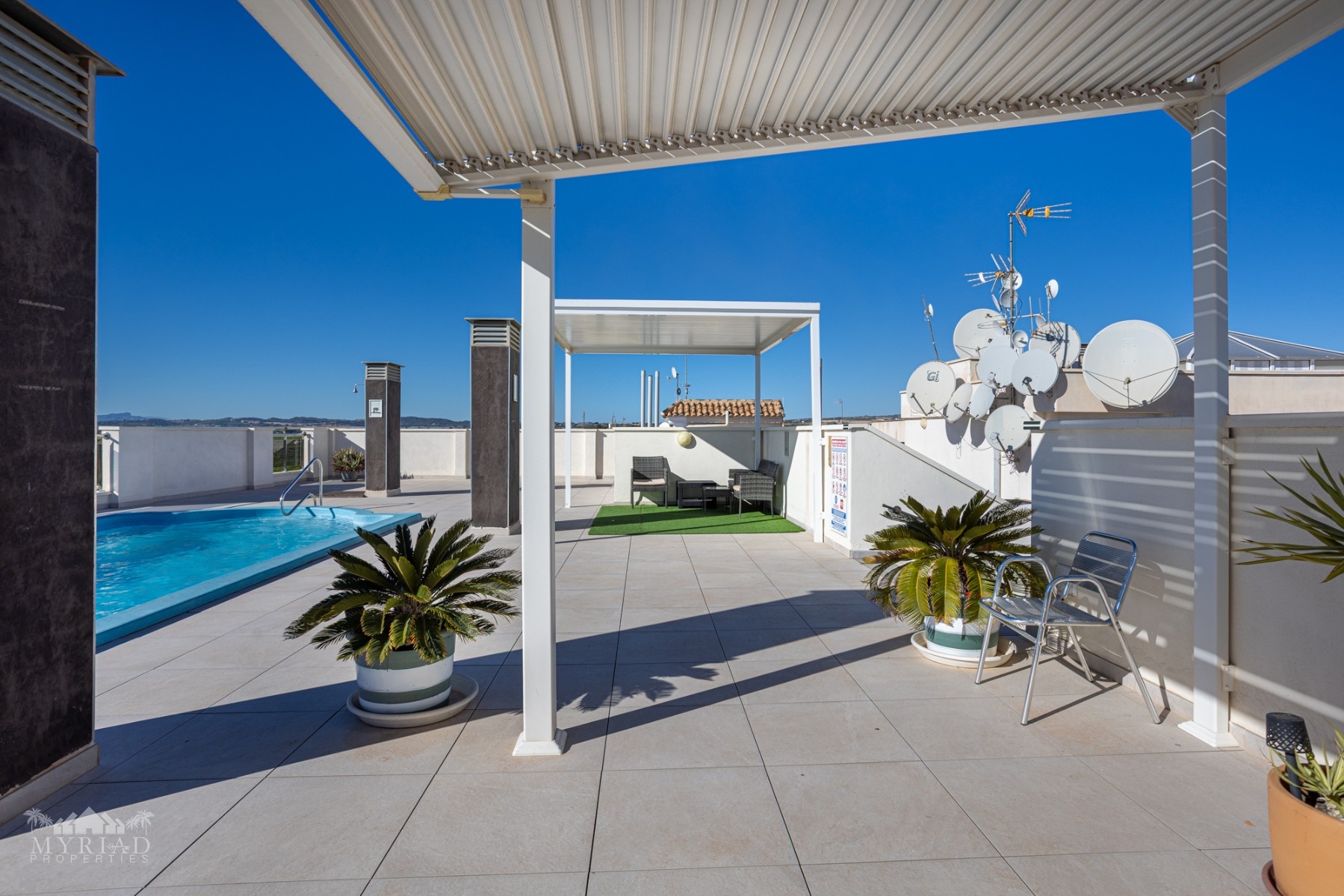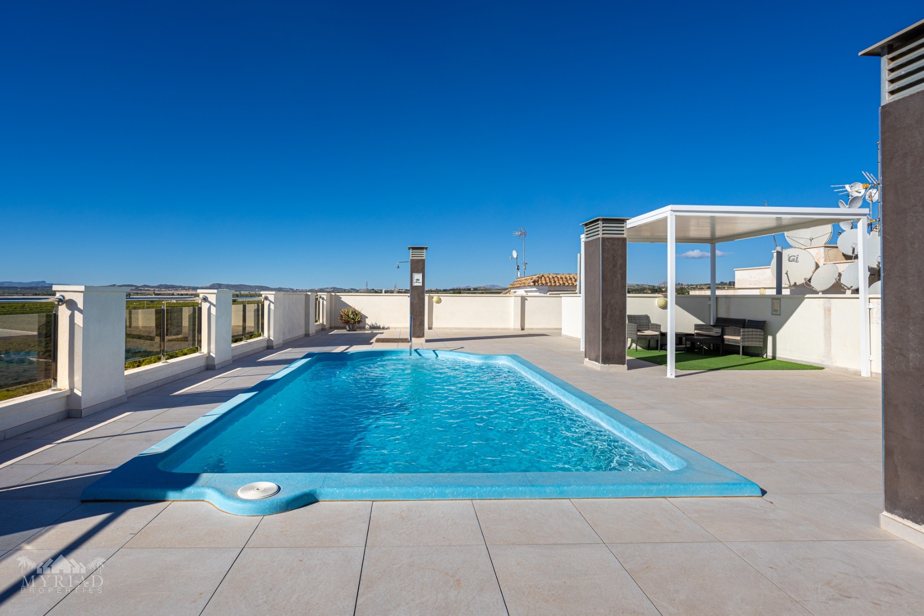 Also on the solarium is a seperate area with a communal swimming pool where you can cool off on warmer days, two new aluminium shade areas, and breathtaking views of the surrounding countryside.