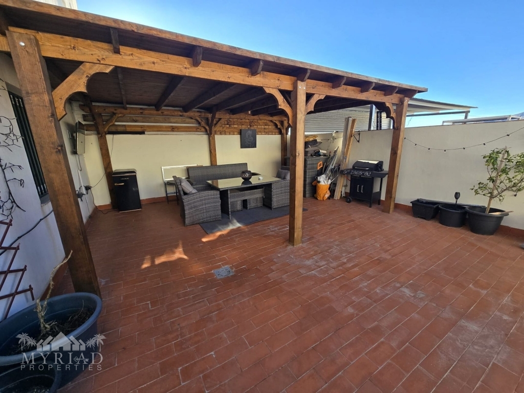 The apartment offers three bedrooms and two bathrooms, one of which is an en-suite to the master bedroom. The kitchen includes a small outdoor space, perfect for enjoying breakfast or a peaceful cup of tea. The living room opens onto a balcony with wonderful mountain views. Unusually, the property also benefits from a large private outdoor terrace fitted with a solid wooden roof—an investment of over €3,000—and equipped with electricity, making it a highly versatile space. In the basement, you will find a private parking space and a storage room, ideal for keeping bicycles, seasonal items, or other belongings.