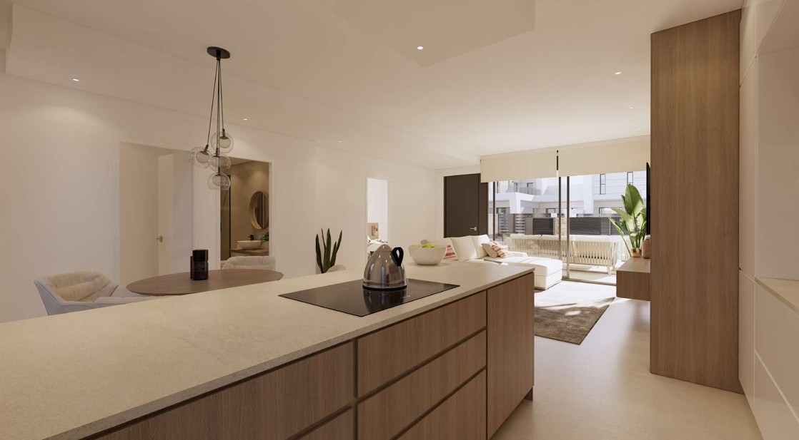 This new construction project in Dolores offers you a fully equipped kitchen with all appliances and a breakfast bar, an adjoining laundry room, two fully finished bathrooms, and two bedrooms with built-in wardrobes.