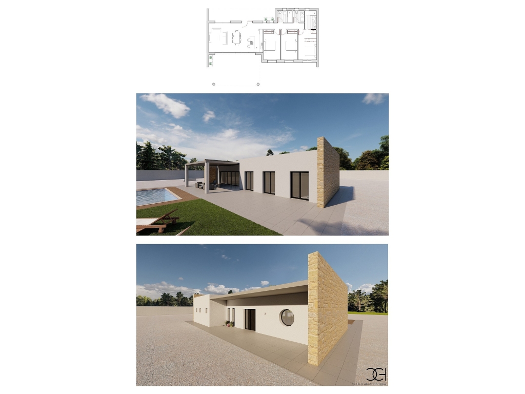 Price is including house plot and swimming pool 4 plots left . We are pleased to present this stunning modern 3-bedroom Villa in Pinoso. with plot and pool included no extra to pay ready in 7-8 months