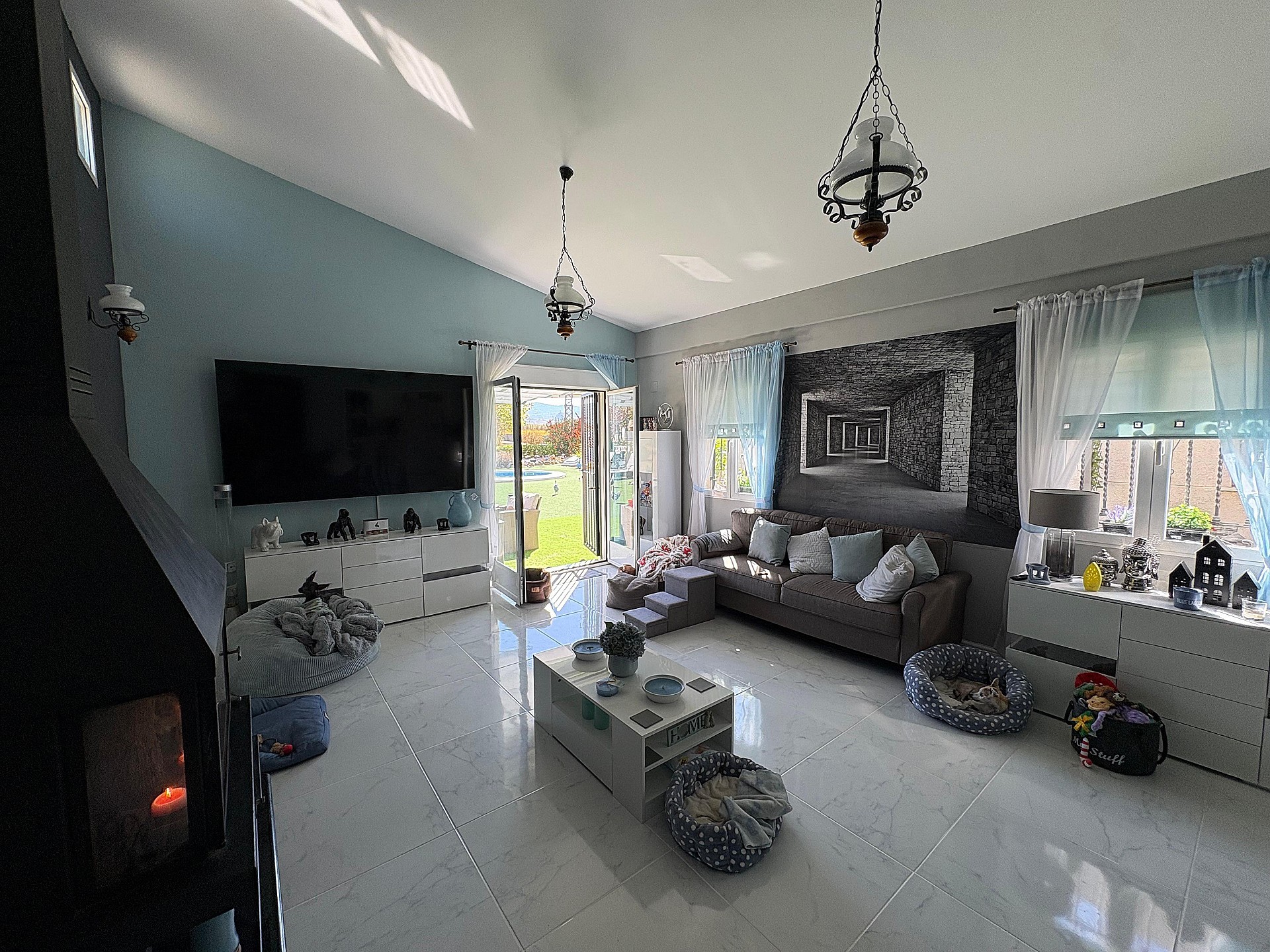 The open-plan living area combines the lounge, dining space, and kitchen, creating a perfect layout for both relaxing and entertaining. A lovely fireplace takes centre stage in the living room, adding warmth and atmosphere on cooler evenings. The kitchen comes fully equipped, and all white goods are included in the sale. The property also comes fully furnished, making it a truly move-in ready home.