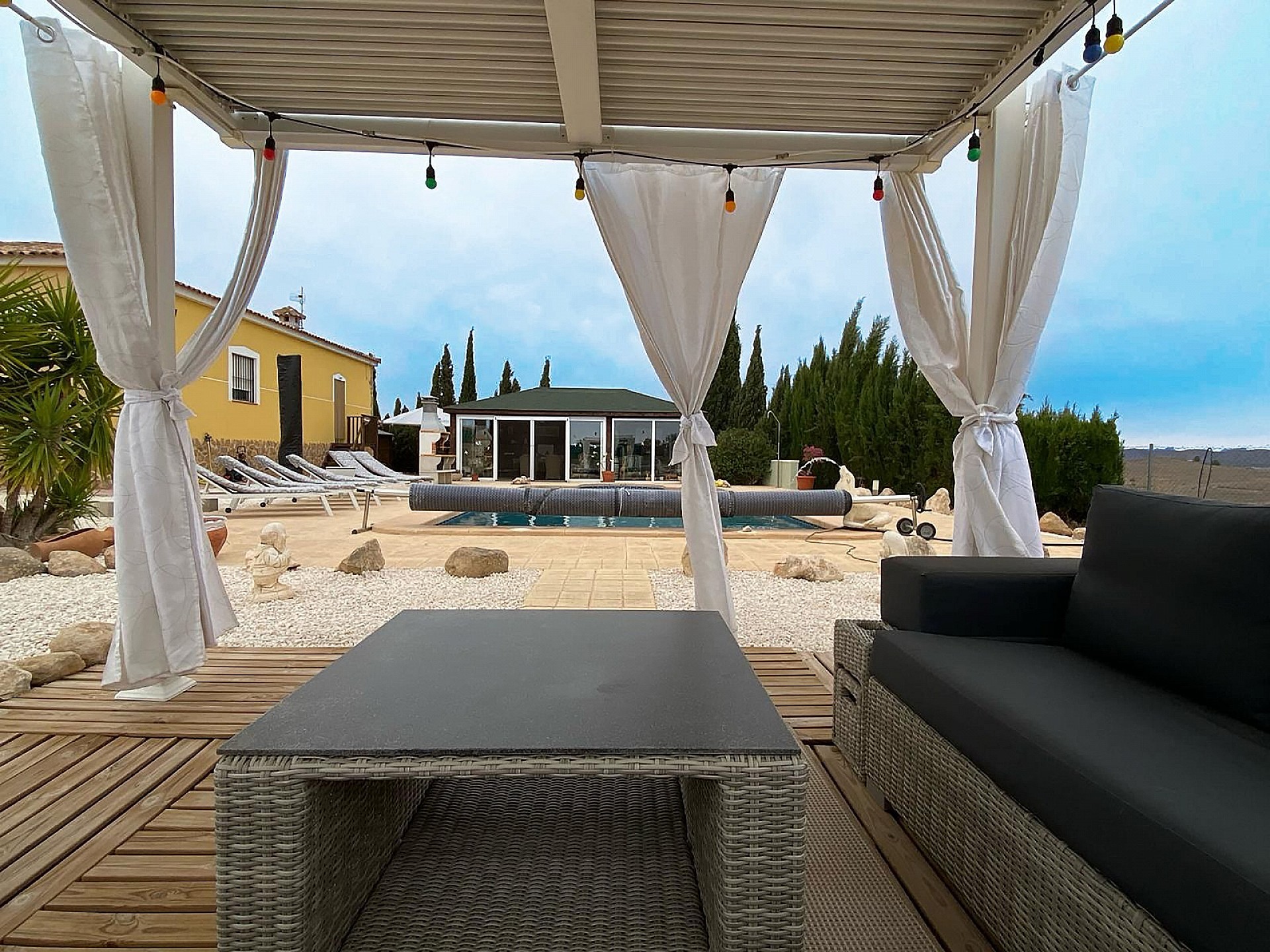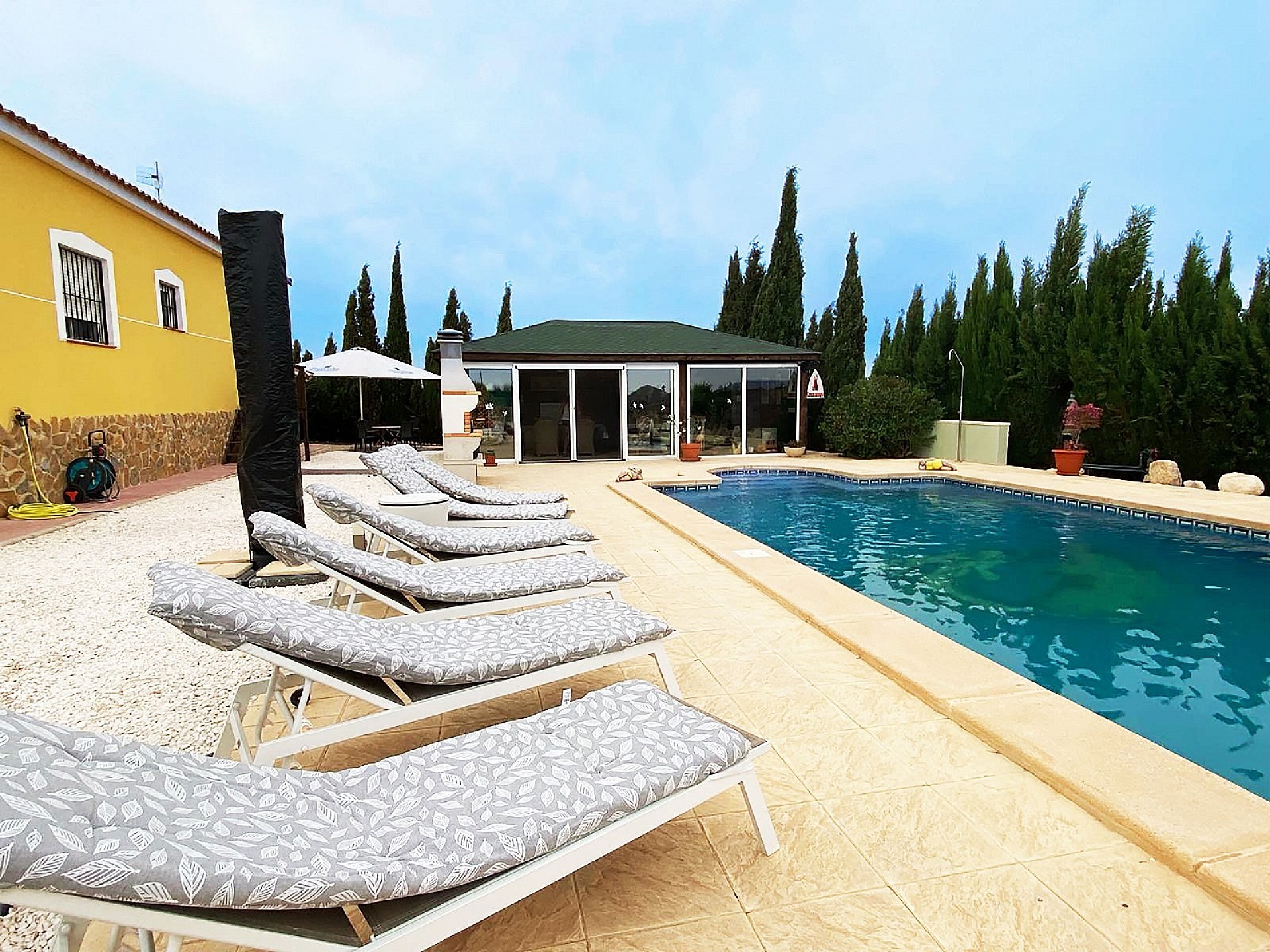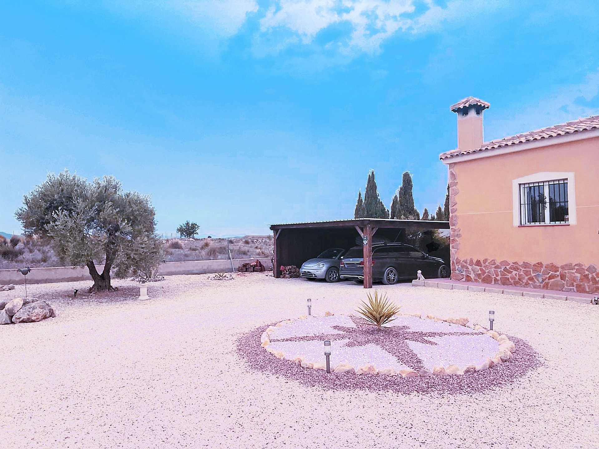 As you drive through the electric gates you are met by this lovely villa built in 2010. It sits on a large plot of 14000m2, the house itself is 166m2 including 3 bedrooms and 2 bathrooms.